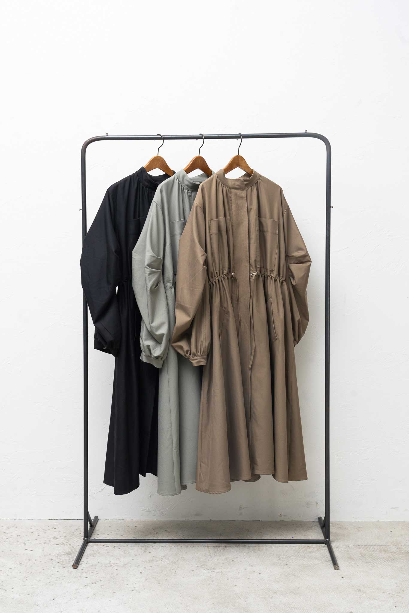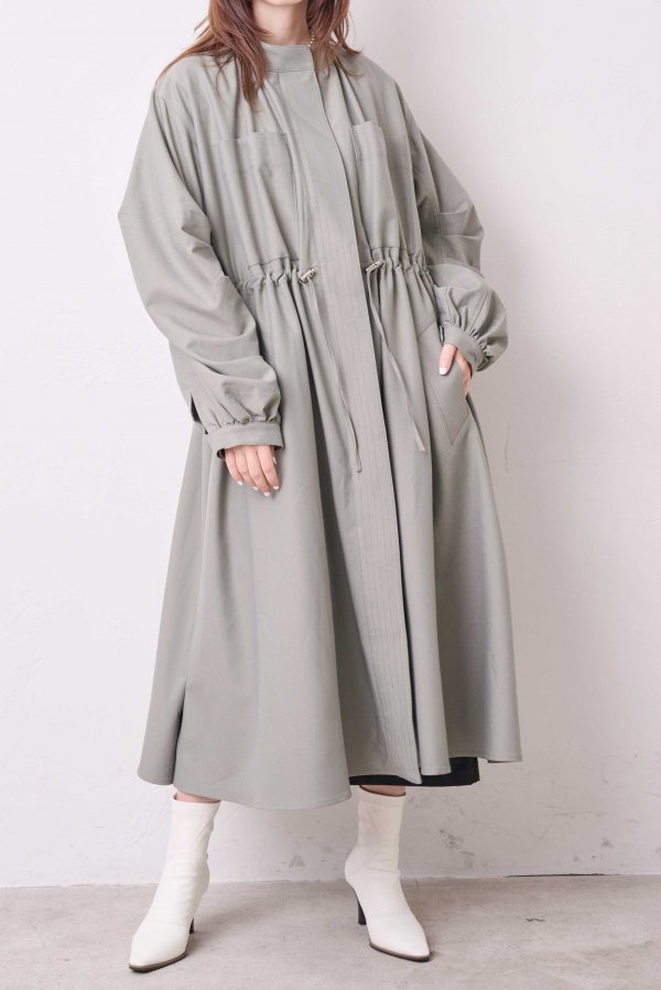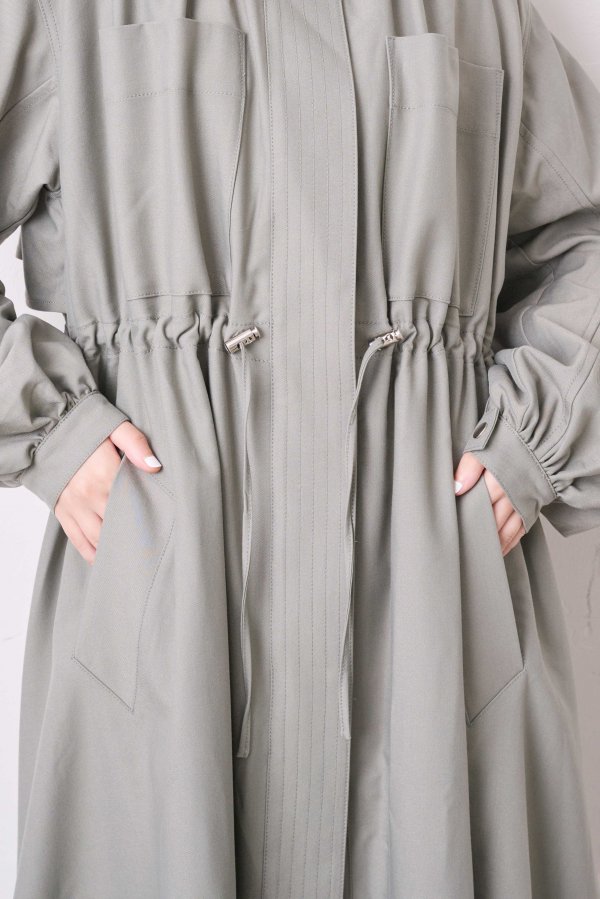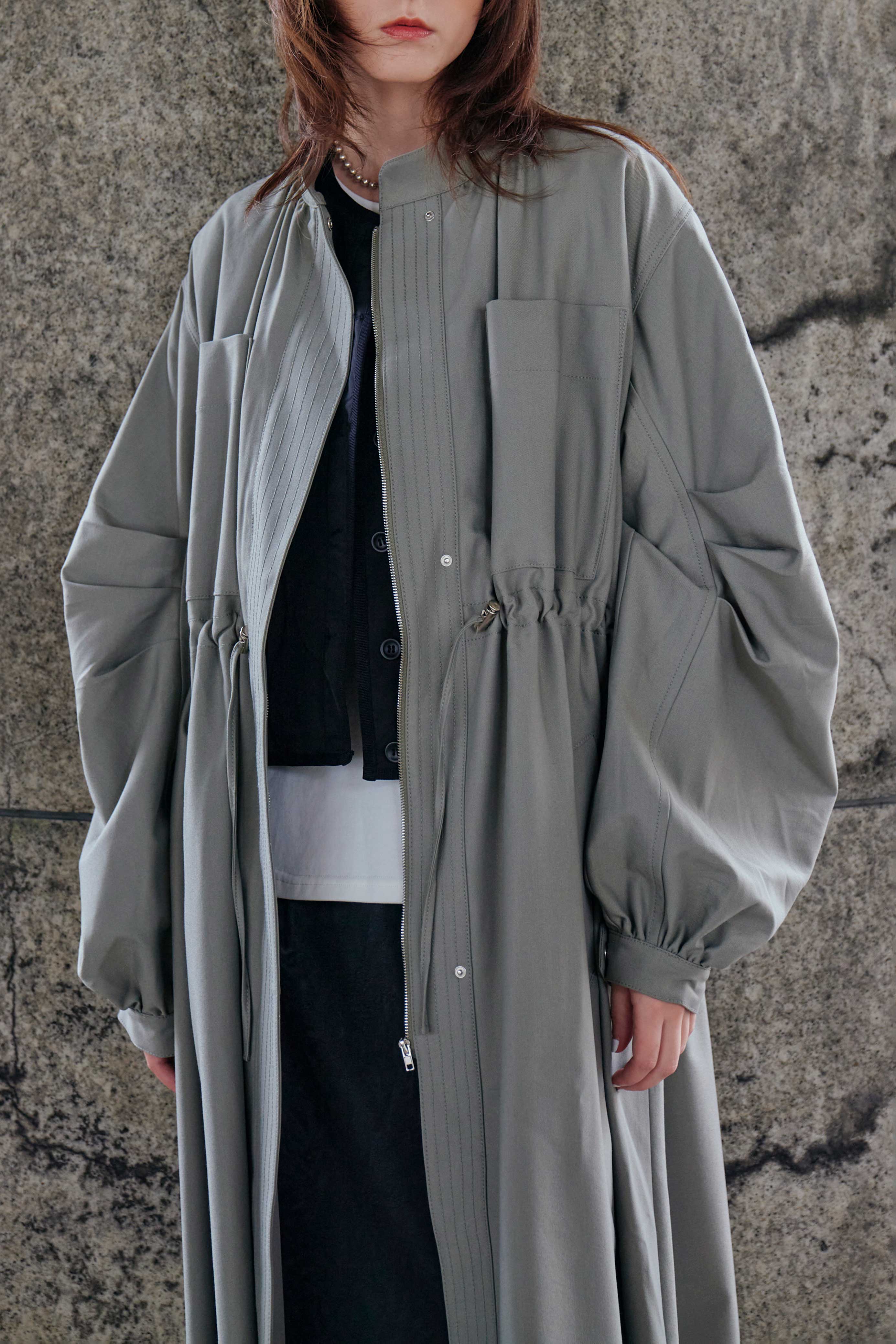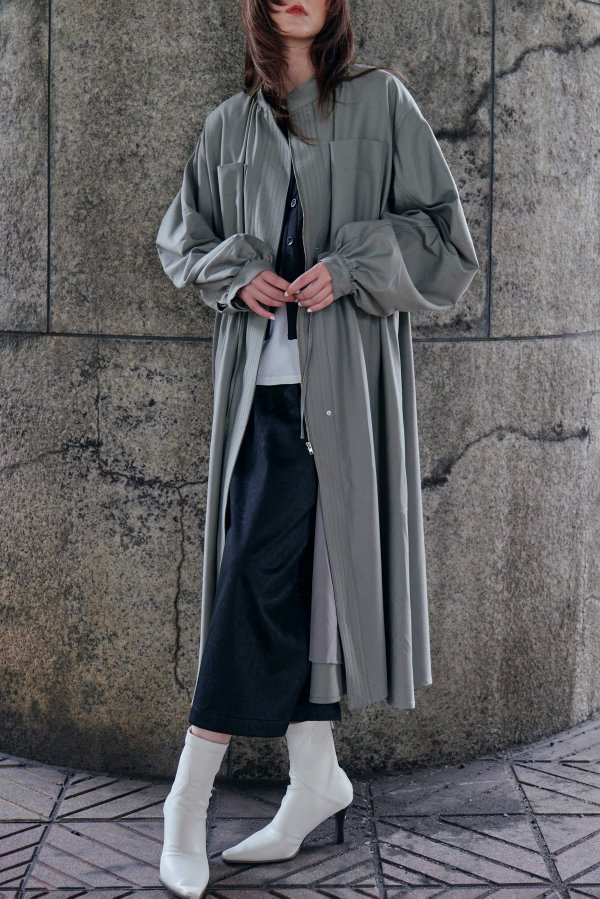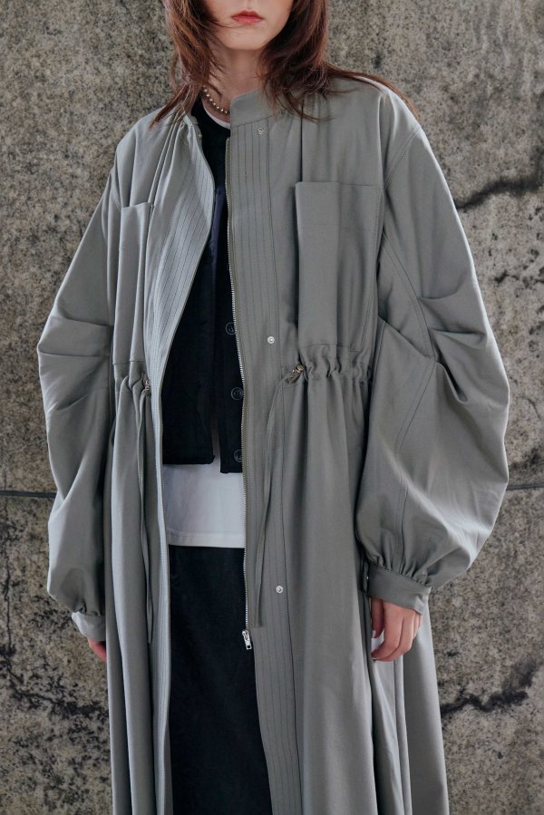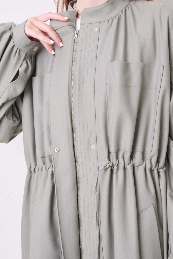 フルジップ仕様で前を全て閉めてウエストのドロスト部分をブラウジングすることでワンピースのような印象に。