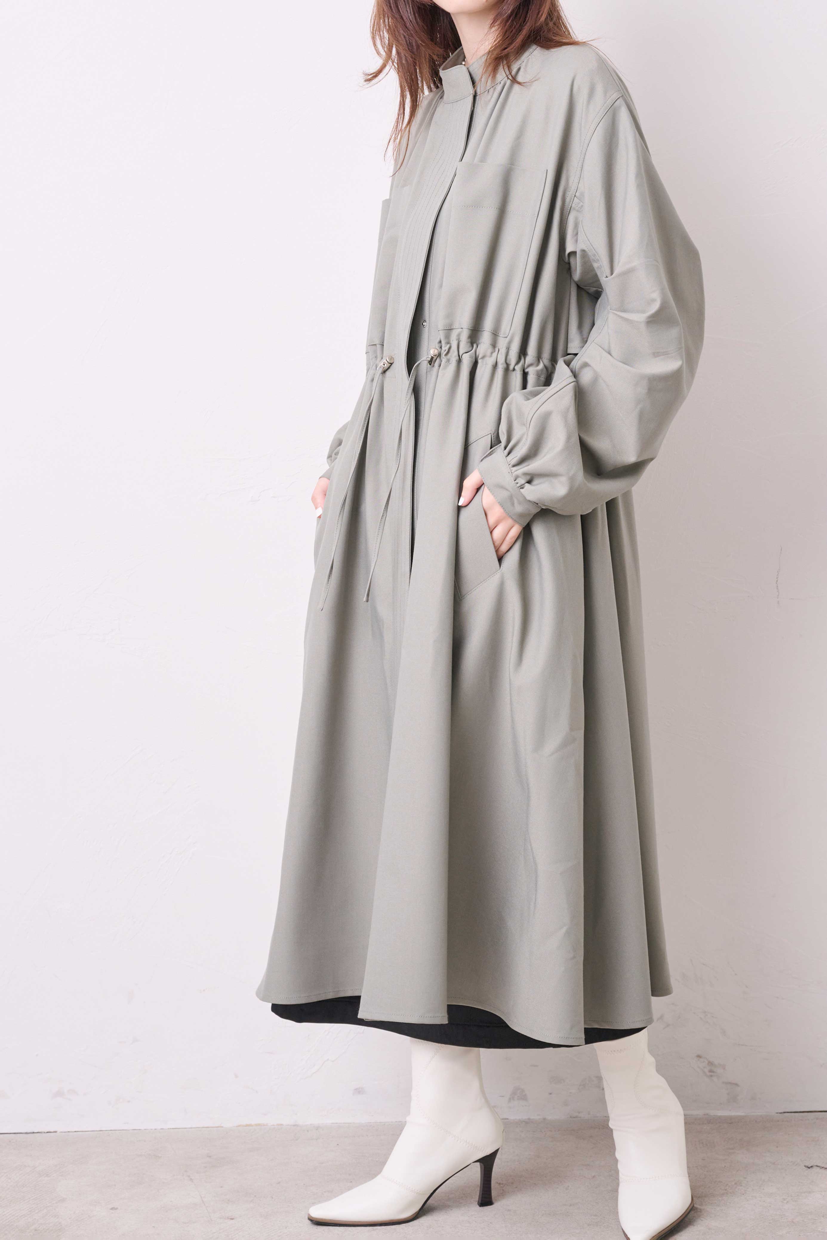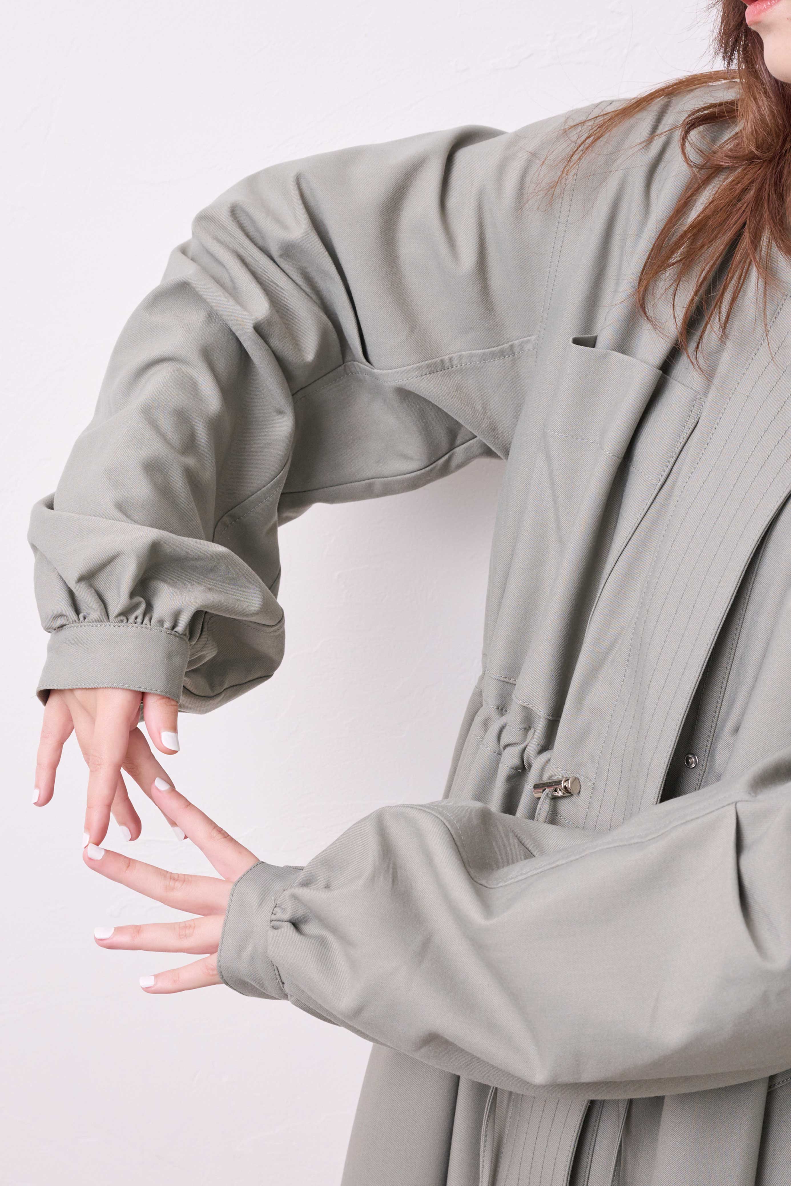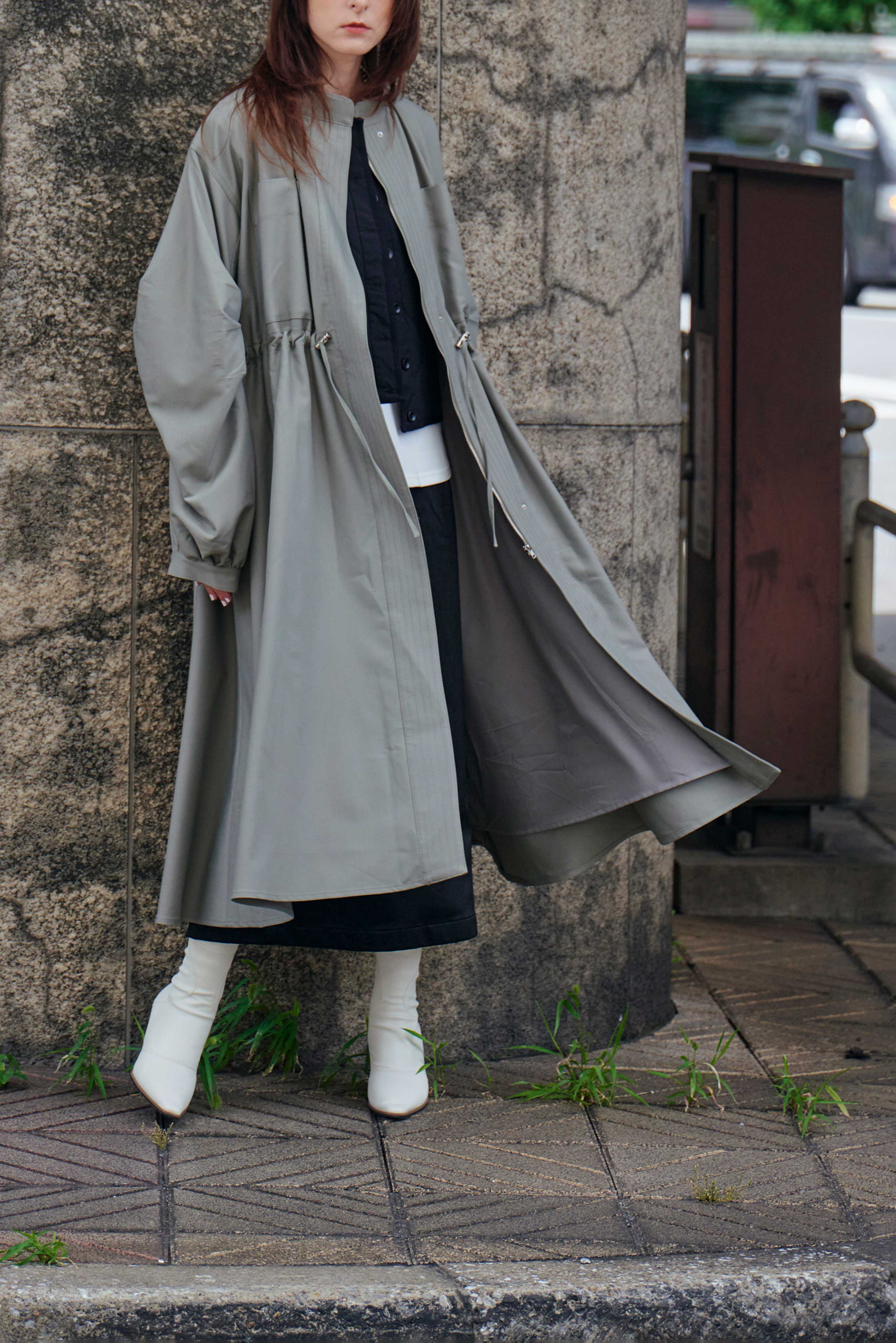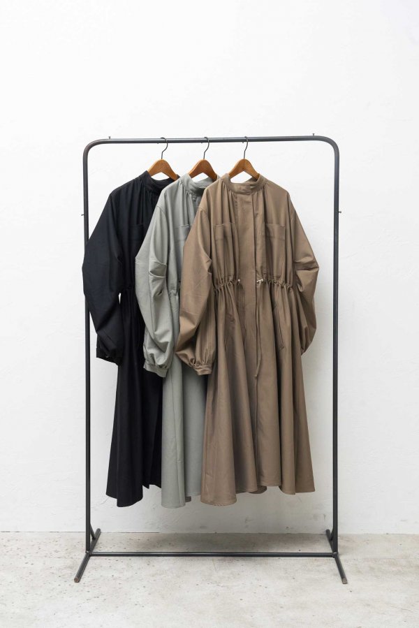 フルジップ仕様で前を全て閉めてウエストのドロスト部分をブラウジングすることでワンピースのような印象に。