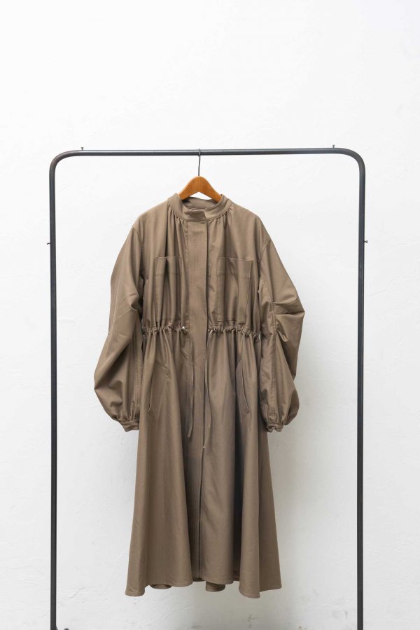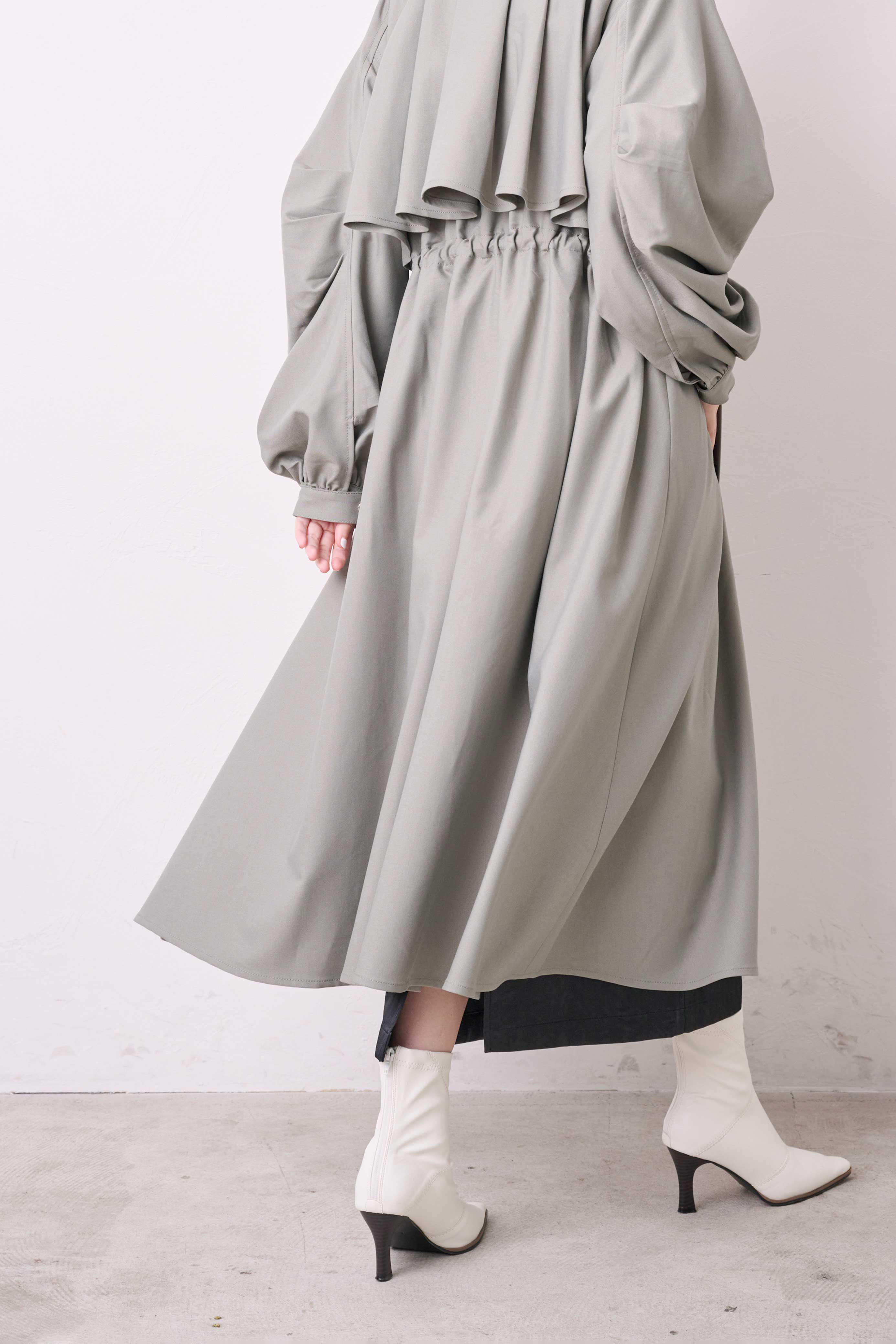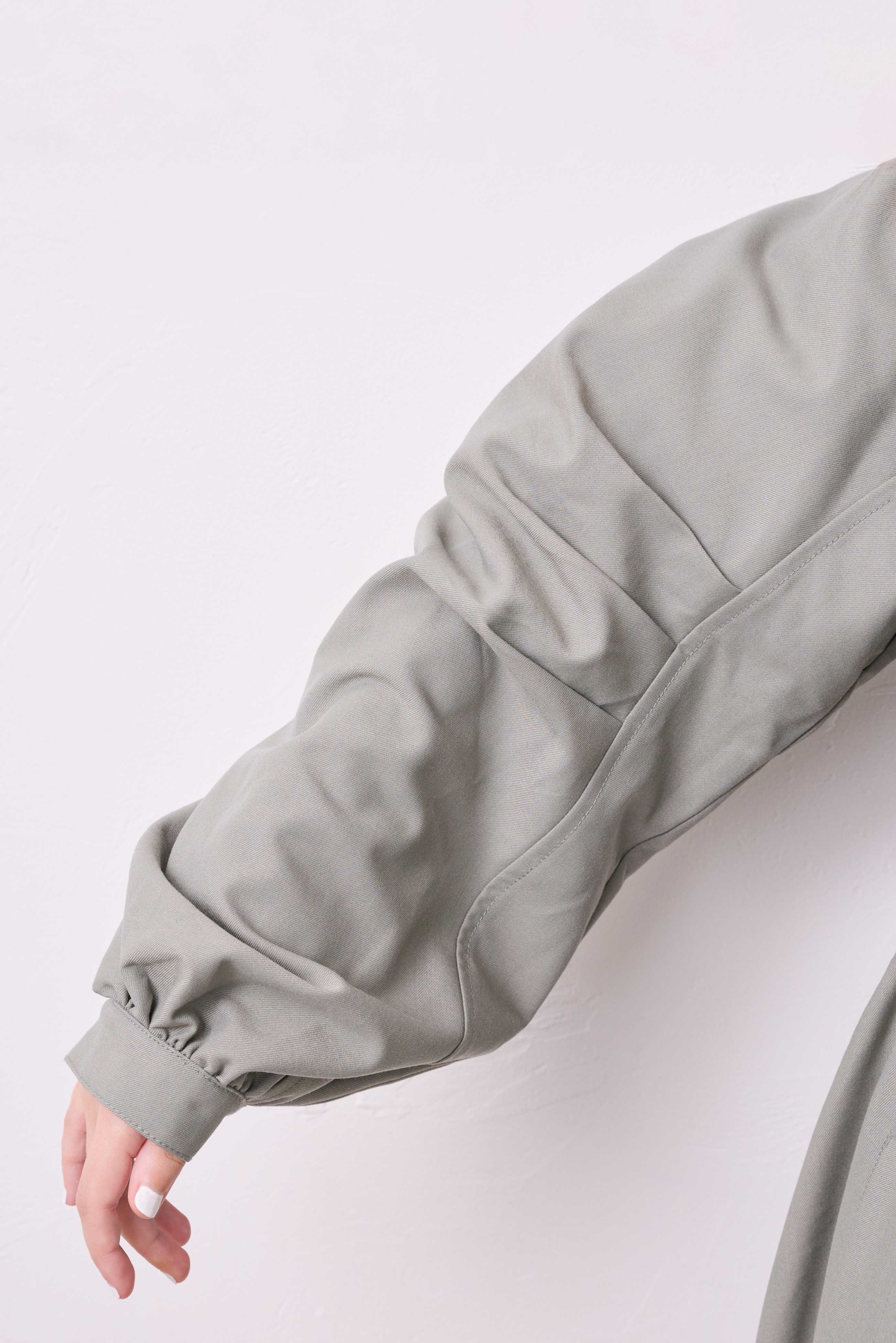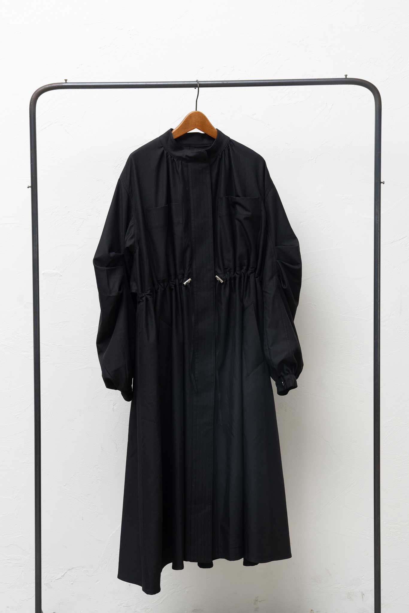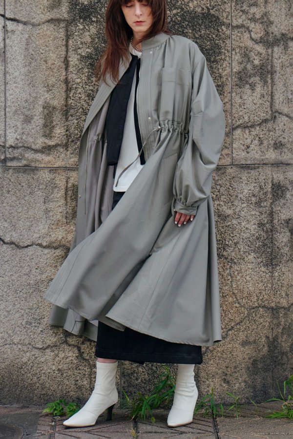 フルジップ仕様で前を全て閉めてウエストのドロスト部分をブラウジングすることでワンピースのような印象に。