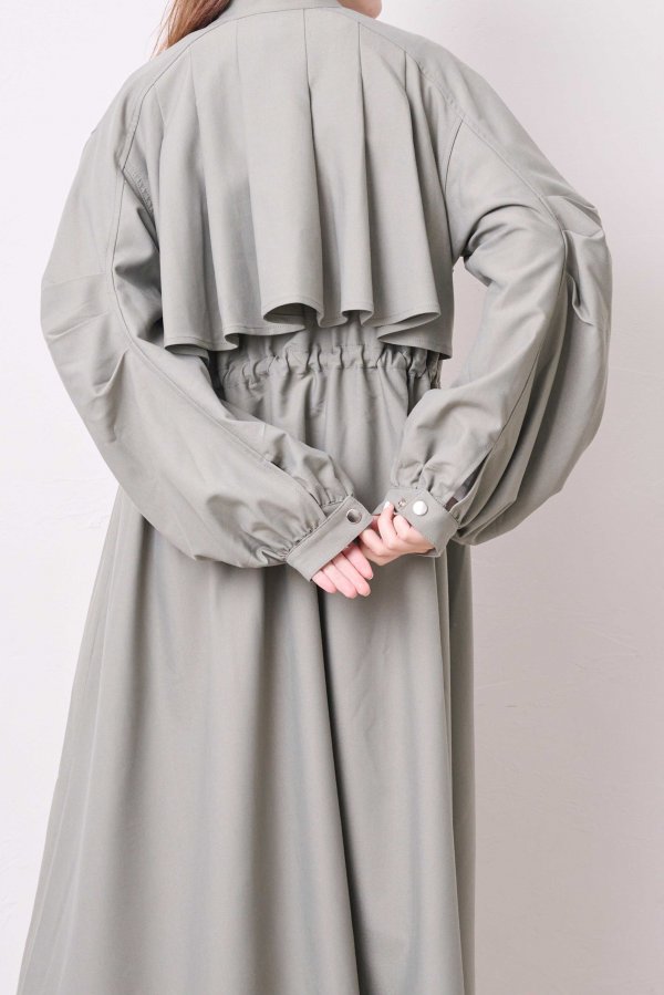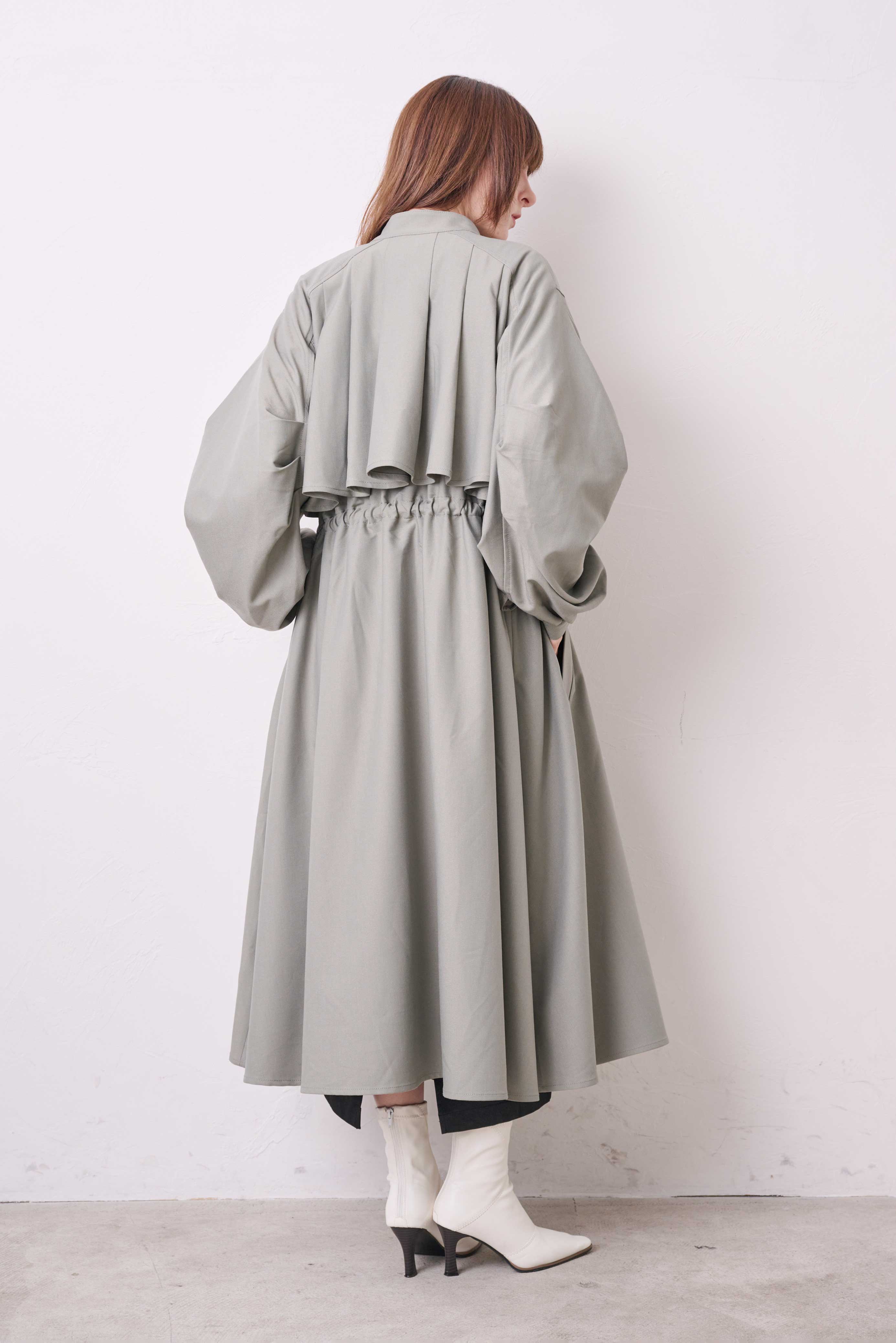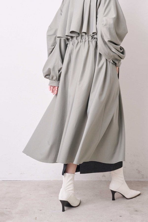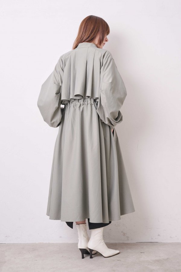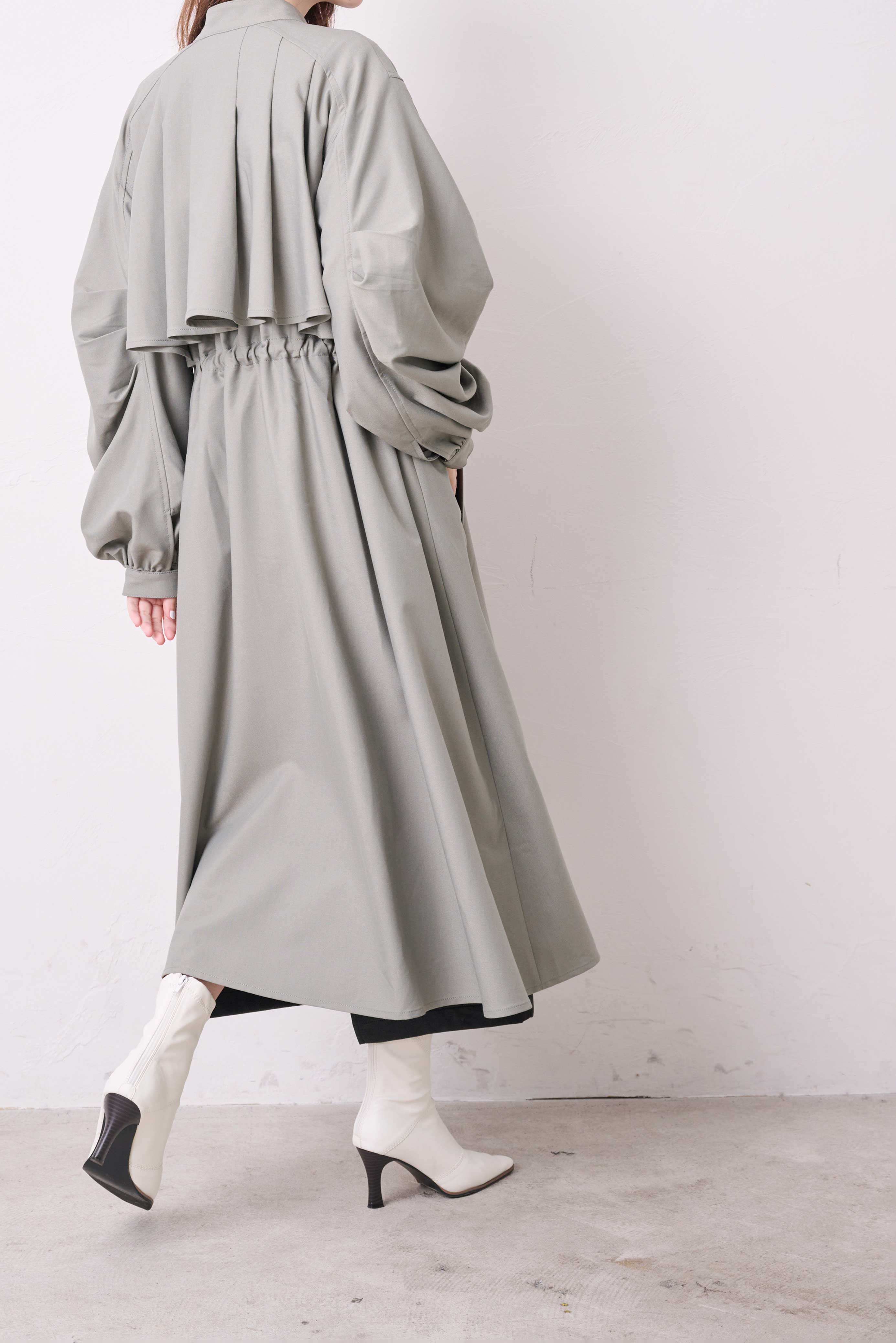 バックのストームシールドにはたっぷりとフレア感の出るプリーツを仕込んで後ろ姿も抜かりなく。