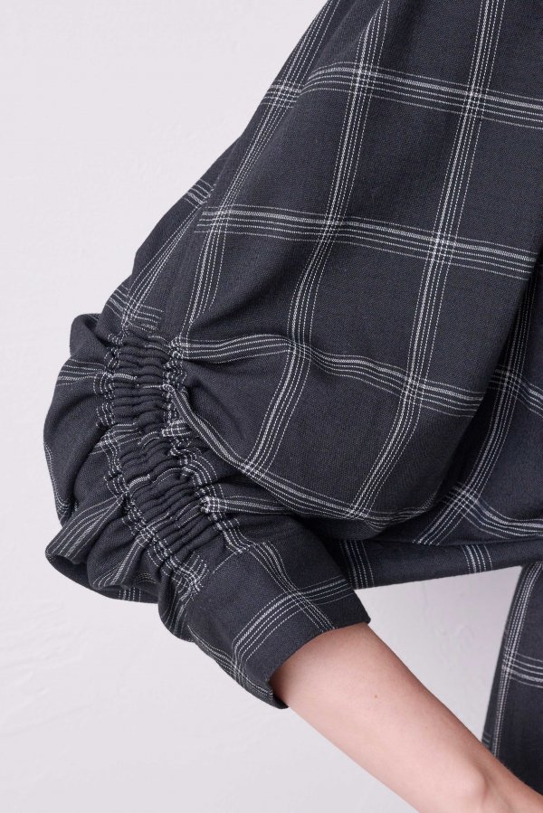 袖山にはぷっくりとギャザーのドレープがでるようにシャーリングをいれ、肩周りの細見え効果抜群な甘すぎないちょうどいいボリューム感のお袖を作りました。