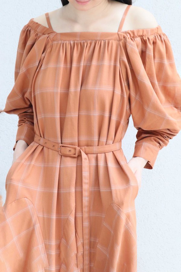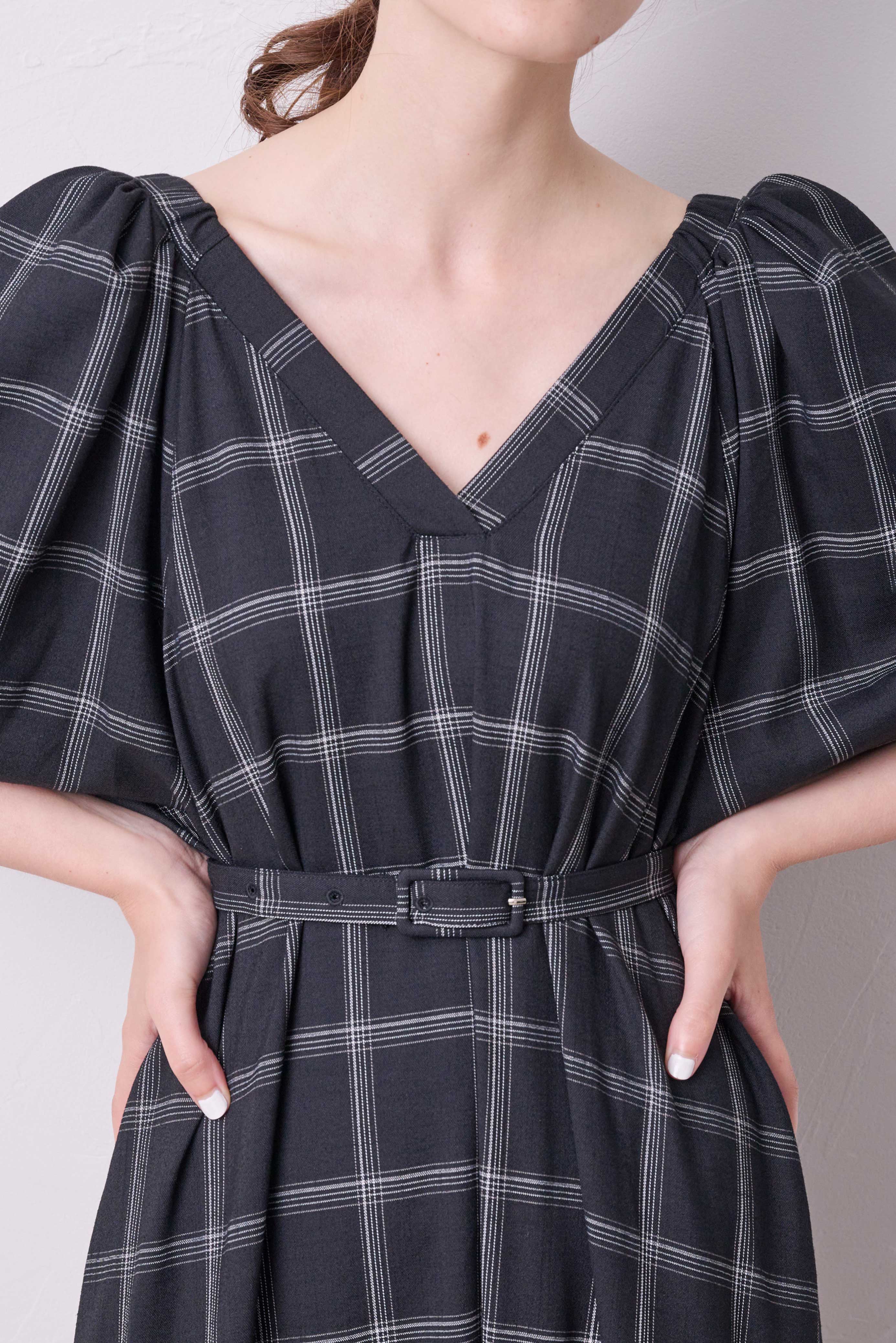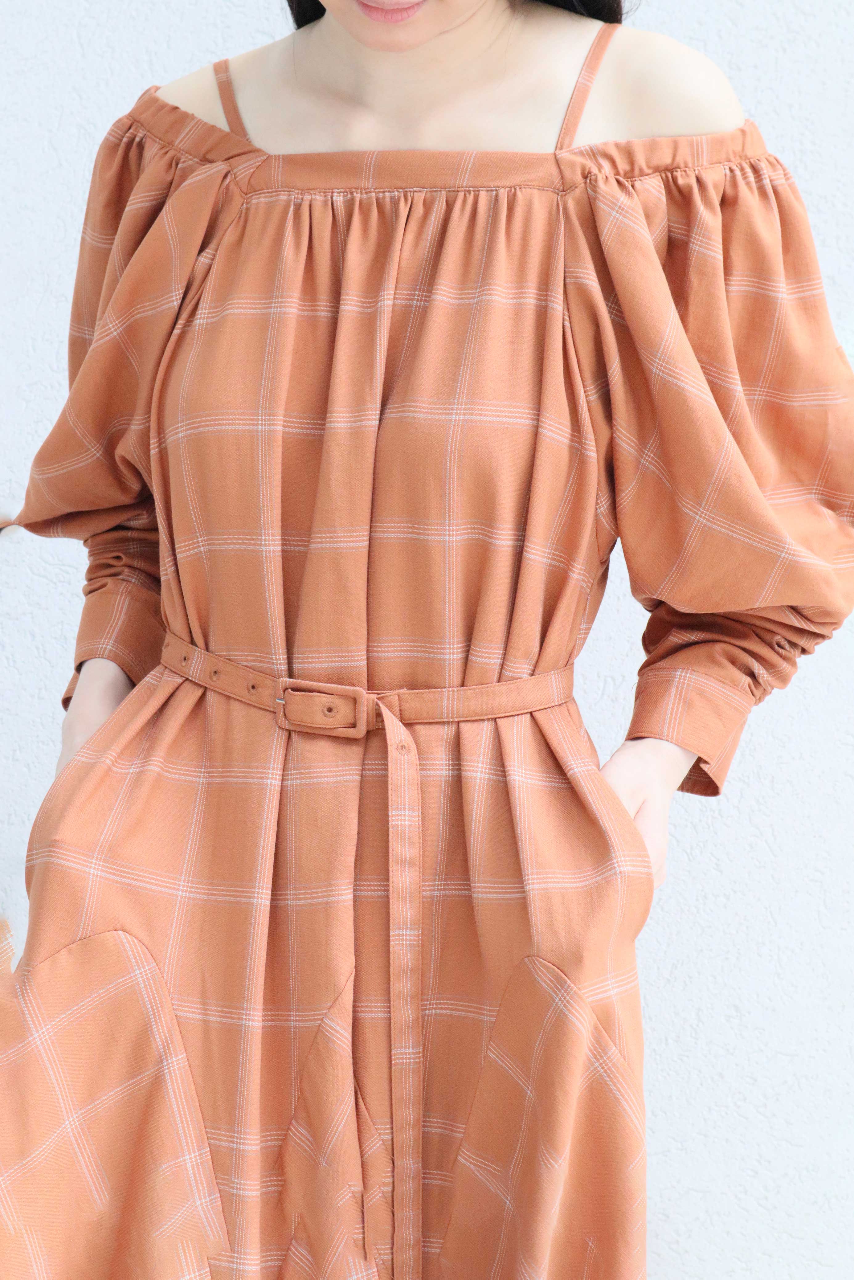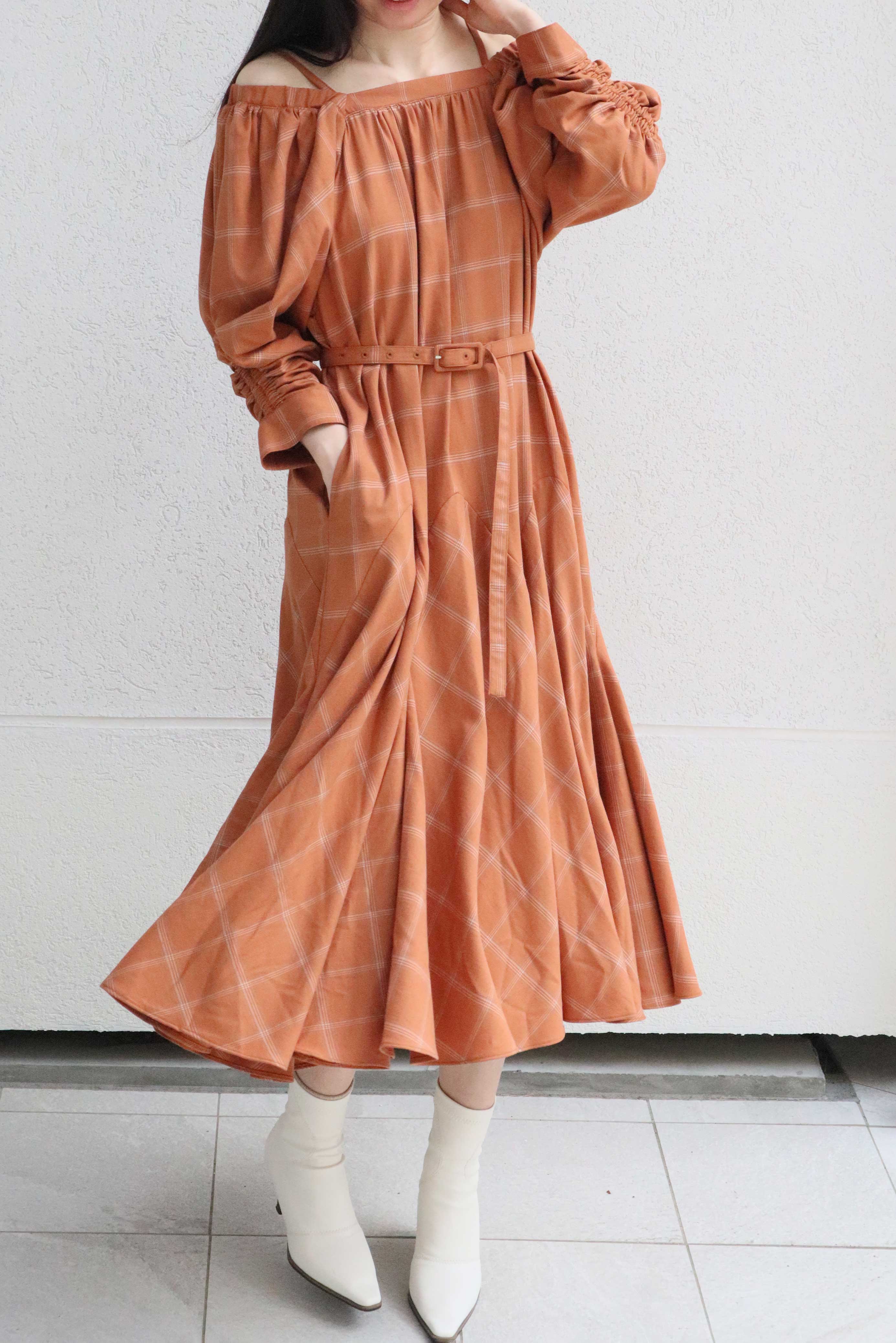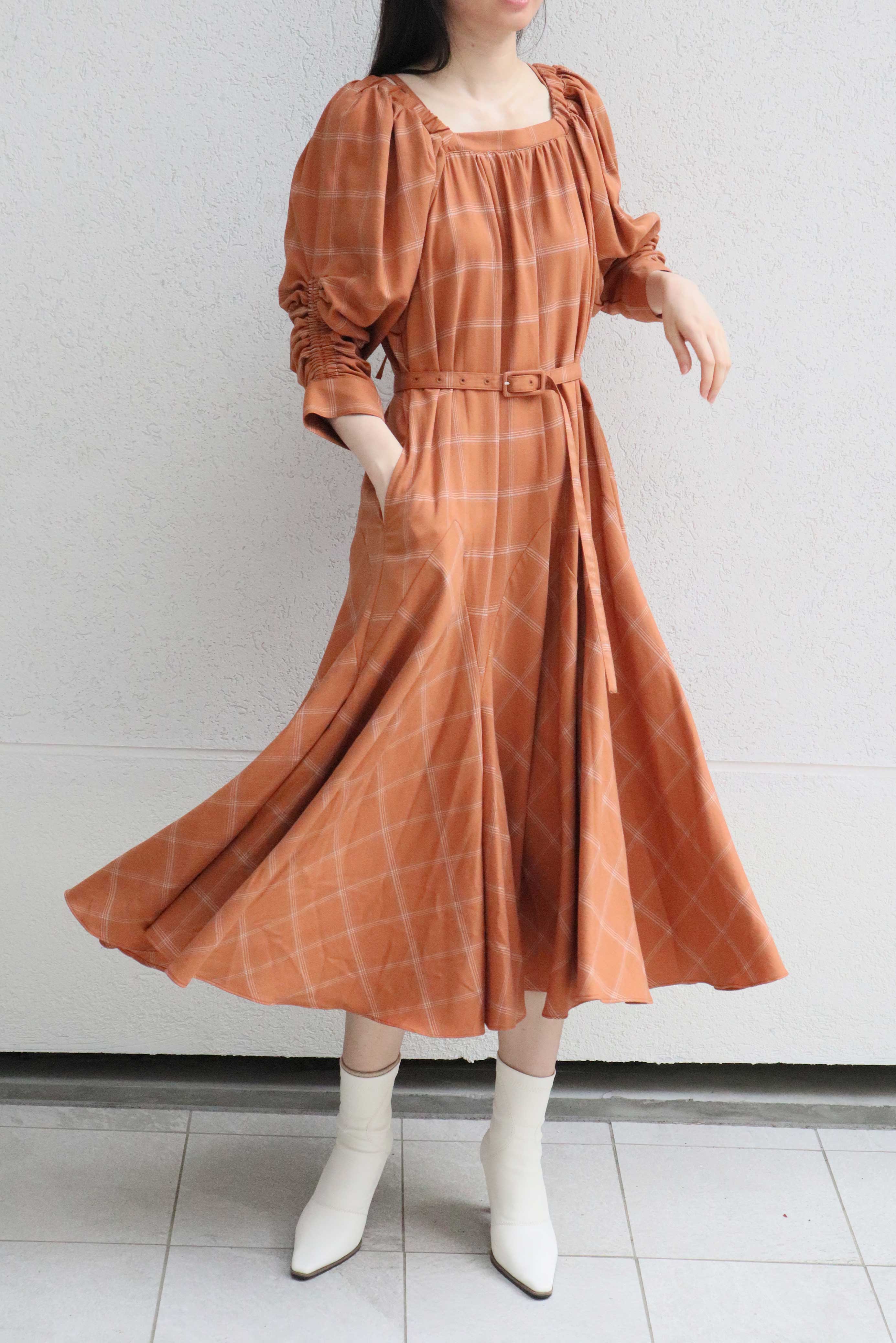 共布のベルトが付属しているのでお好みよってフィットアンドフレアのメリハリが強調するのもおすすめです。