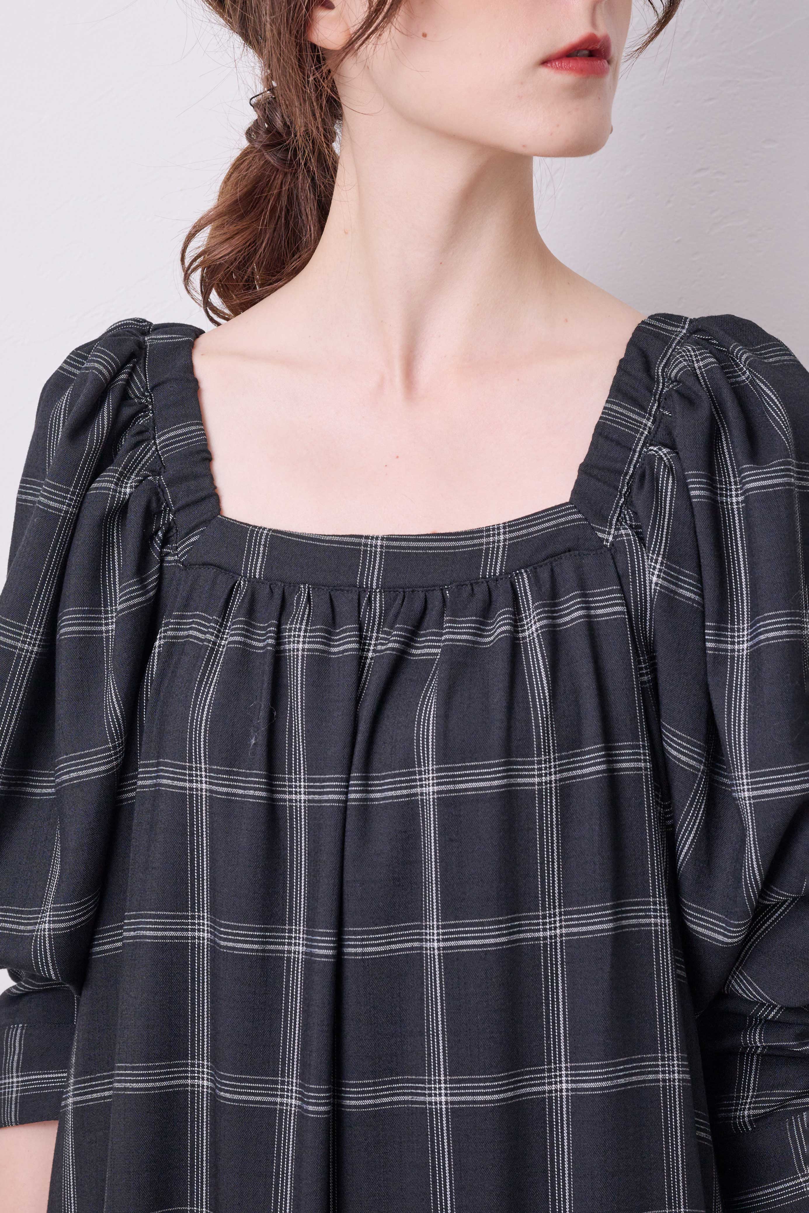 スクエアネック、Vネック、オフショルダーにそれぞれお好みで違った印象で着られるように作りました。