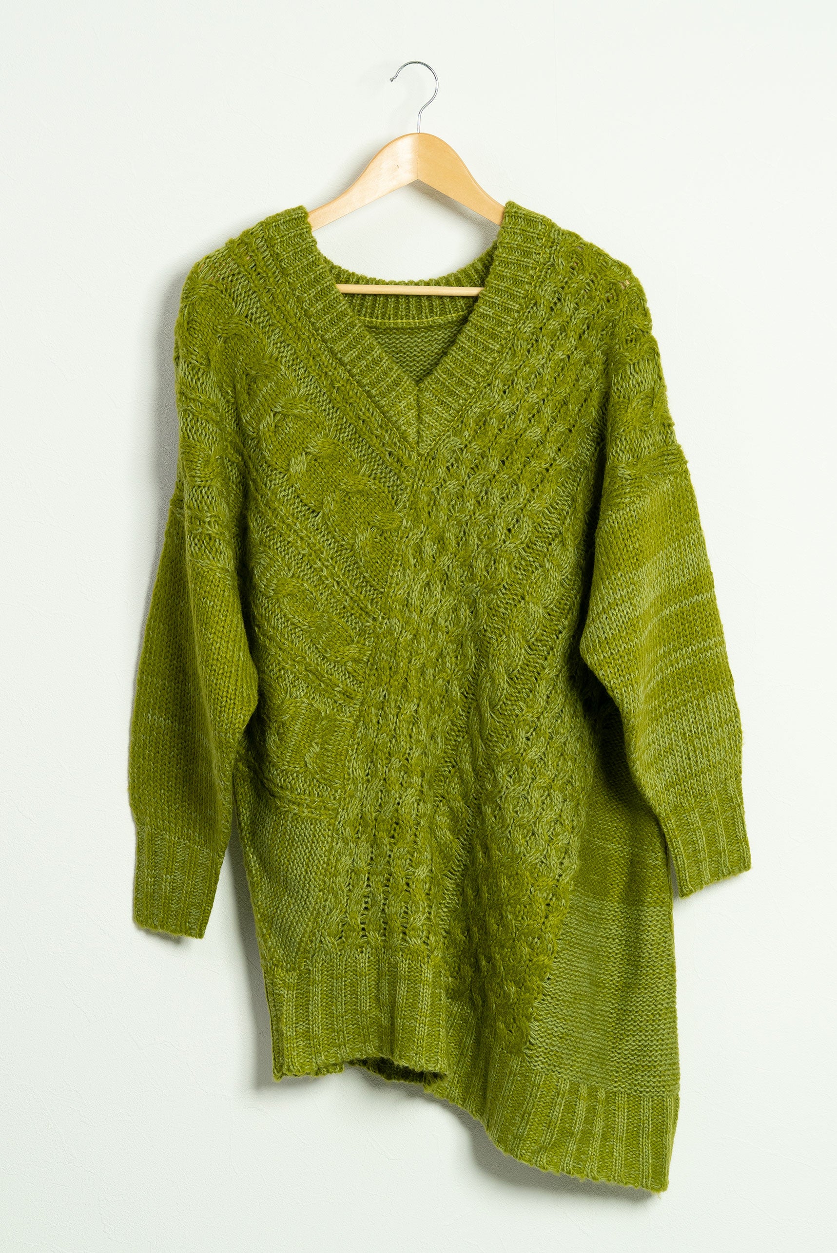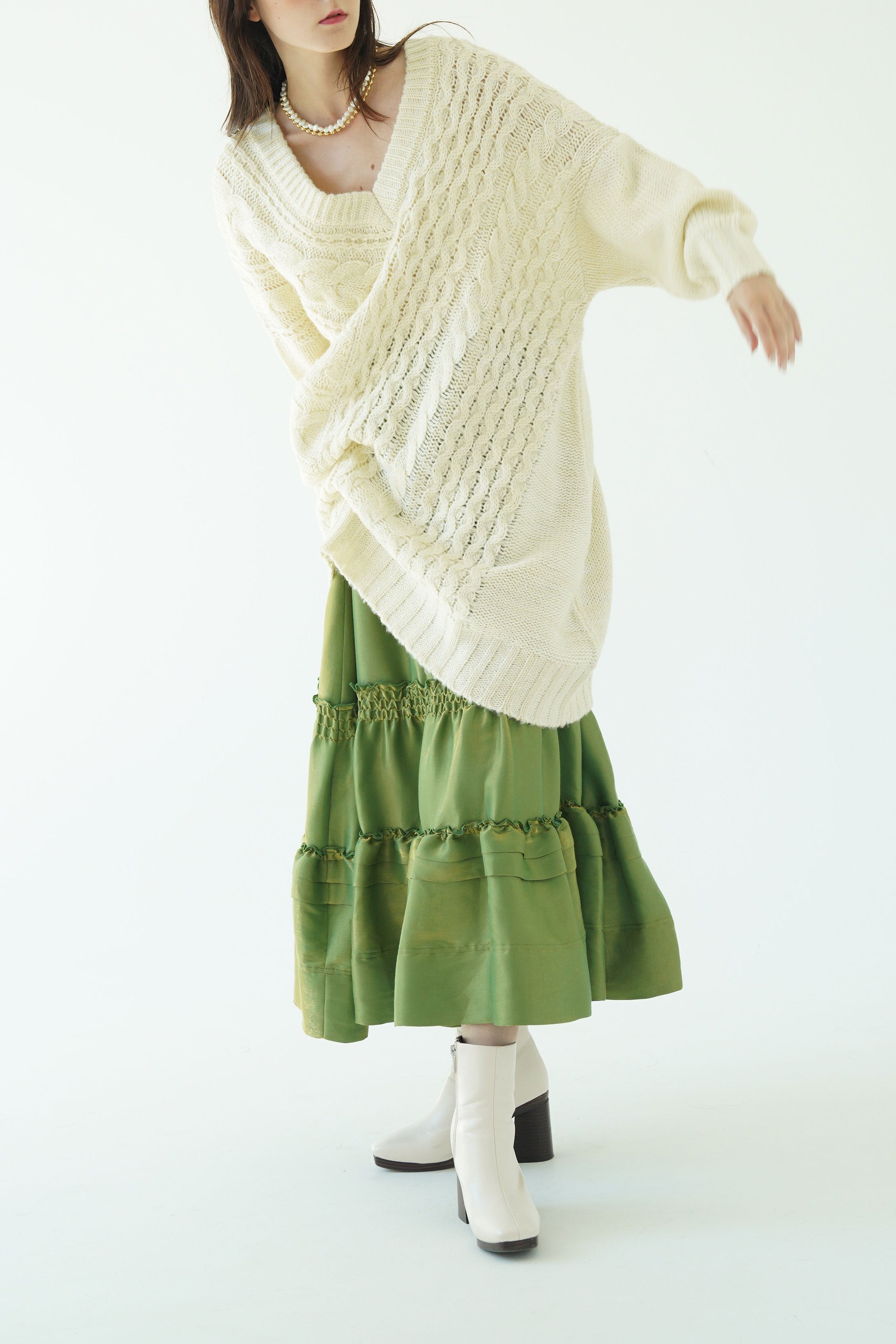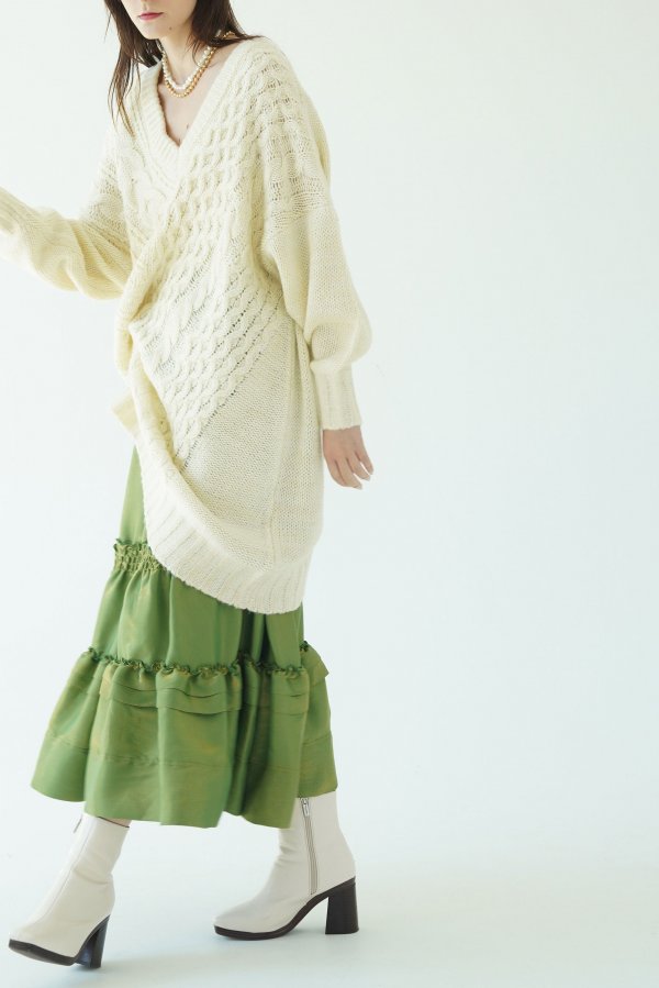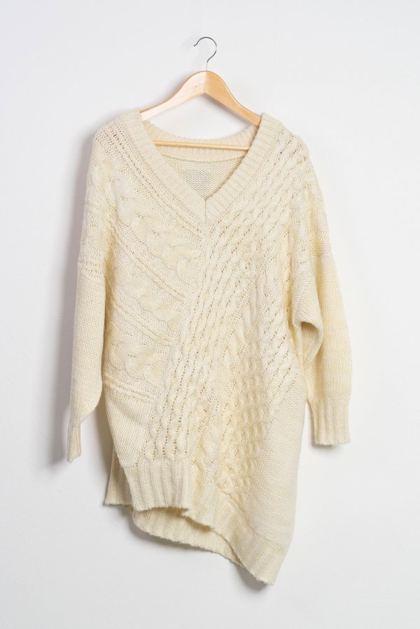 テクニックいらずでニュアンスシルエットが完成する小技ありのケーブルニットトップス。