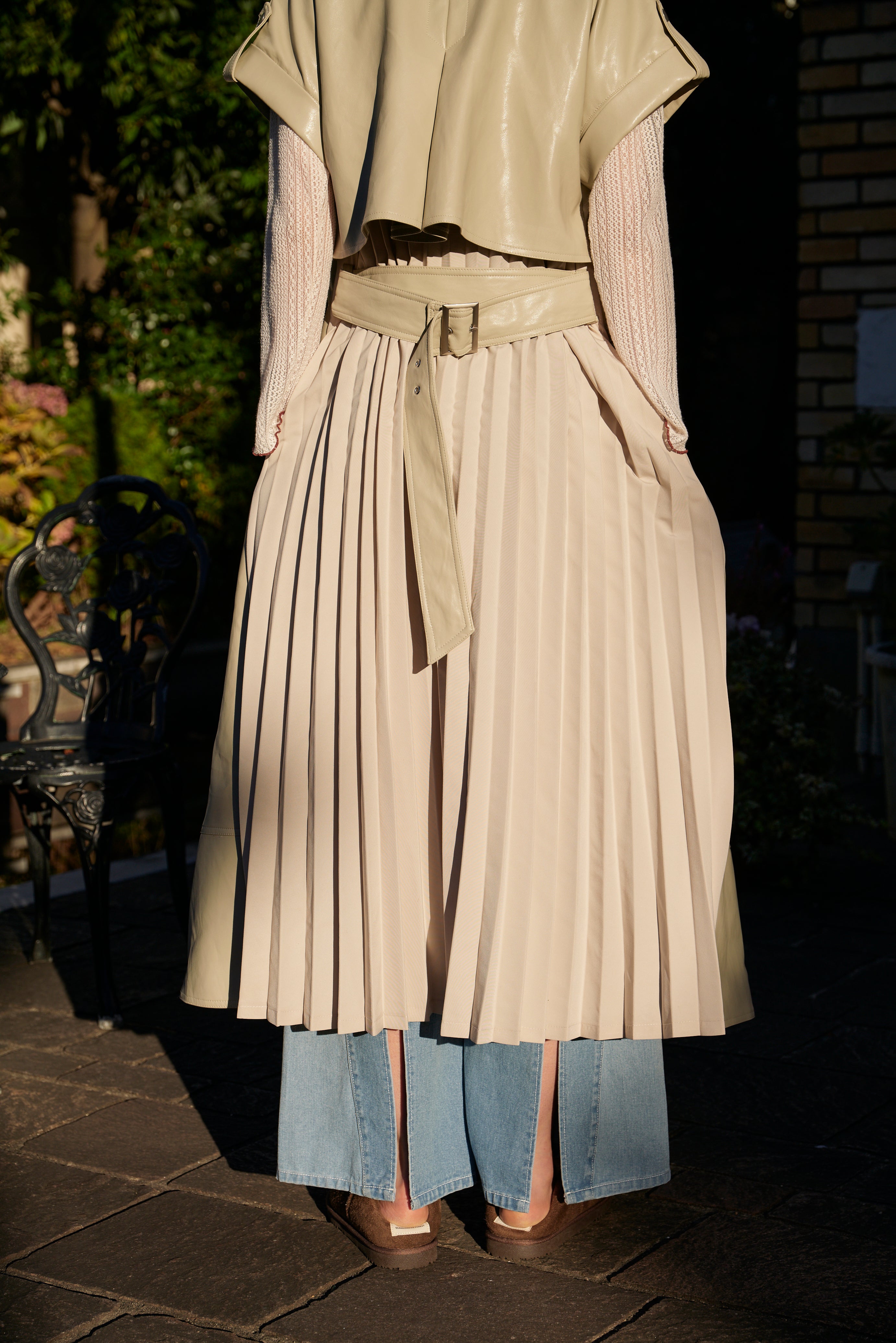 背面は異素材でプリーツ加工を施しているので、