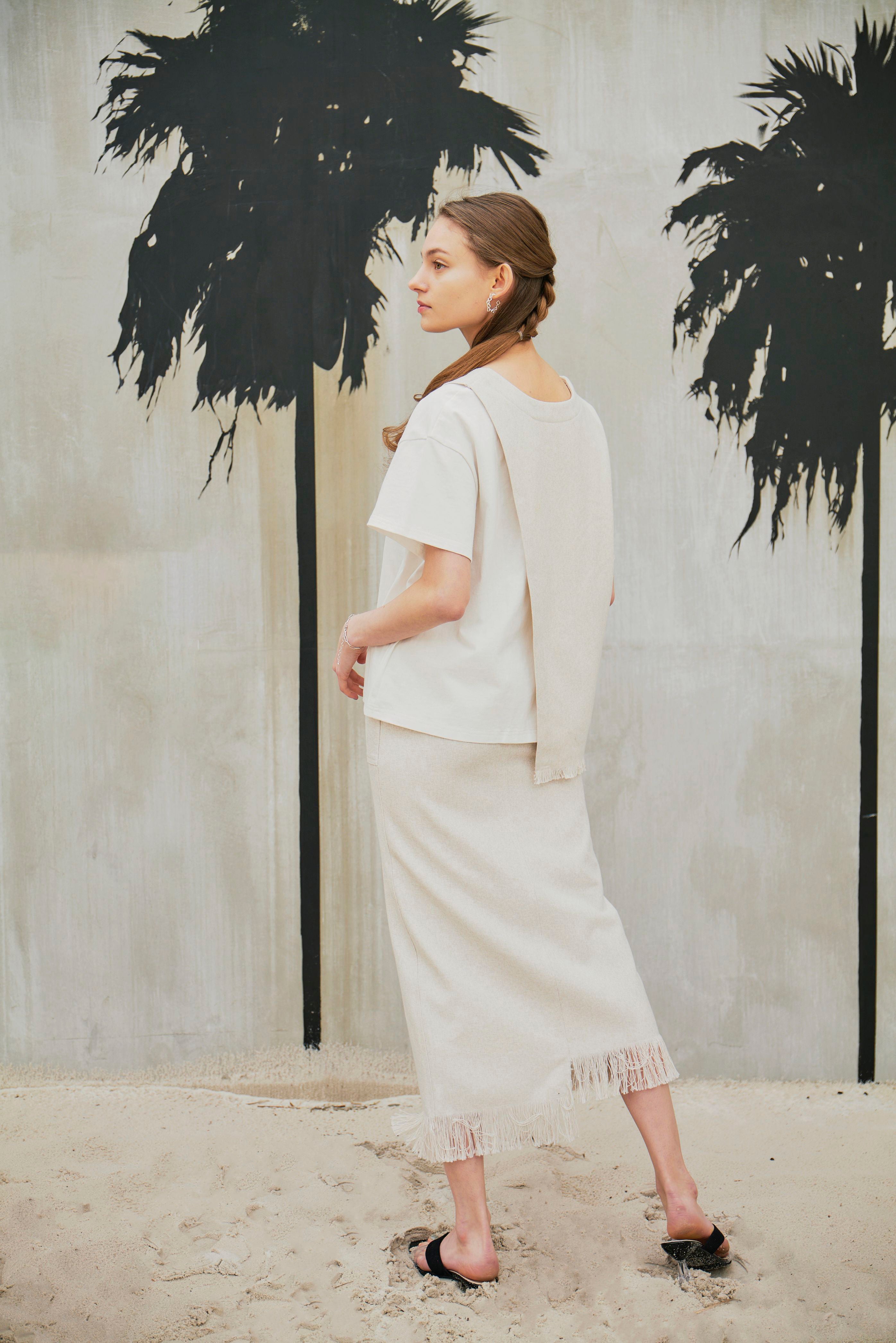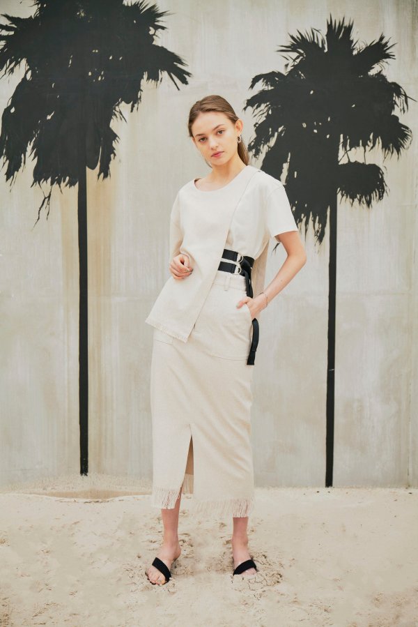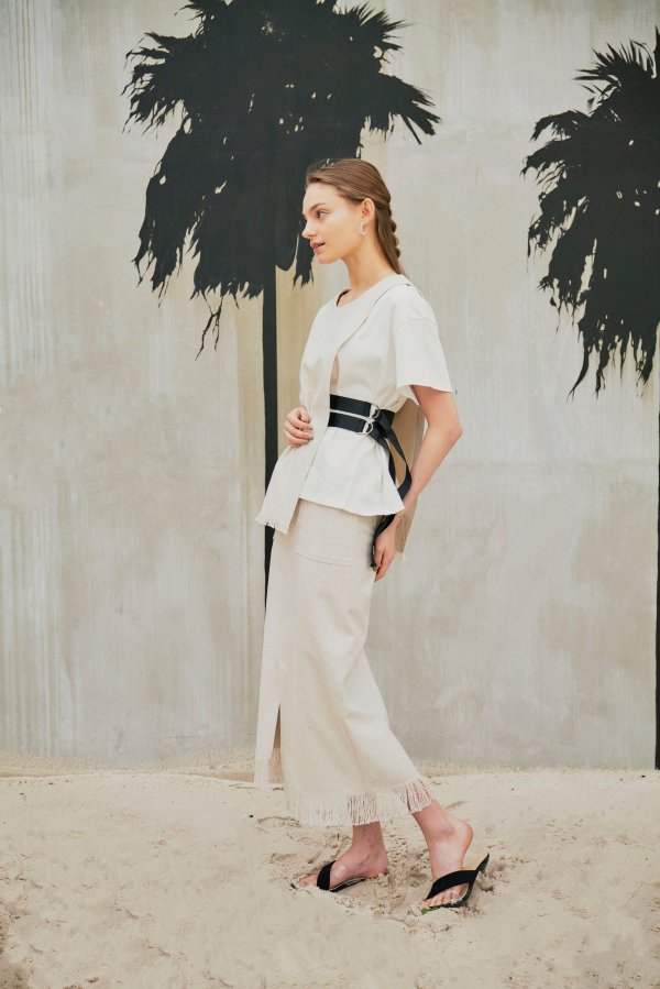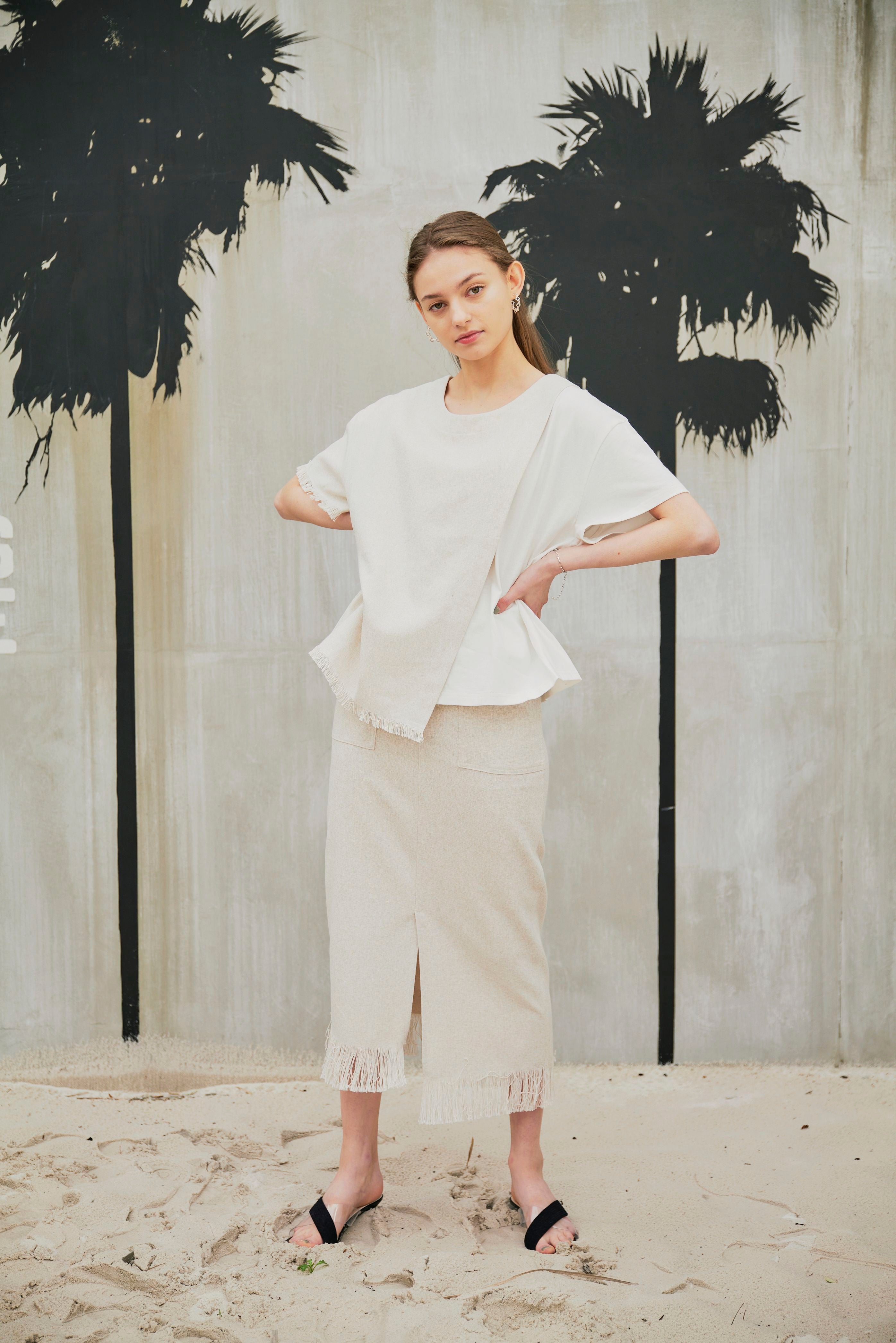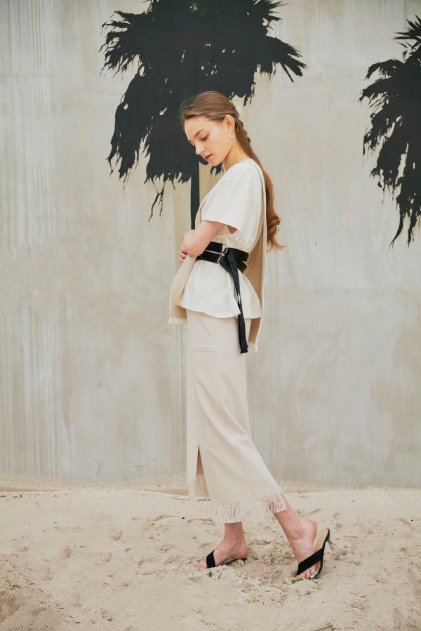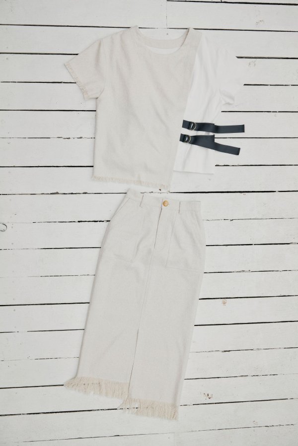 また、LINEN LIKE SKIRTとセットアップで着ていただくと