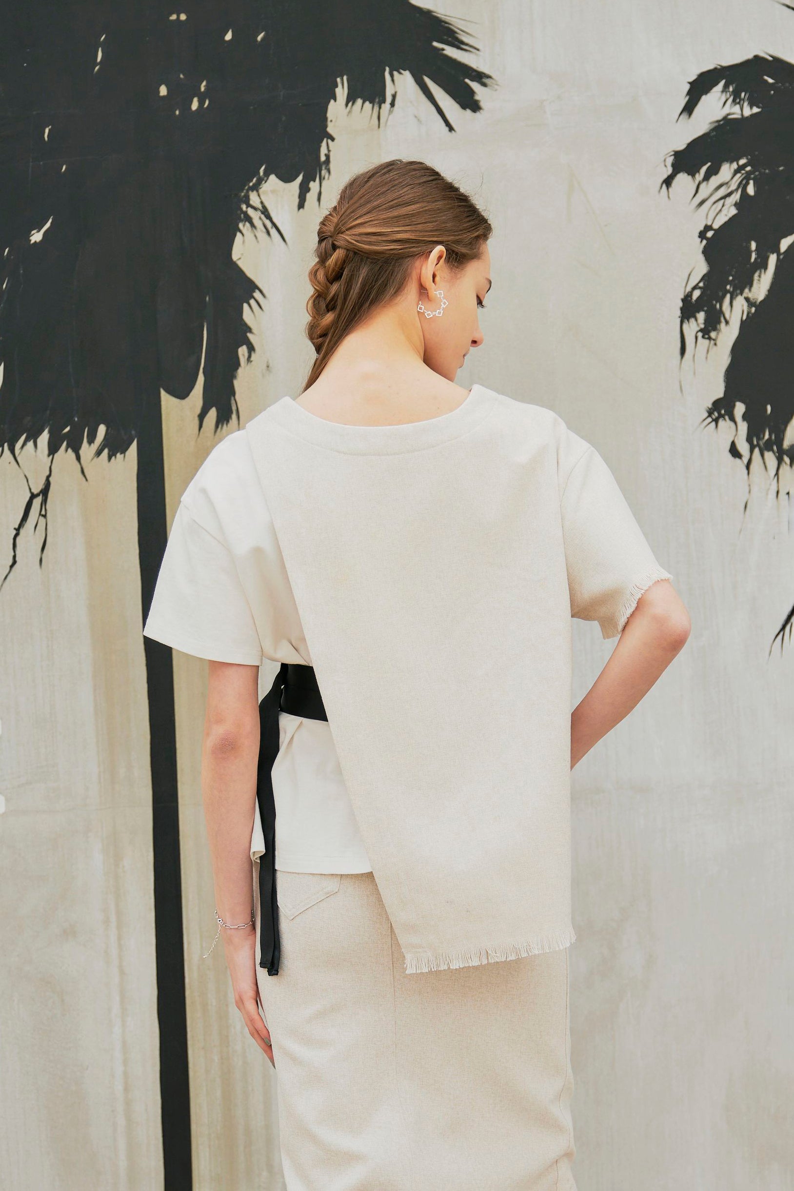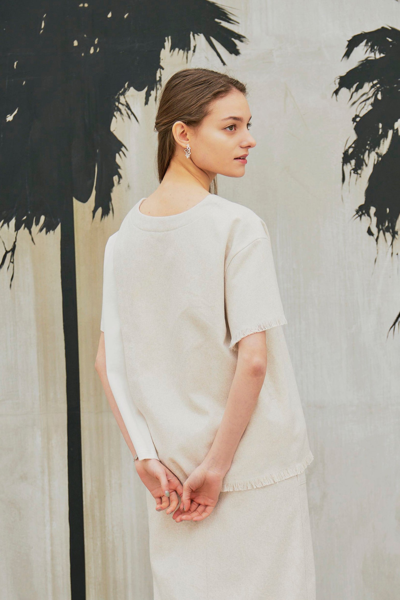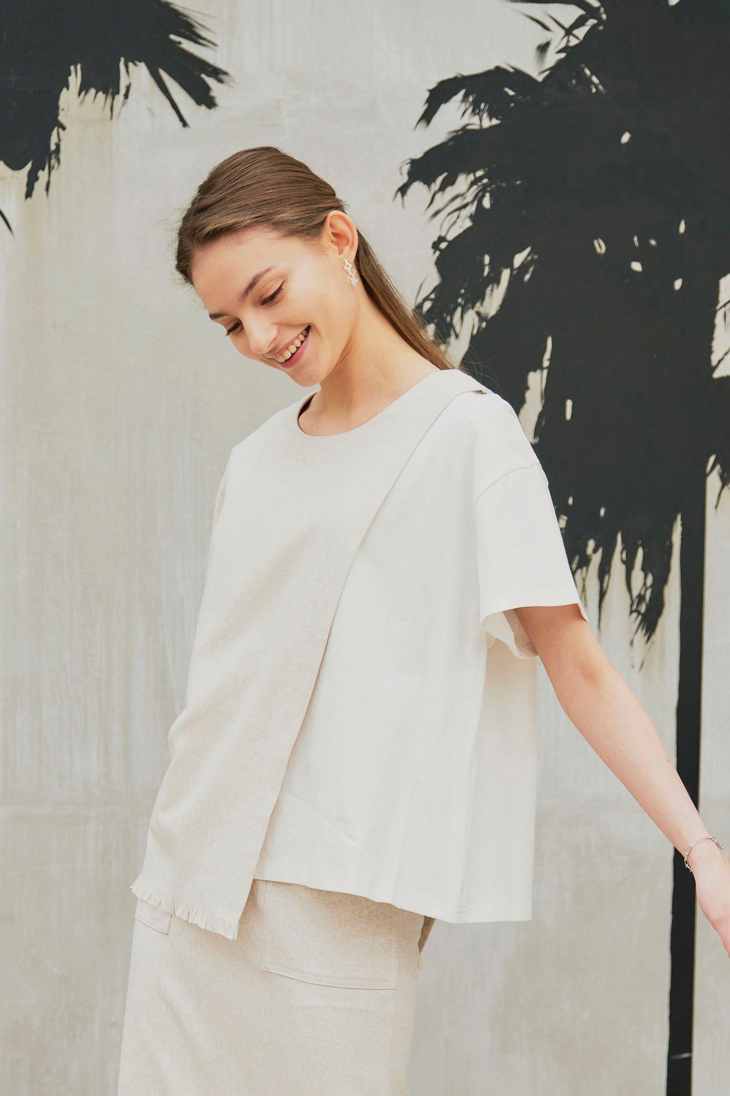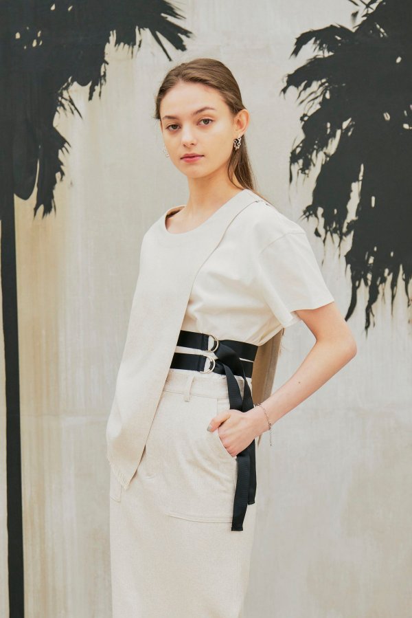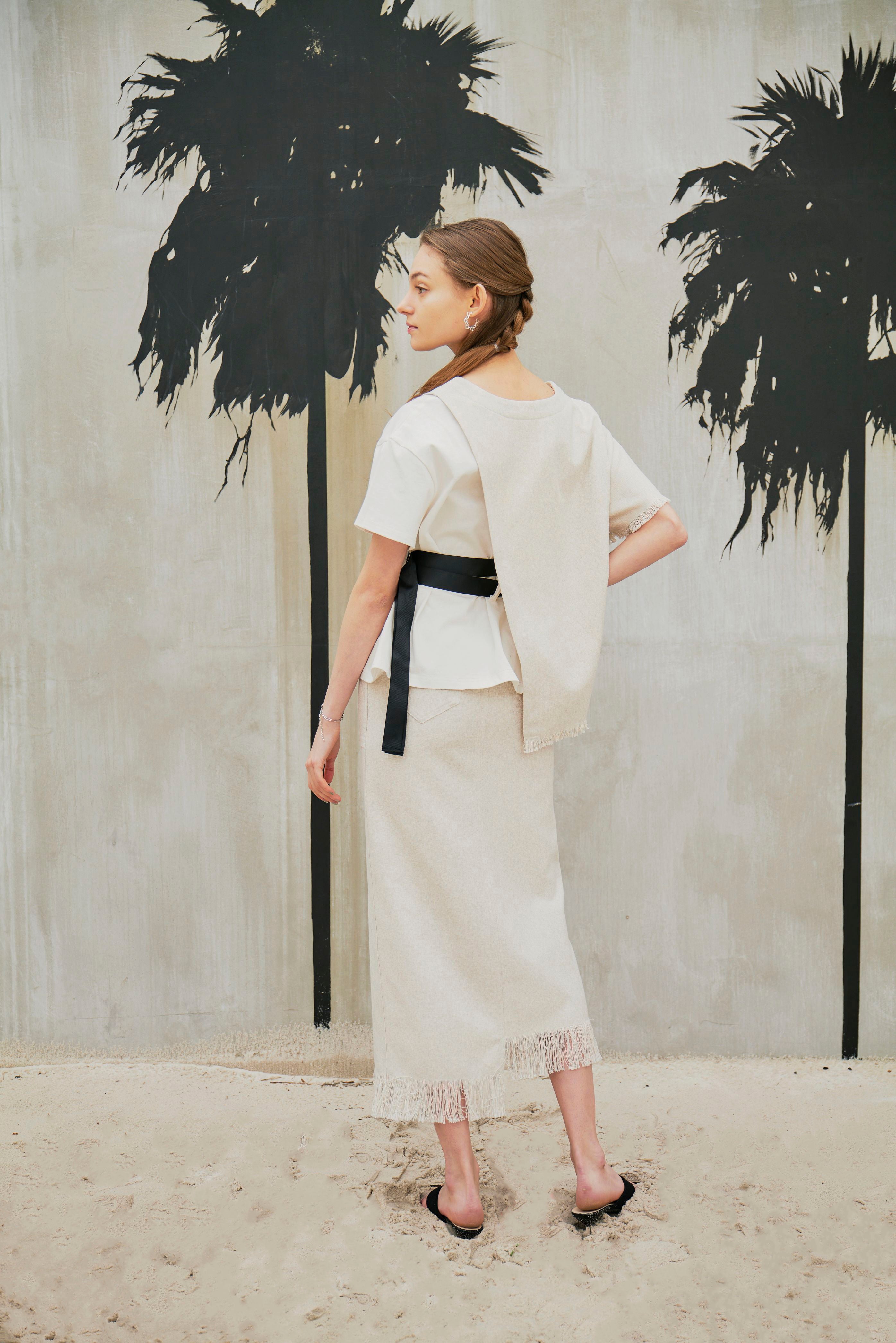 また、LINEN LIKE SKIRTとセットアップで着ていただくと