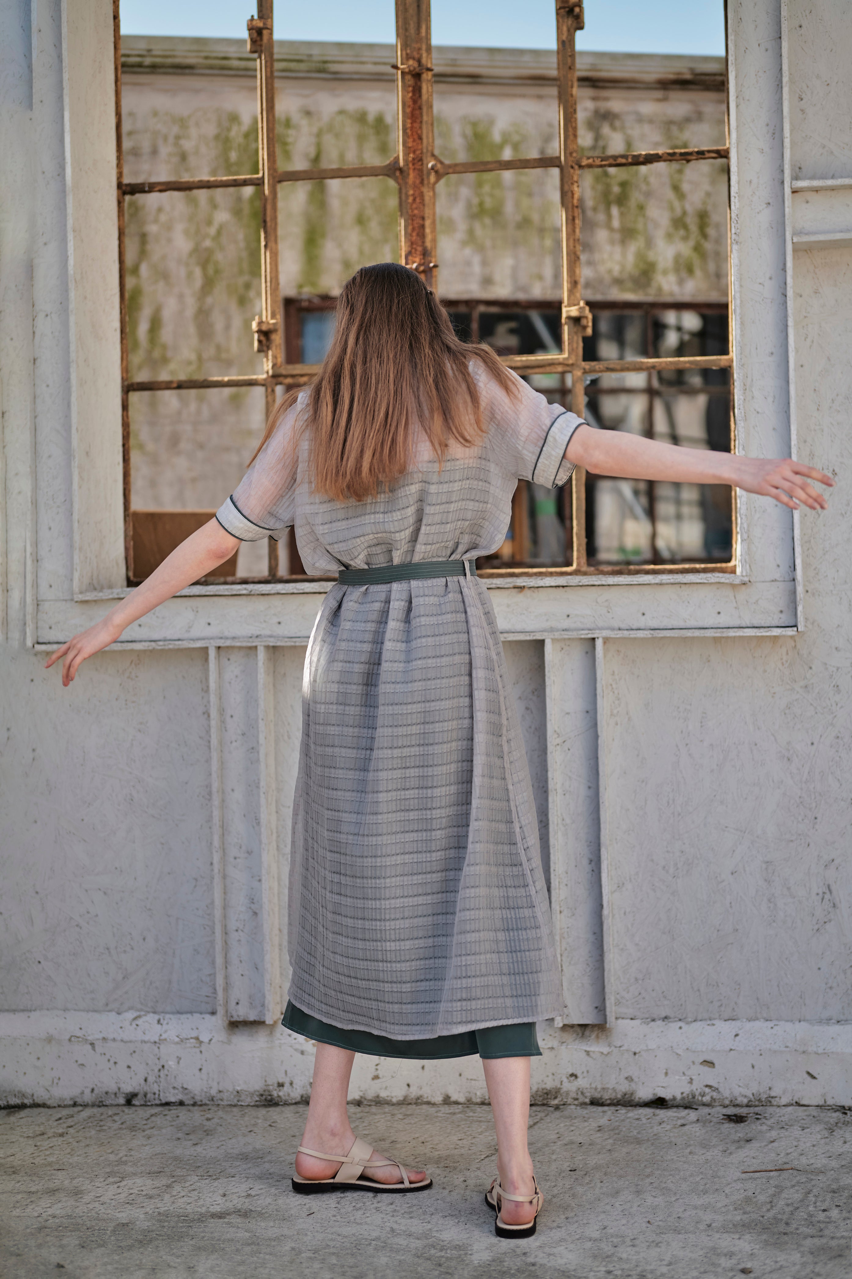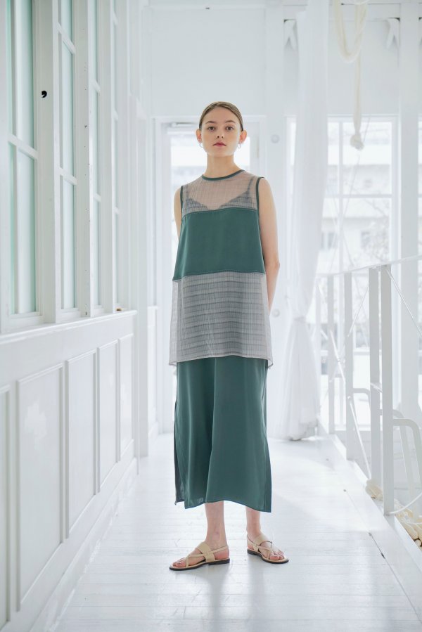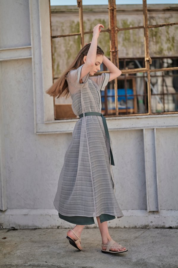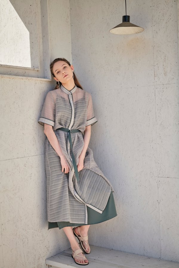 透け感がおしゃれなちょっと変わった生地のワンピース。