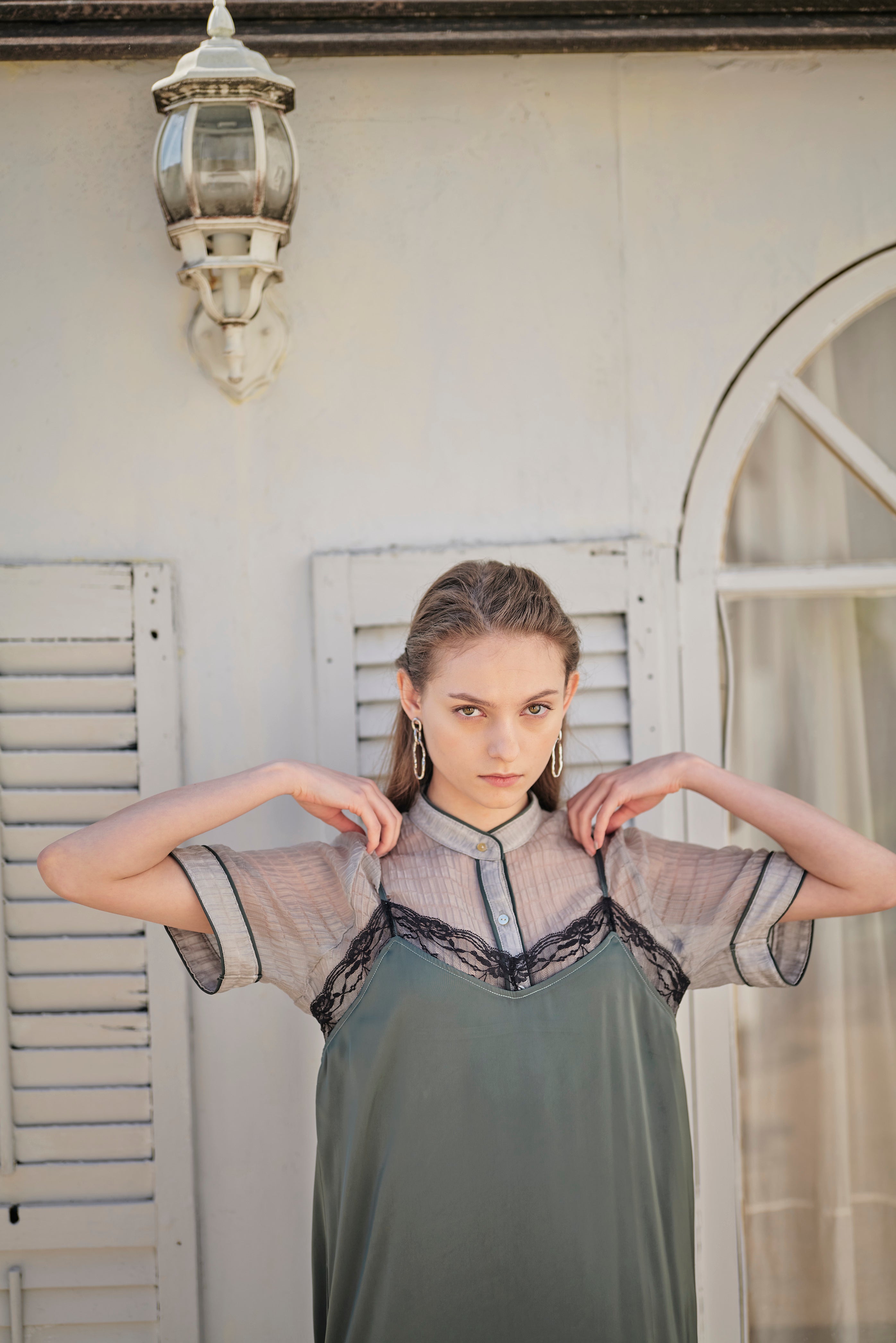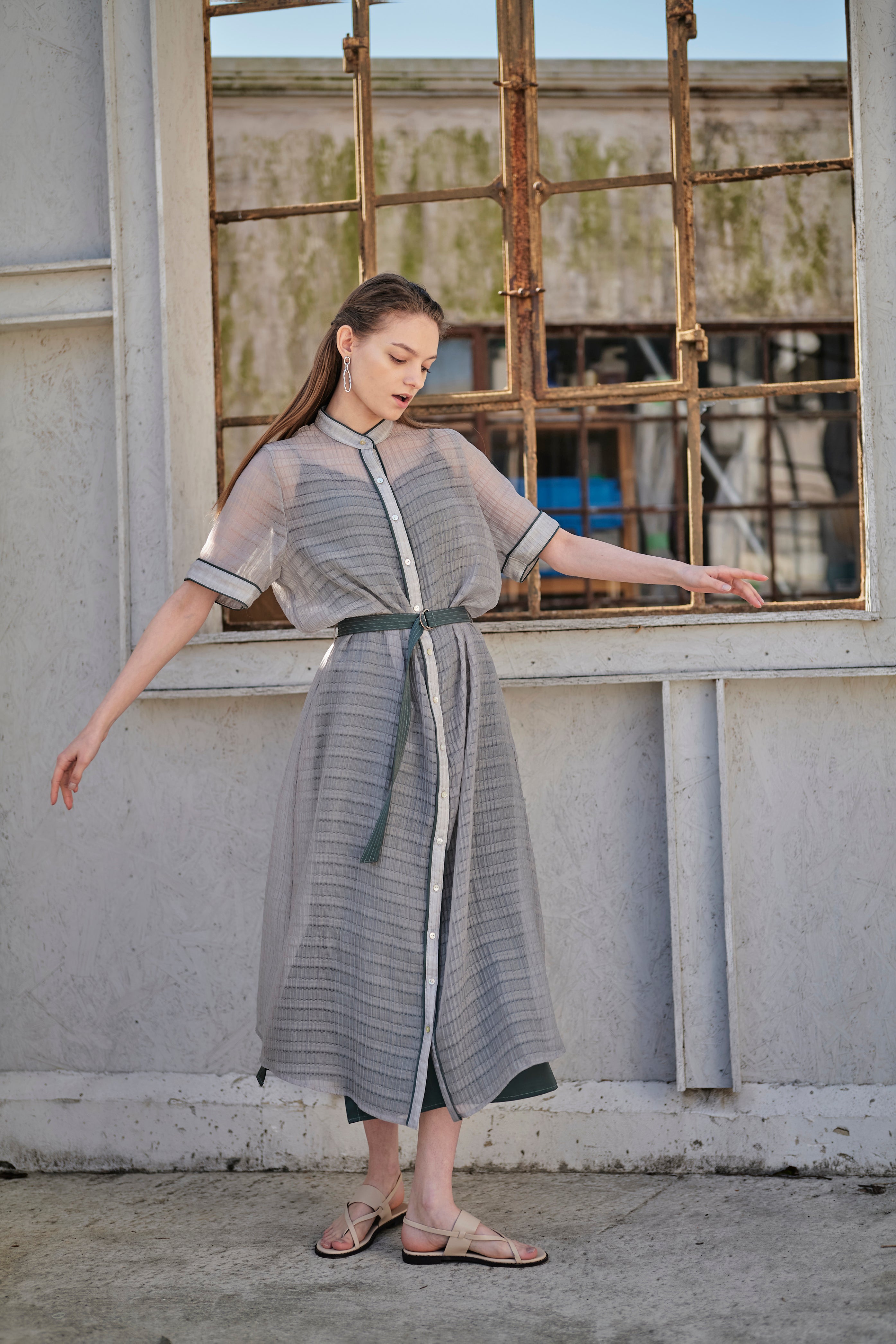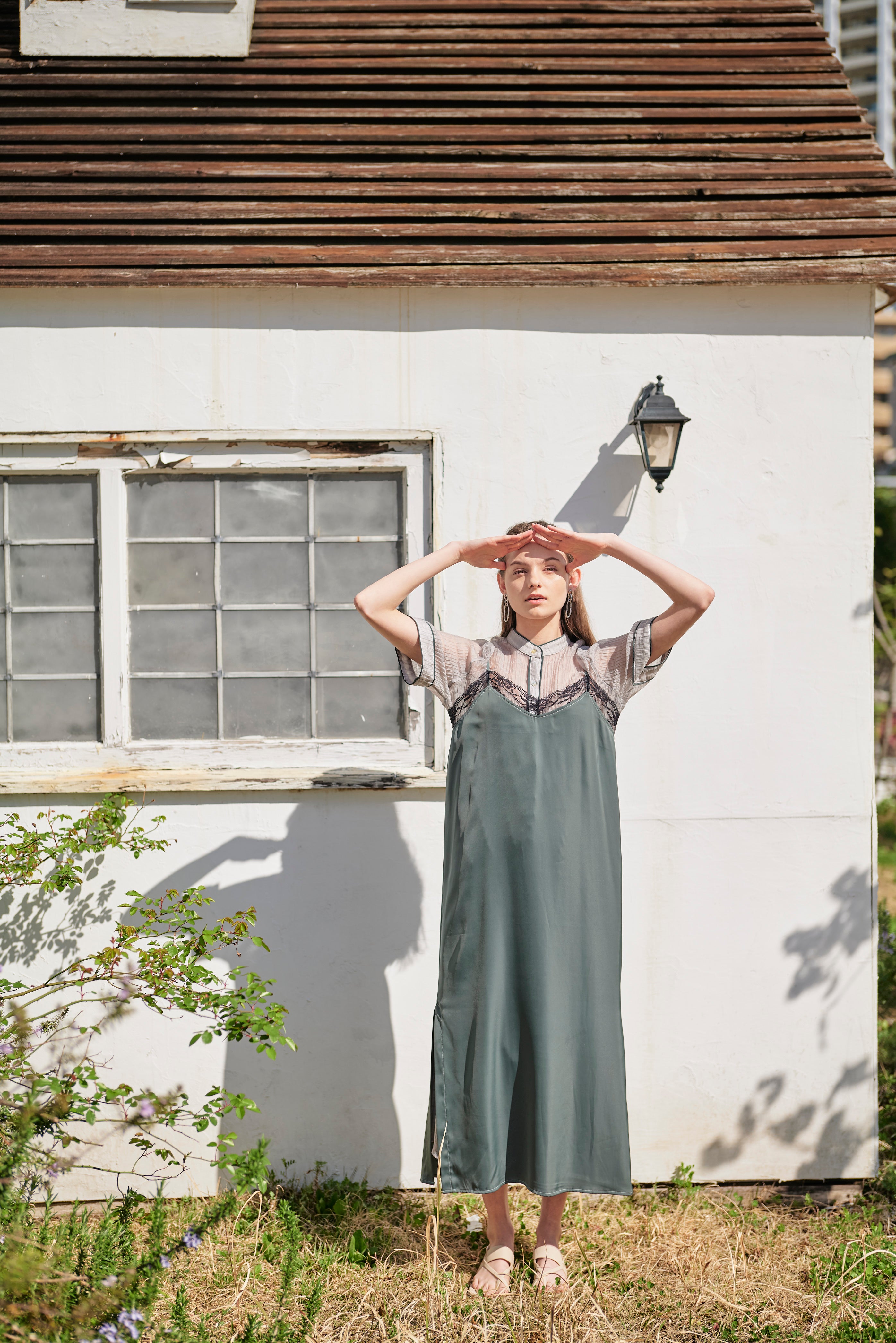 透け感がおしゃれなちょっと変わった生地のワンピース。