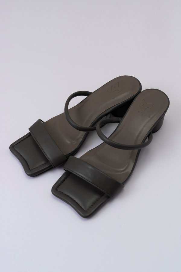 中底のつま先がウエーブ型になっており、モード感を漂わせつつもアッパーはシンプルにまとめて足もすっきり甲が見えるデザインです。安定感のある太めのヒールとクッション感がポイントの一足です。