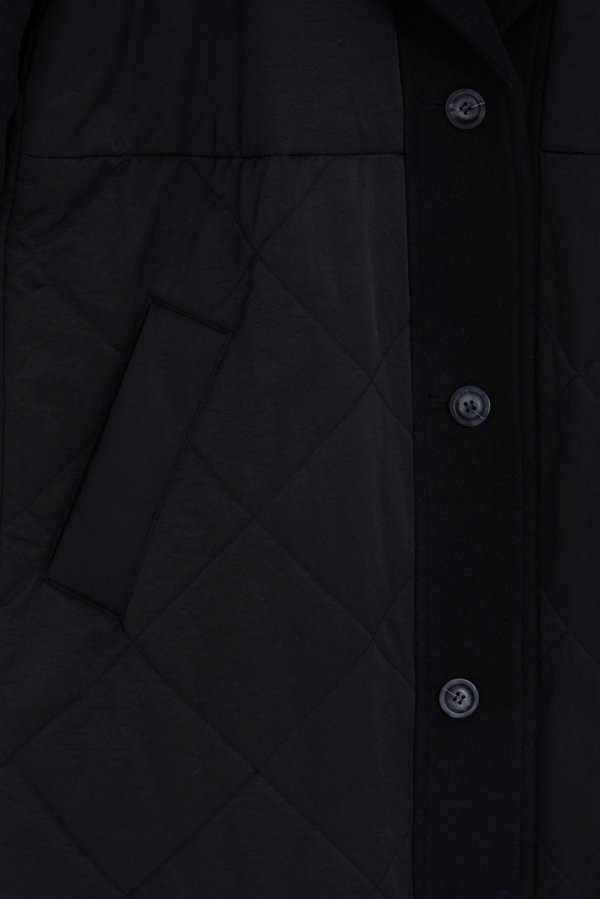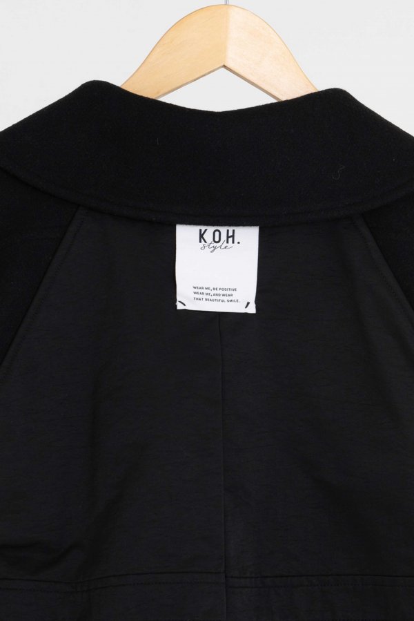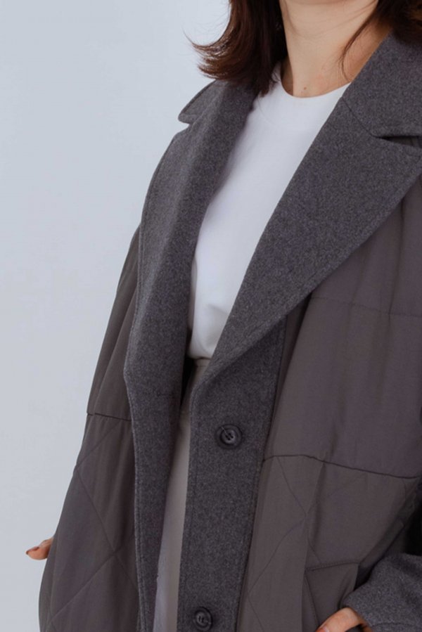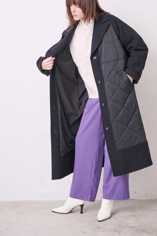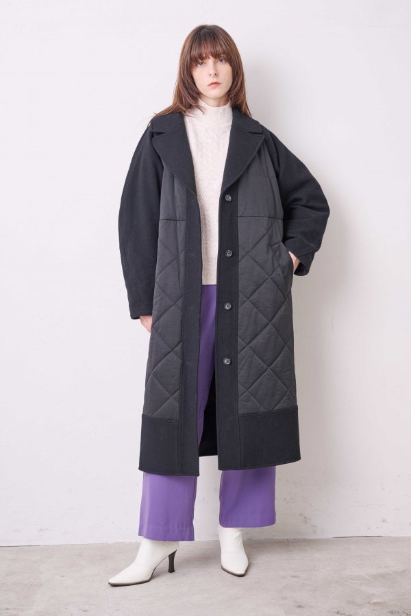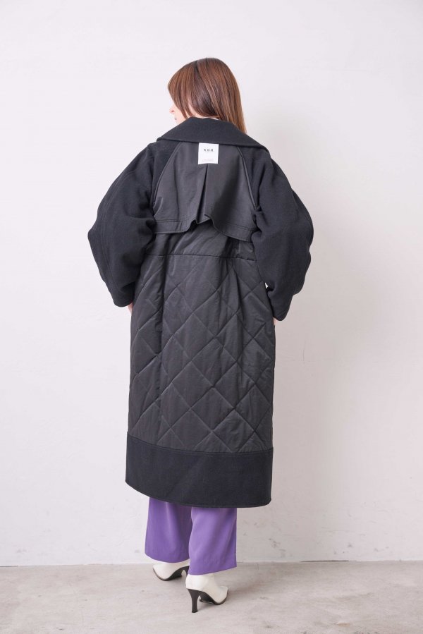 ウール素材とキルティングの異素材使いがKOH.styleらしい構築的な袖のフォルムが特徴的な主役コート。