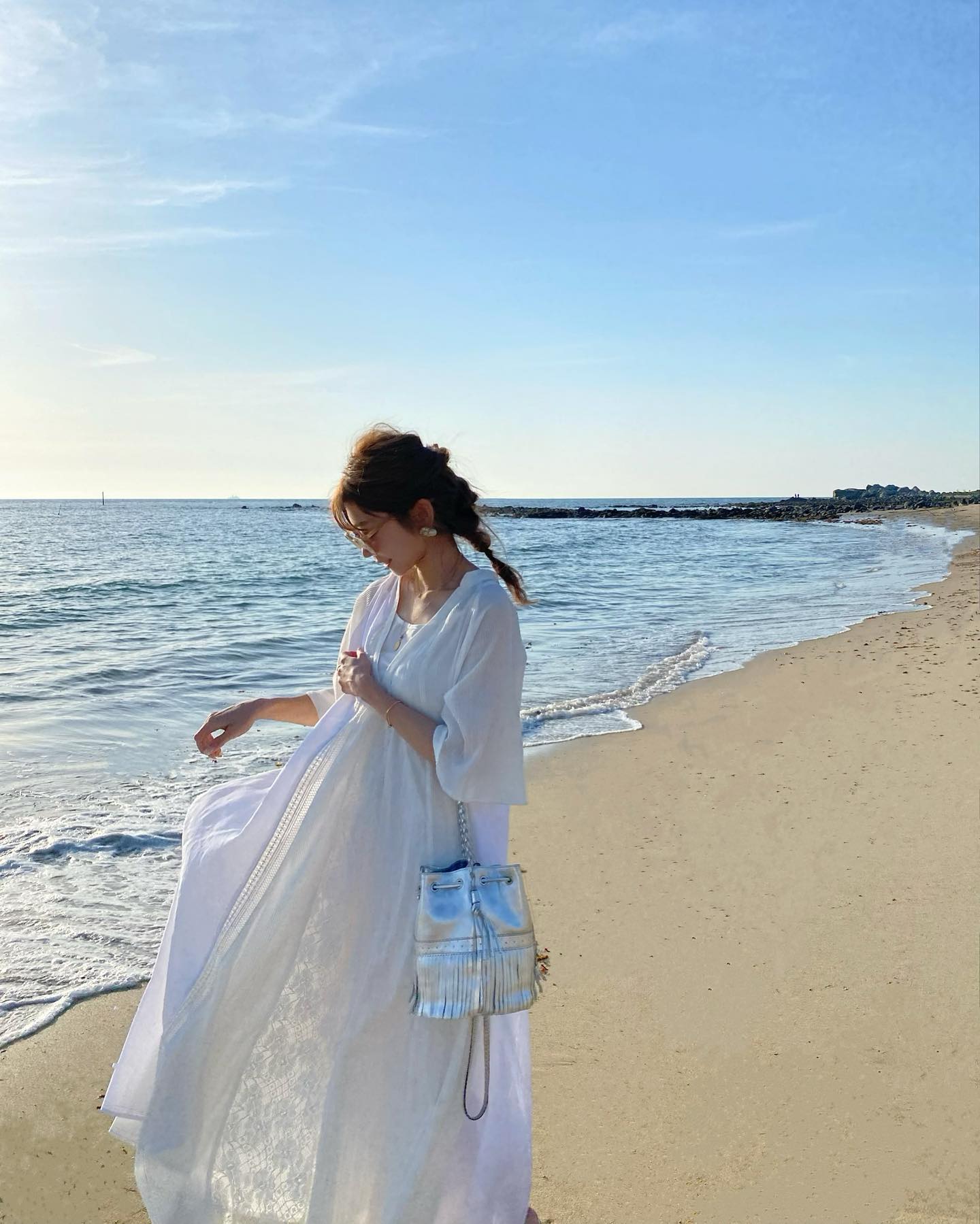 動くだけでふわっと広がるシルエットが印象的なワンピース。