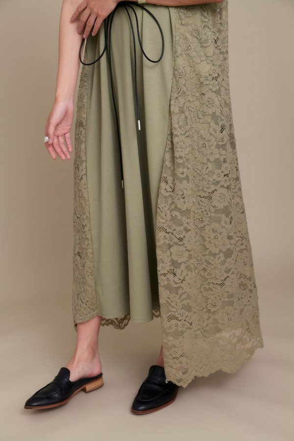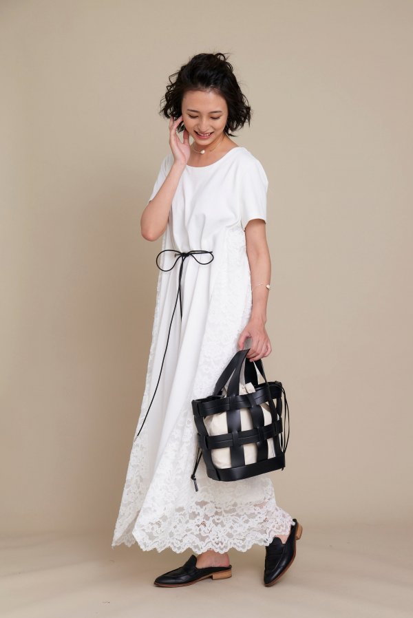 ゆったりサイズですが、ウエストには合皮の紐がついていて