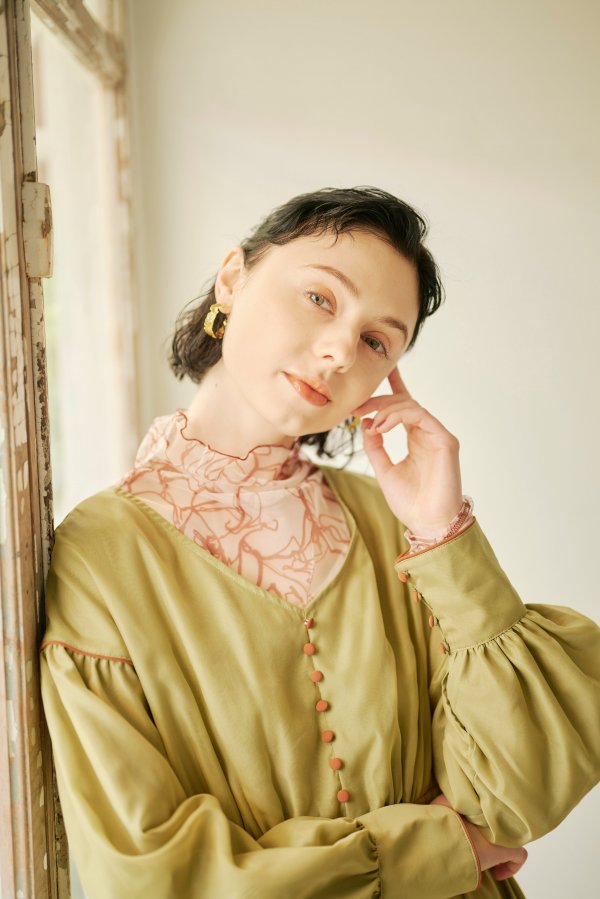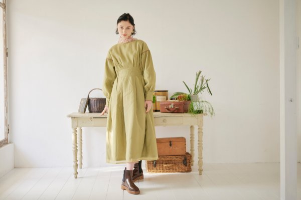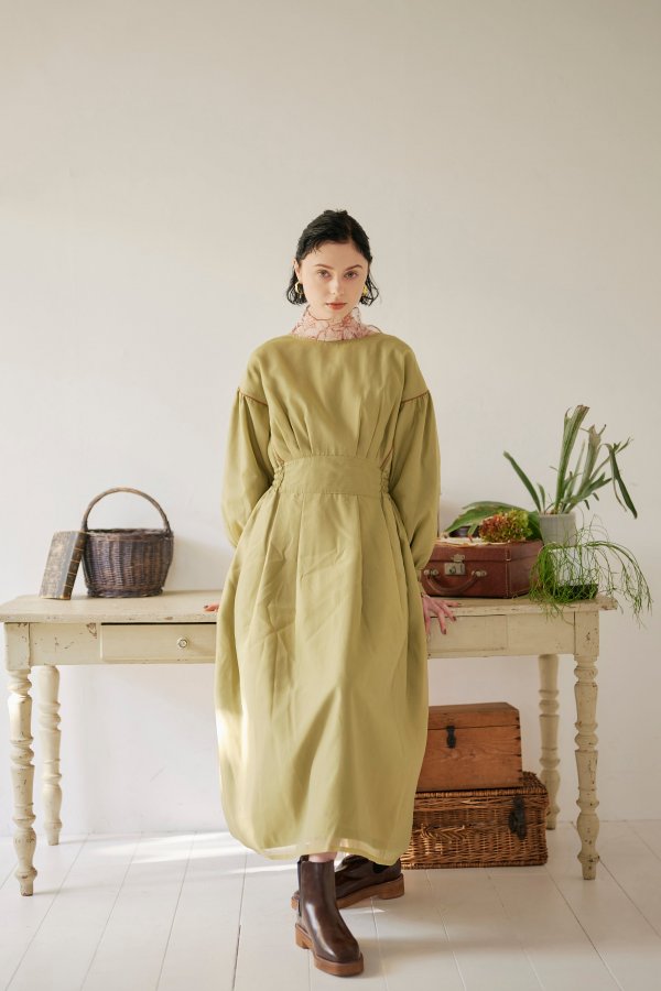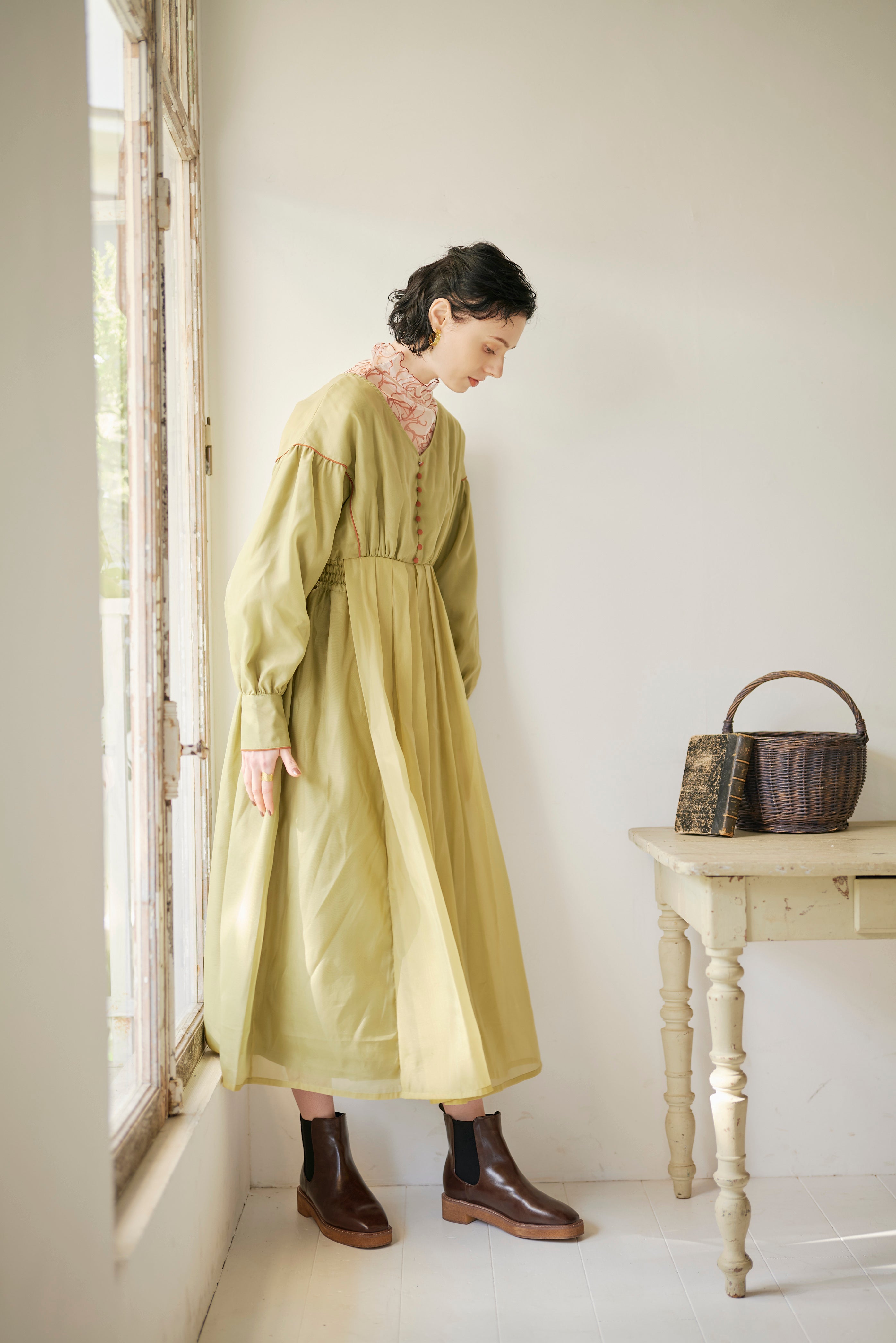 異素材を重ねて仕立てたこだわりのワンピースは、
