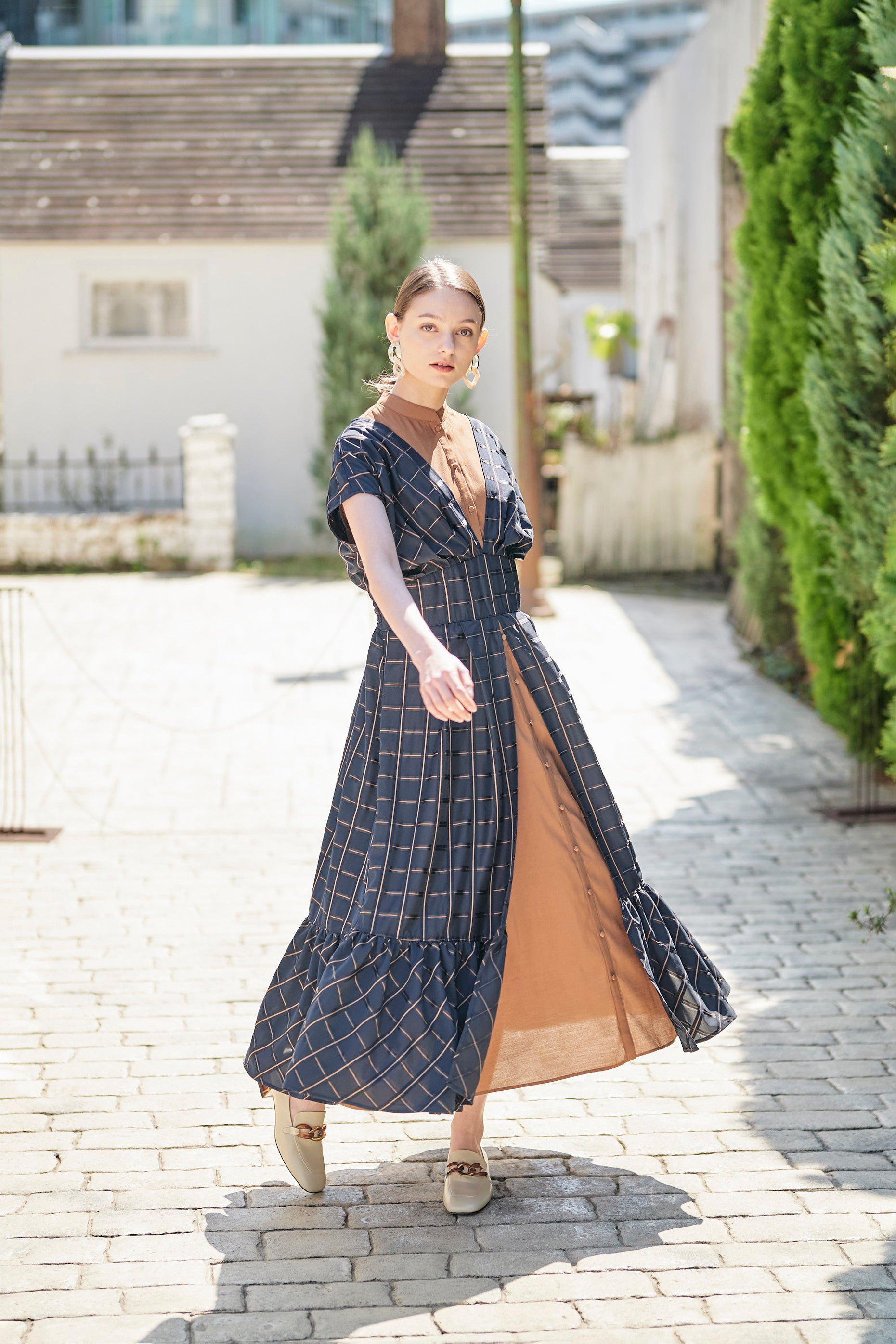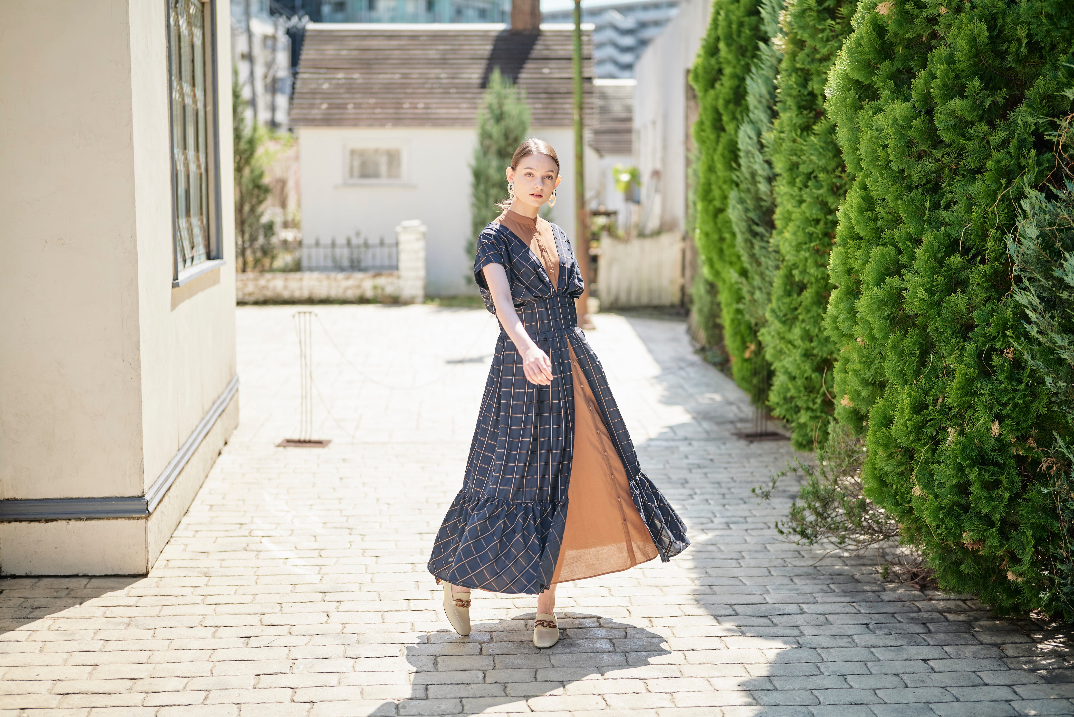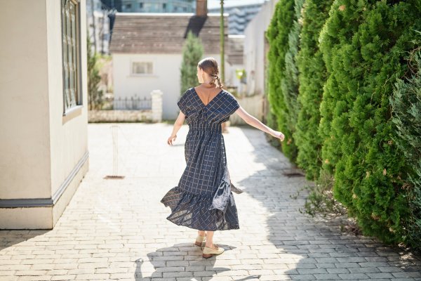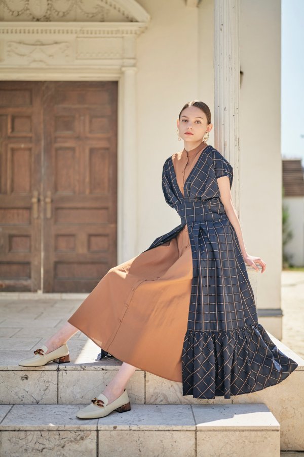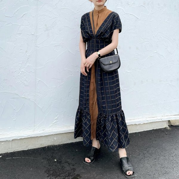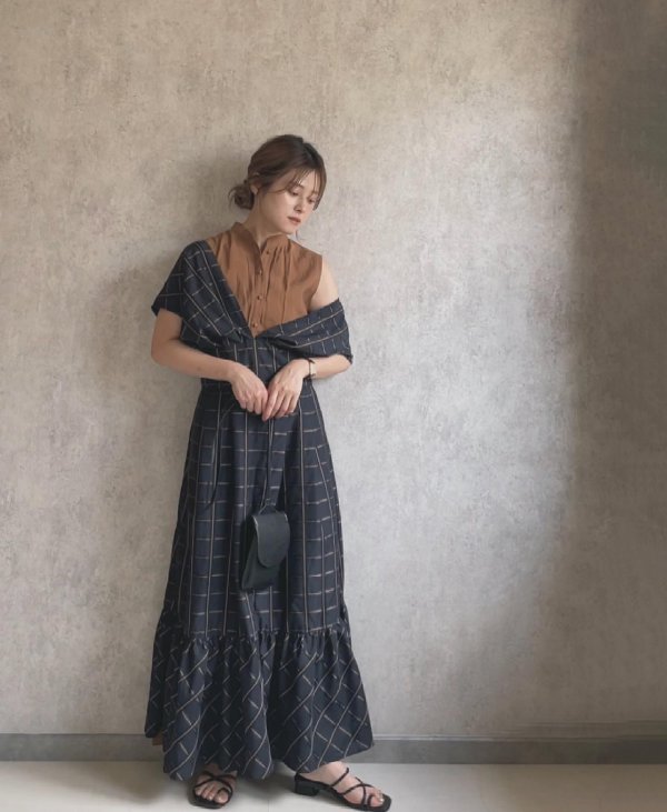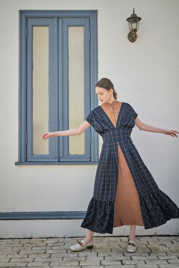 子供っぽくならないチェックと配色が印象的なワンピース。