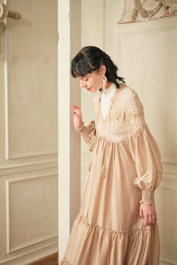 クロシェ編みの切り替えディティールが他にはないポイントに。