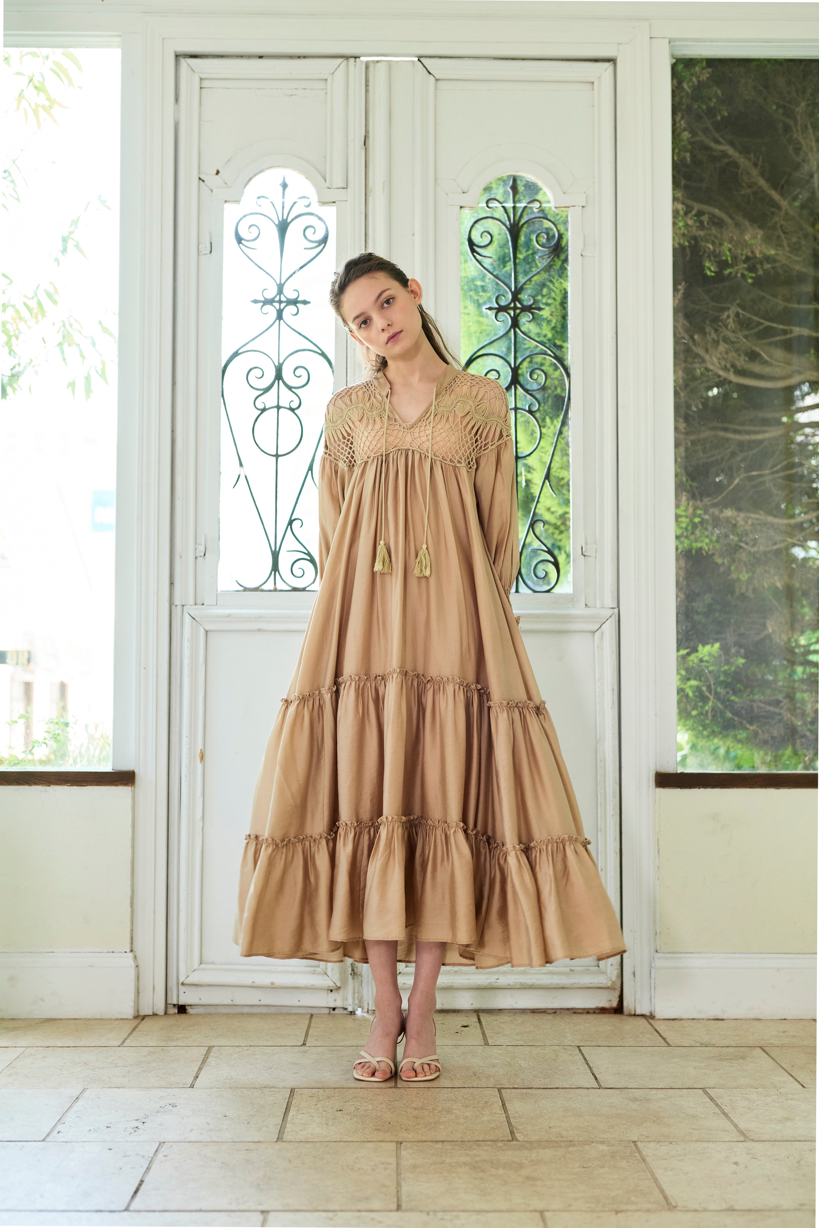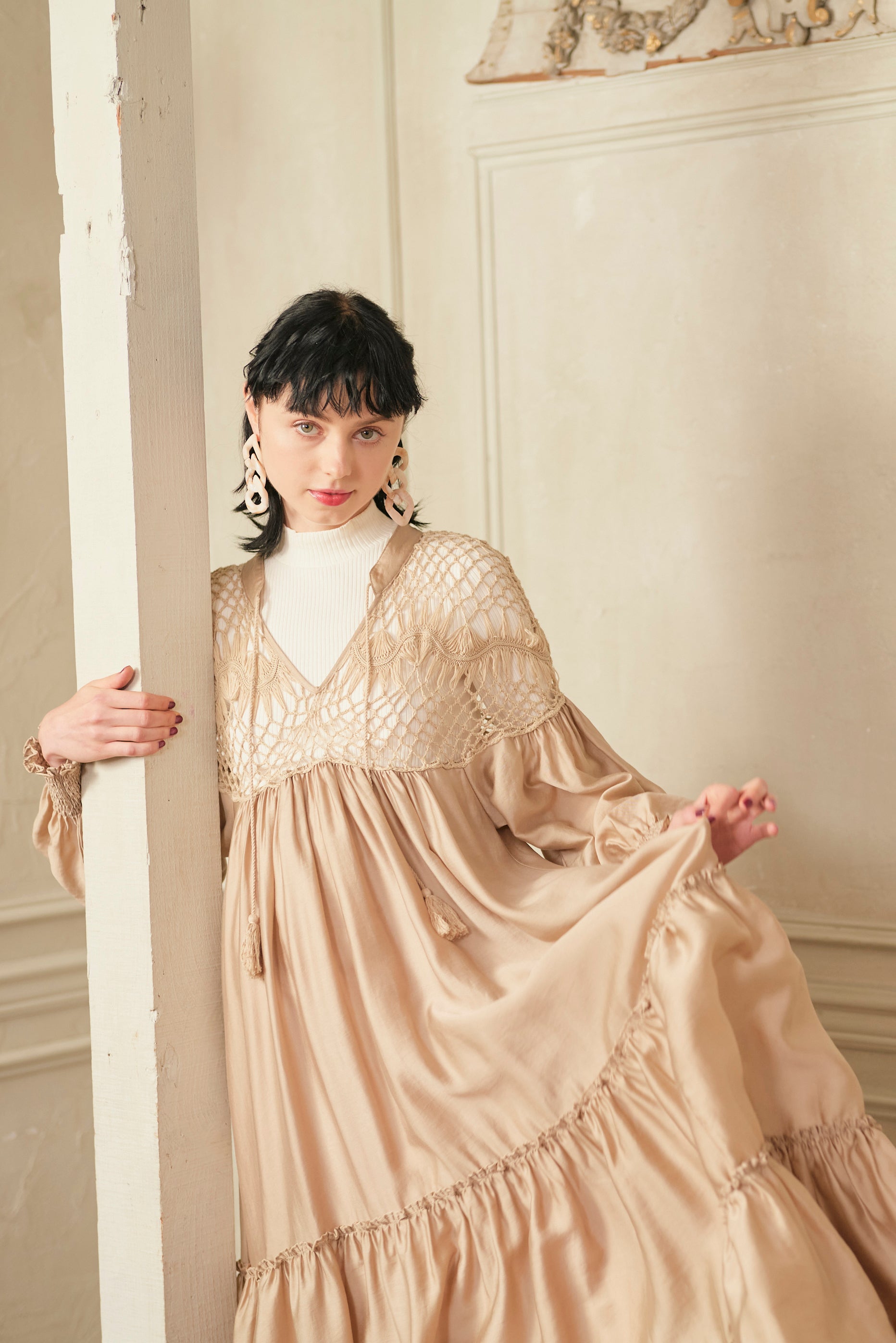 思わず回りたくなるような分量たっぷりのワンピースで、