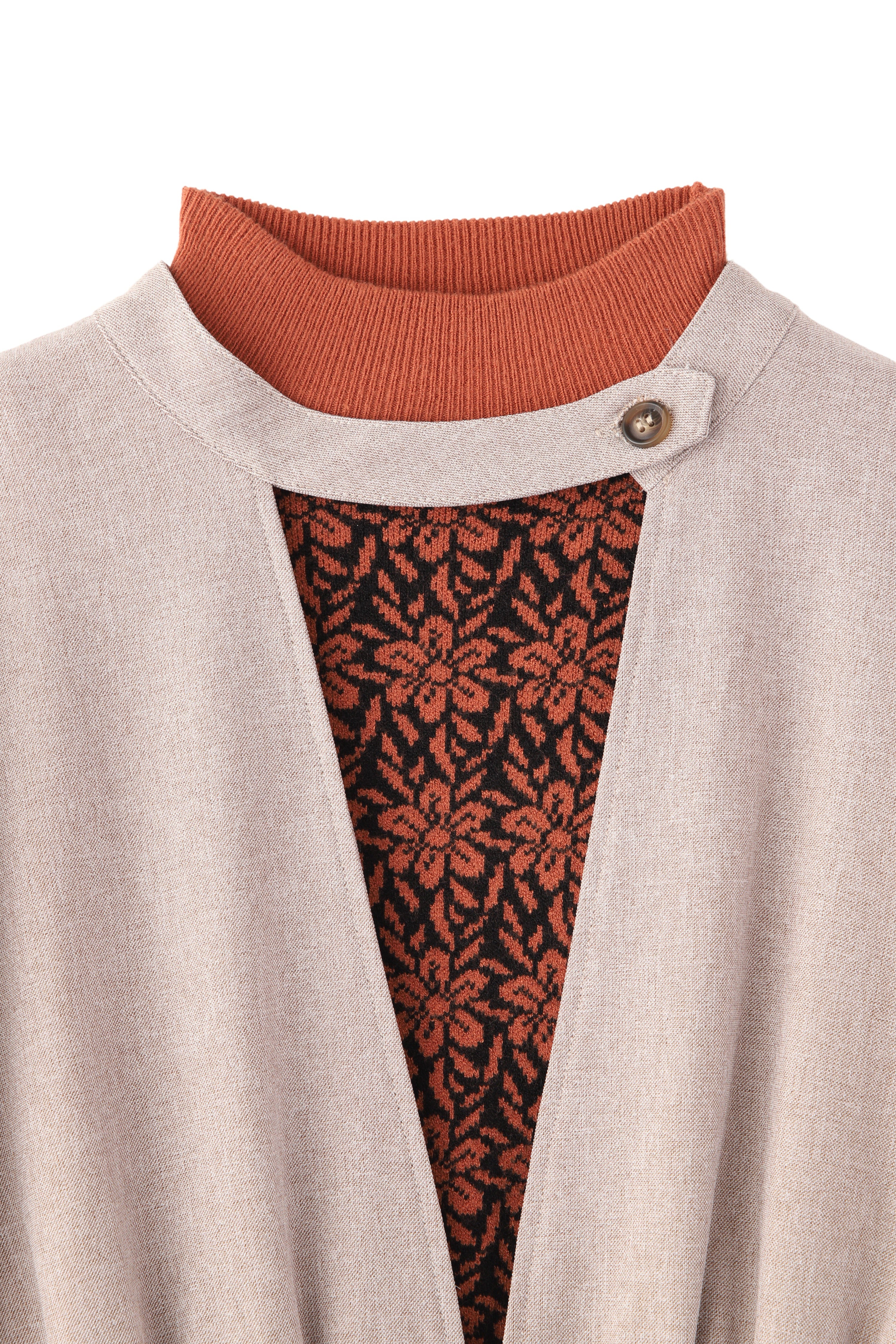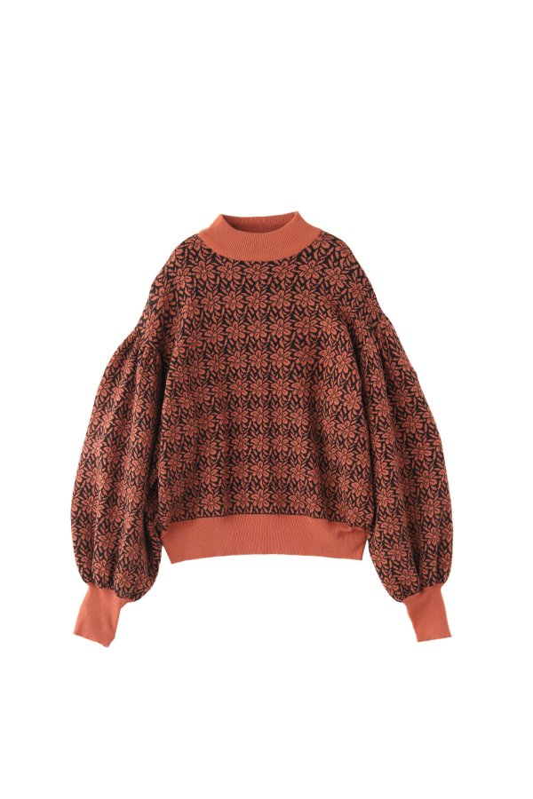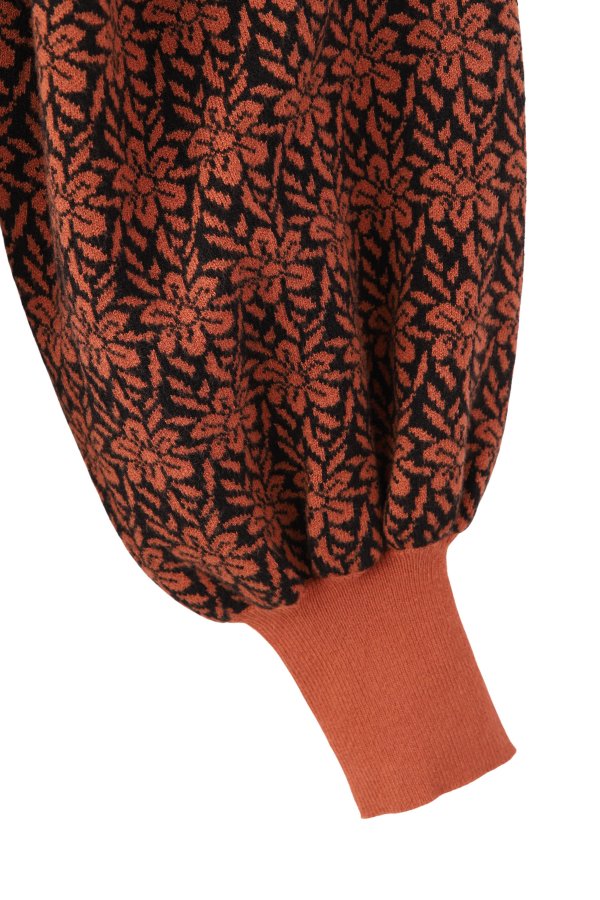 少しレトロ感のある花柄のジャガードニットトップスと