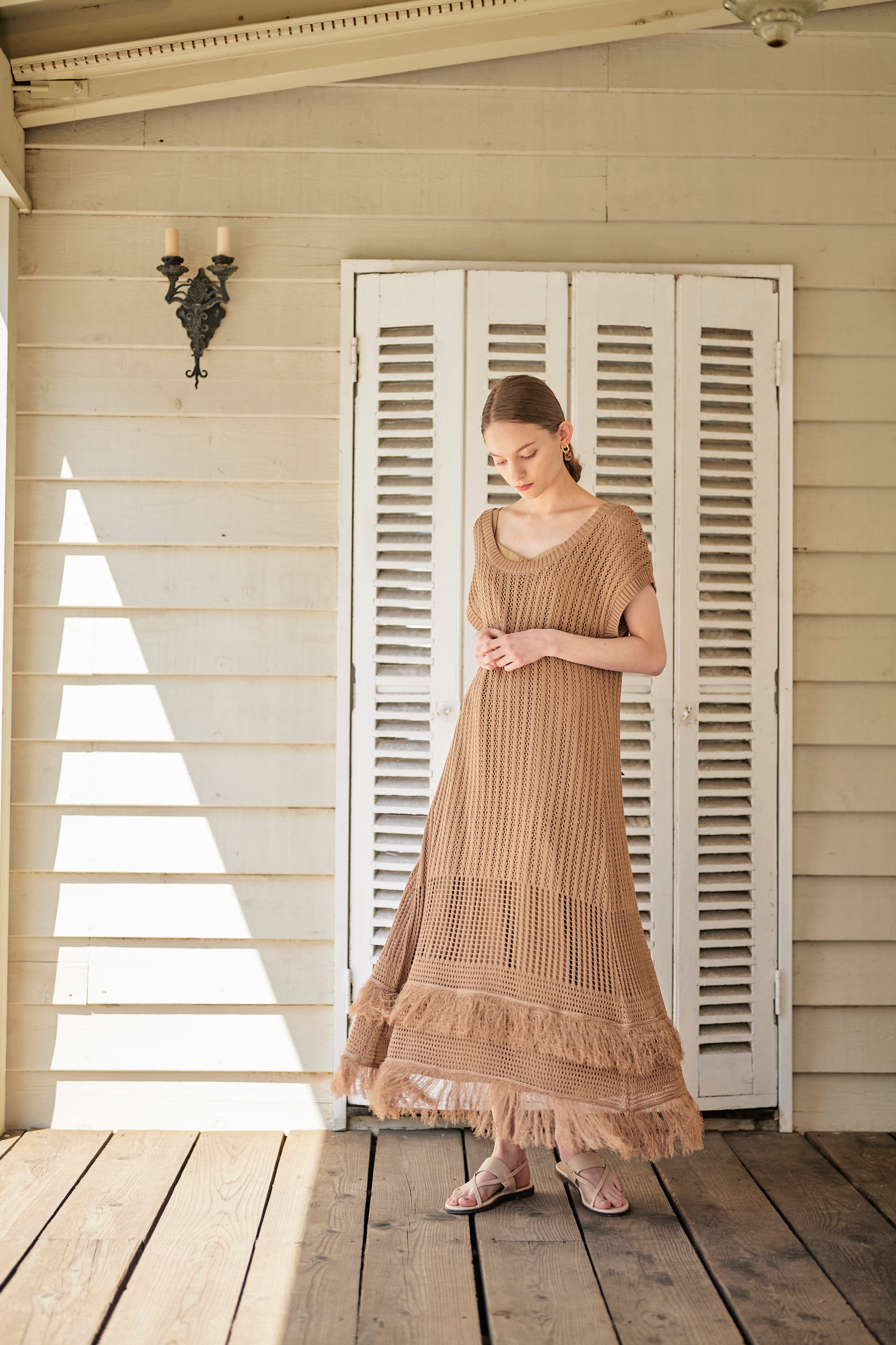 ざっくりとしたニットロングワンピースとして着ていただけます。
