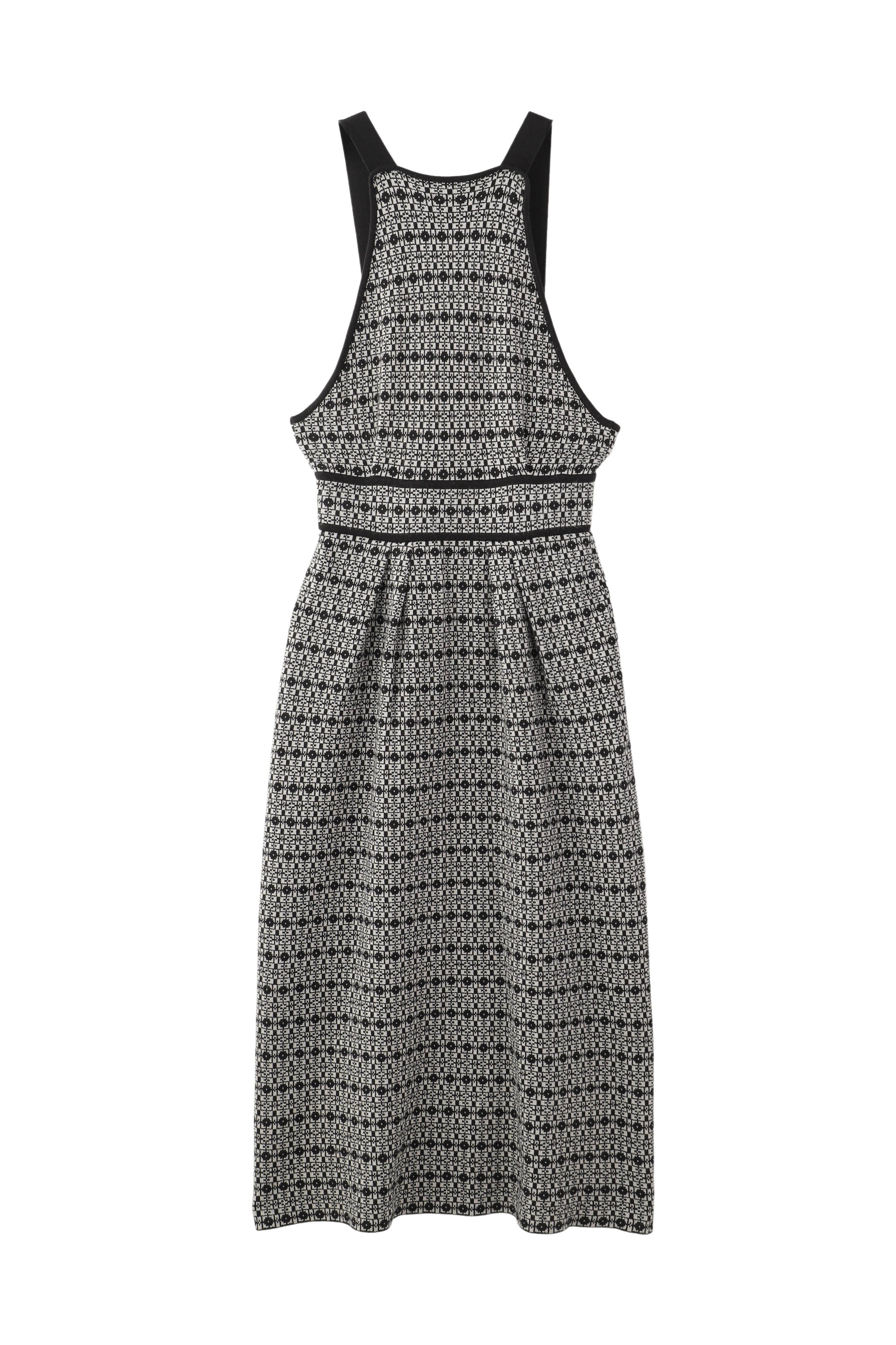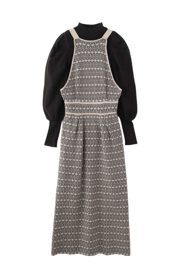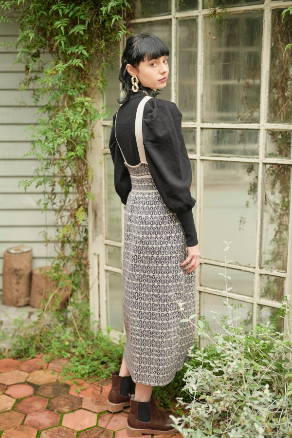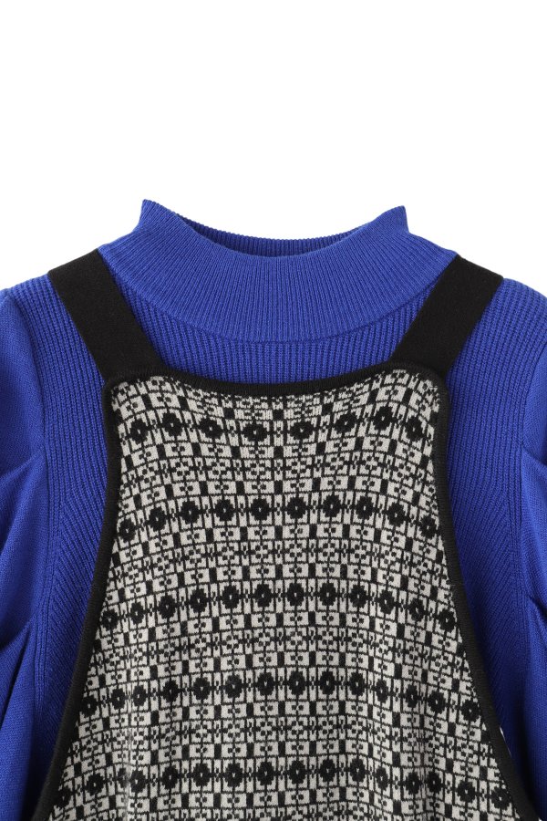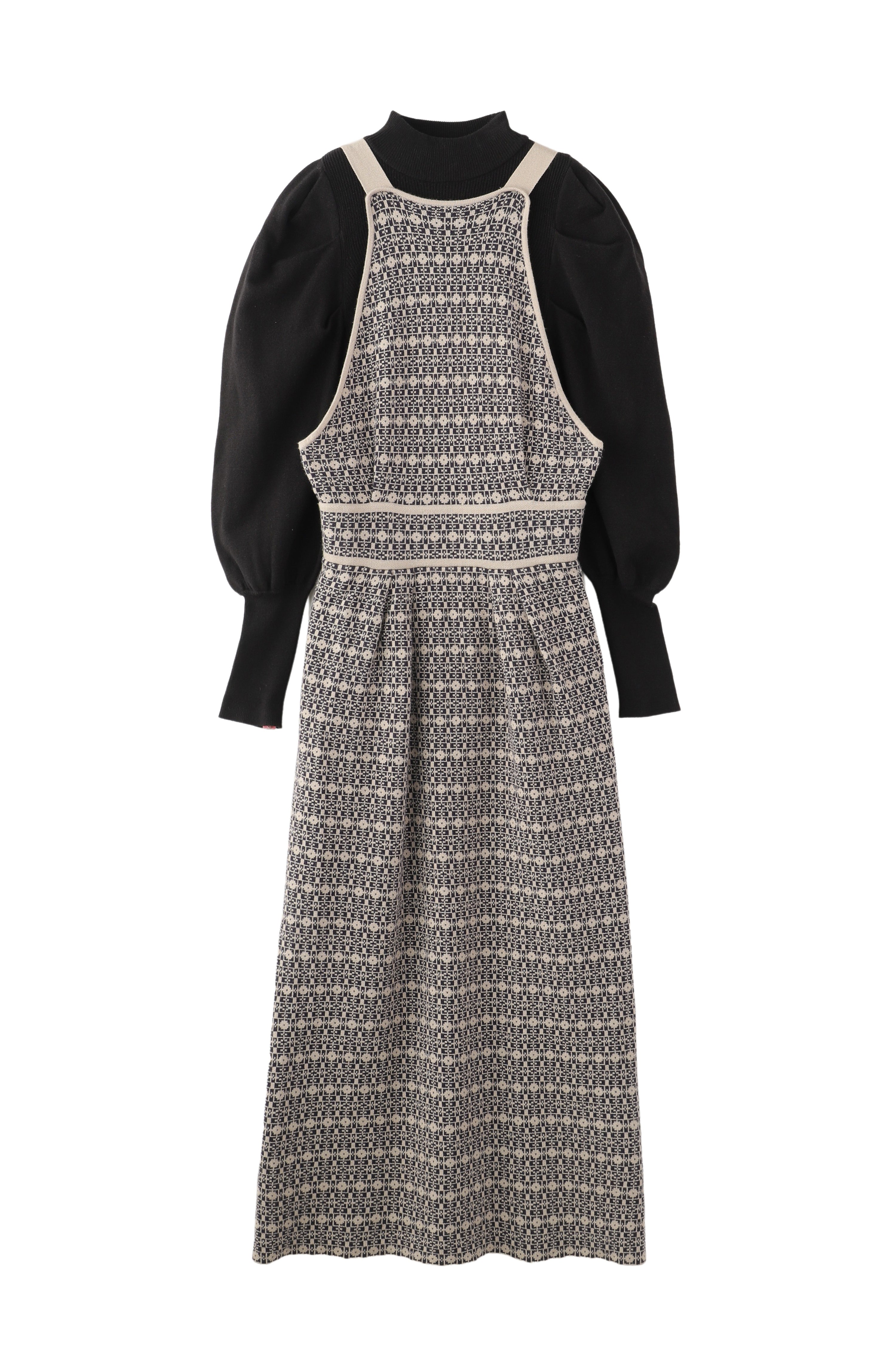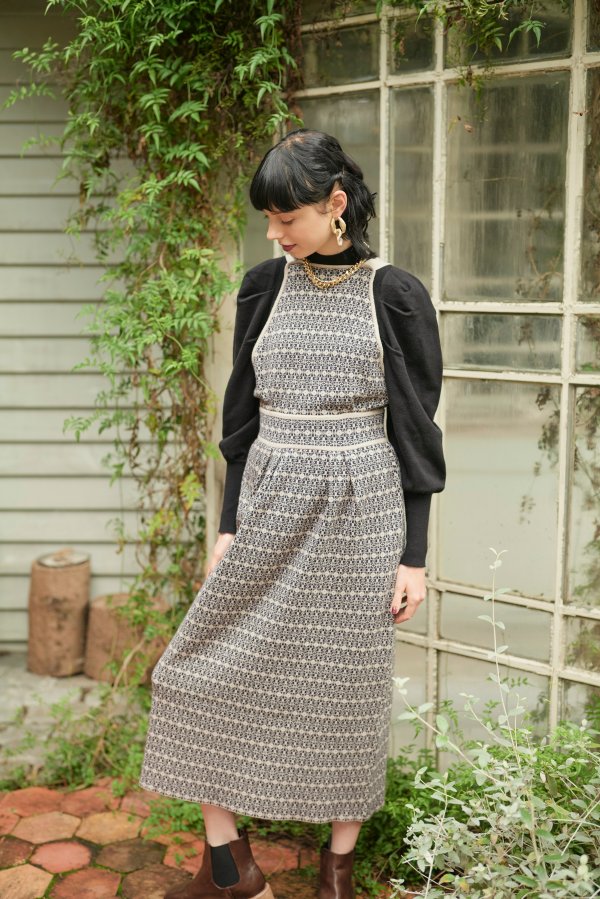 格子総柄のニットジャンパースカートと