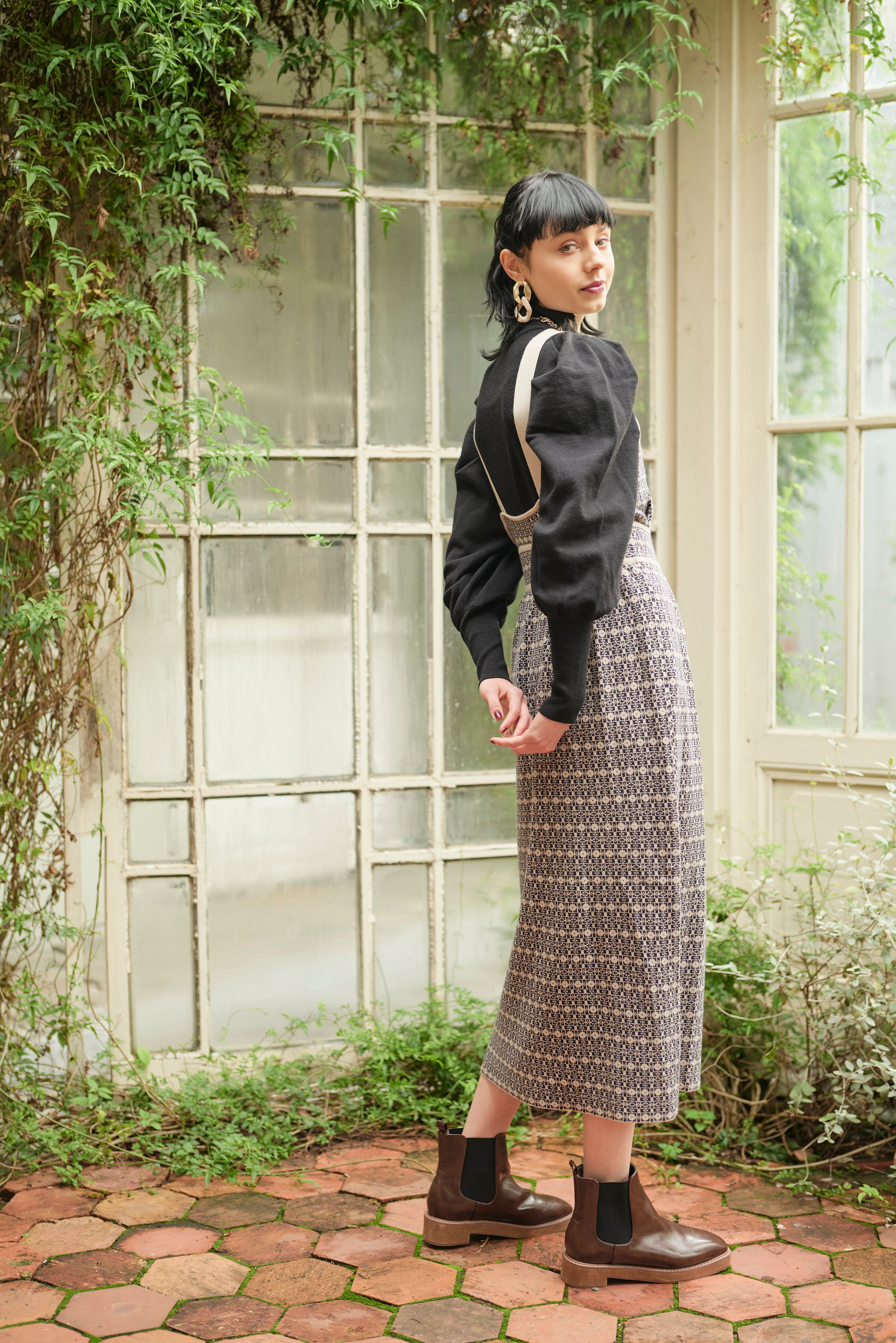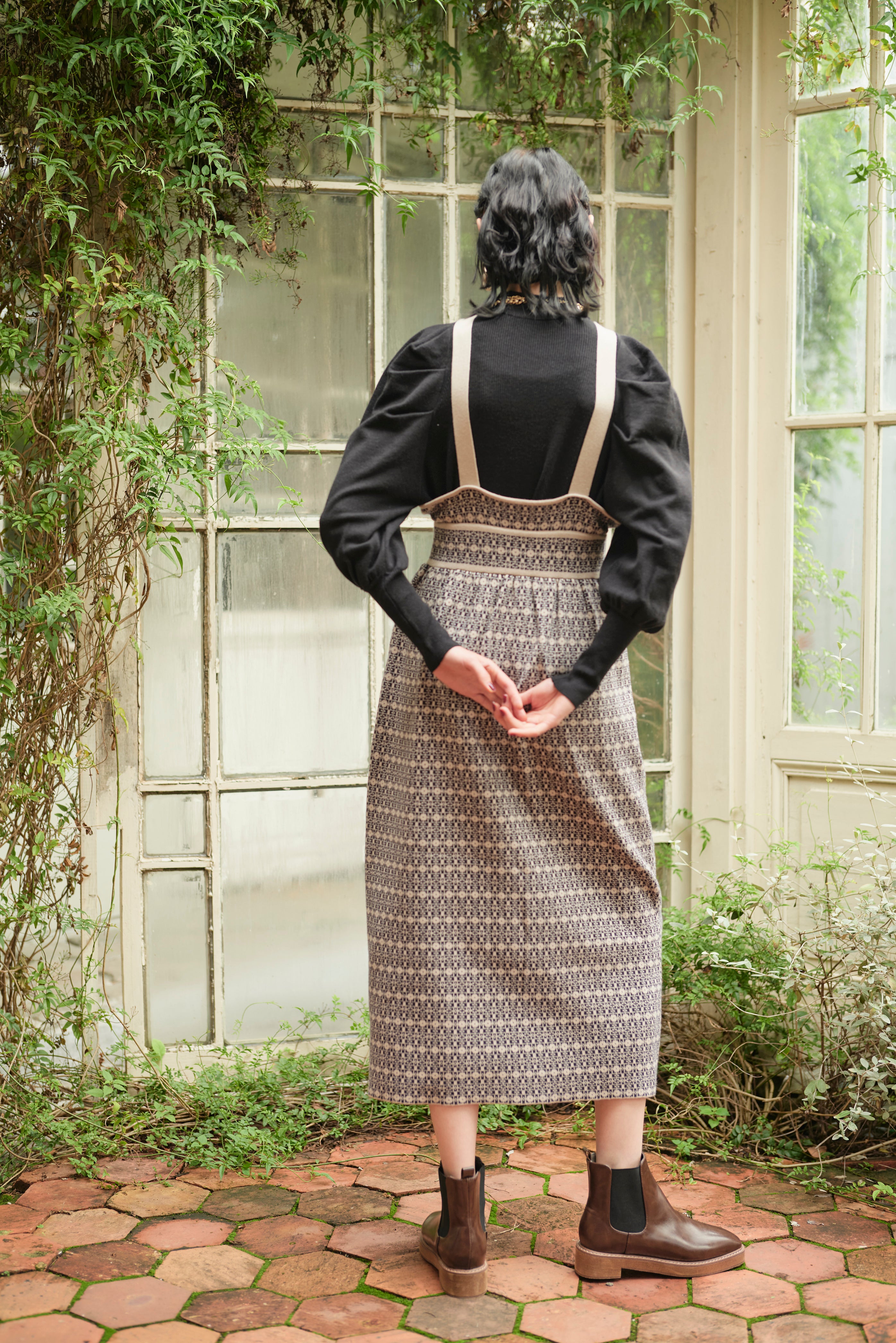 ジャンパースカートは中にブラウスなどで合わせていただくと、