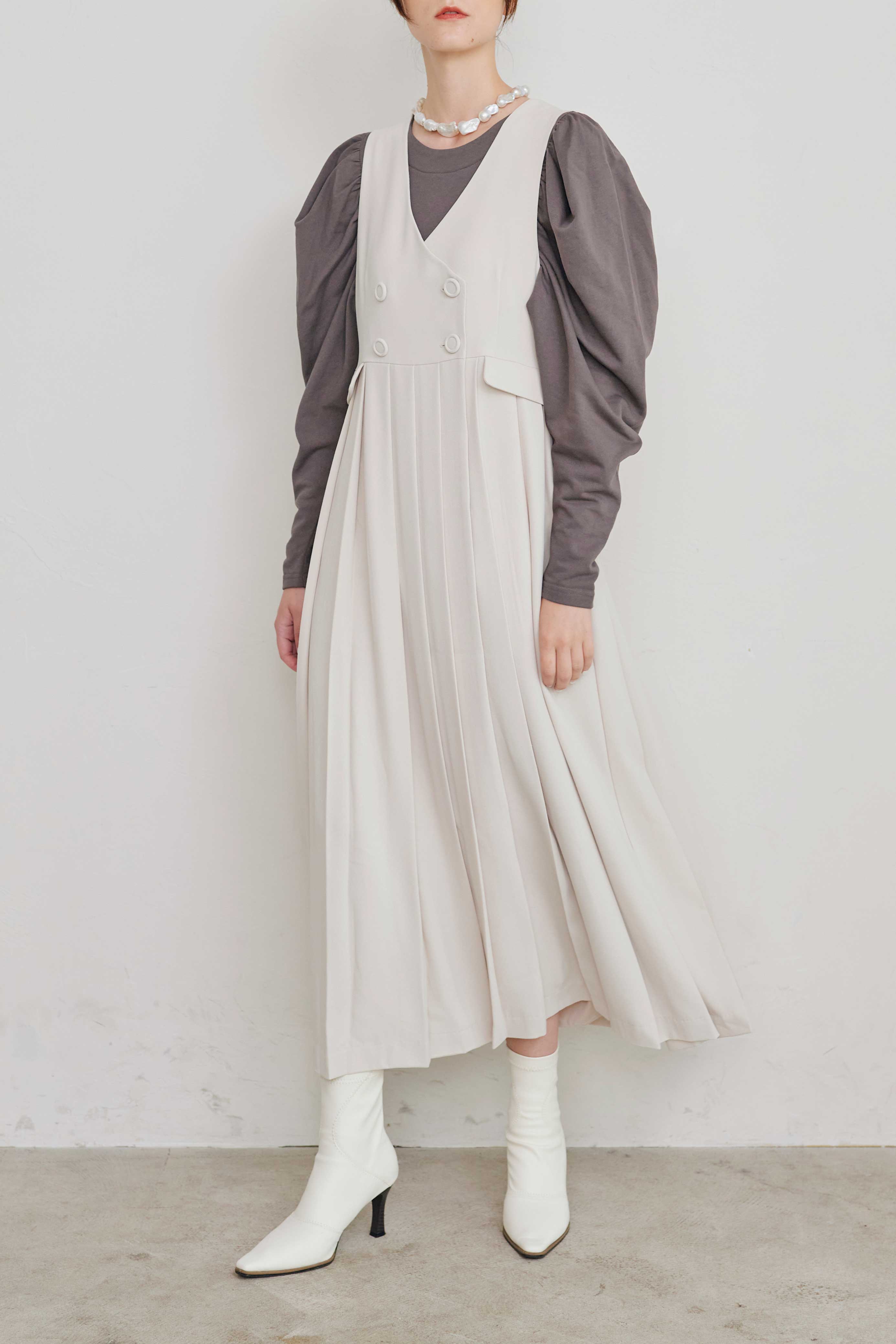 一見プリーツのジャンパースカートのようにも見える使い勝手抜群なアイテム。