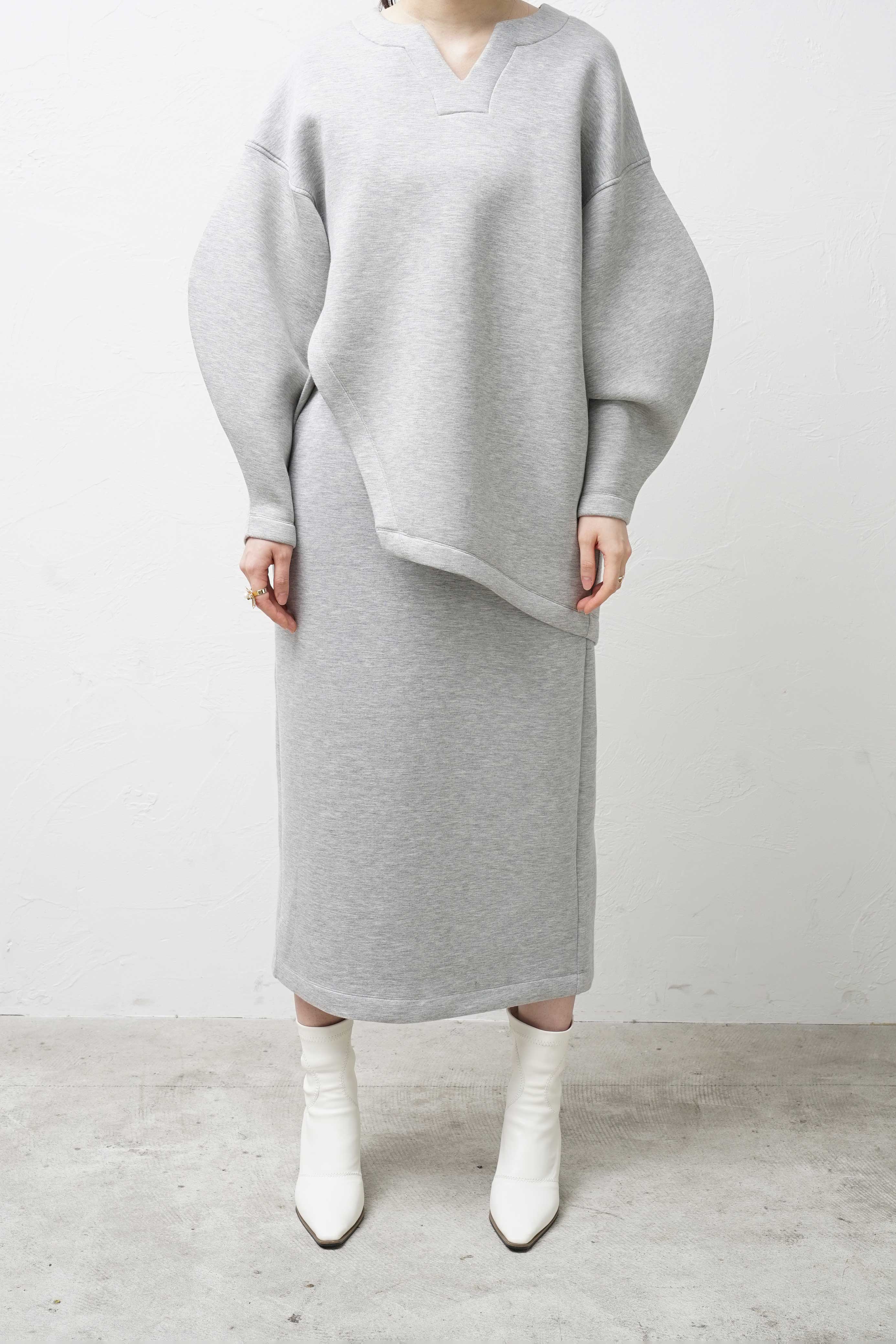 シンプルなだけにシルエットには特にこだわり、タイトながらも体のラインを拾うことがなく、着回し力抜群アイテムです。