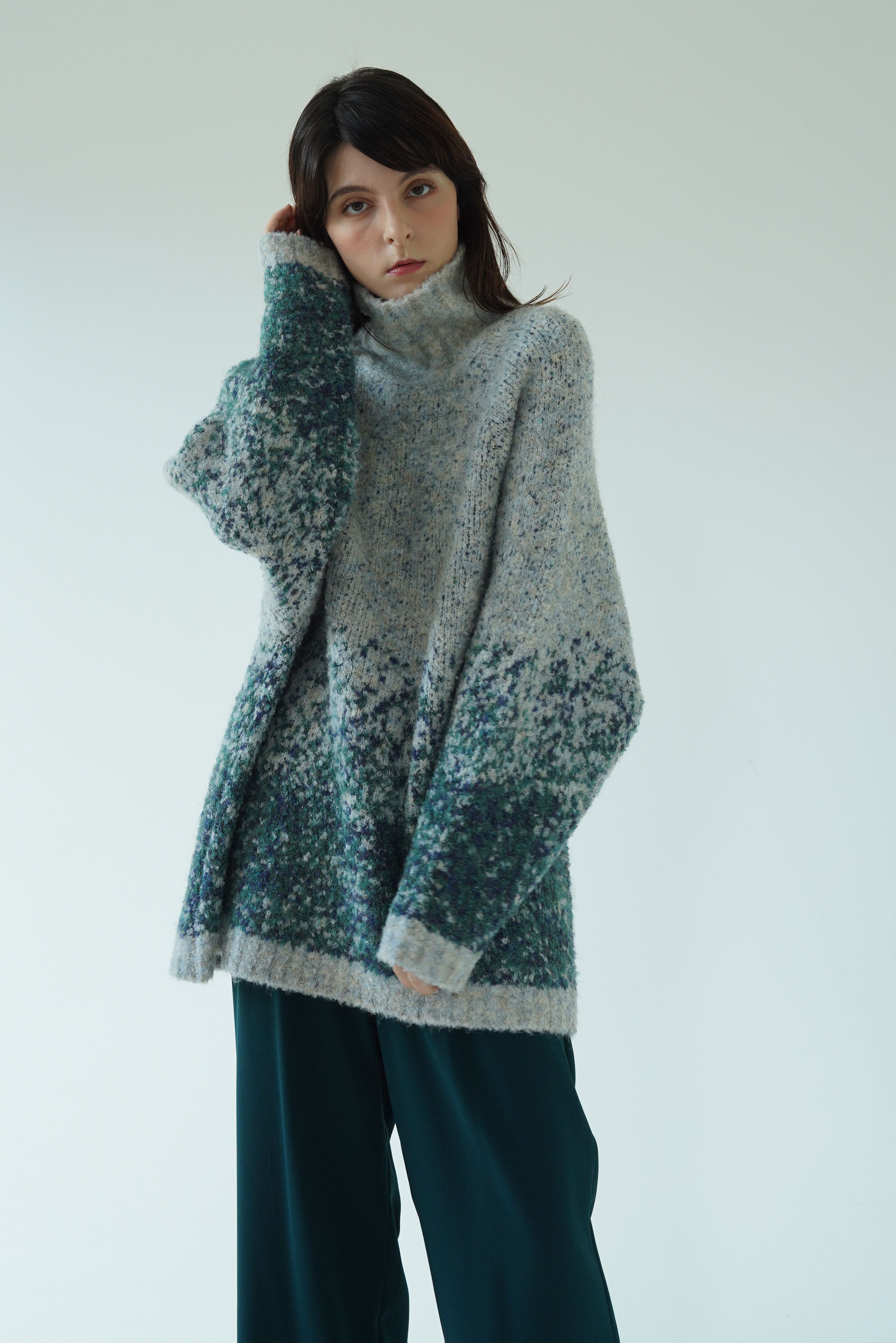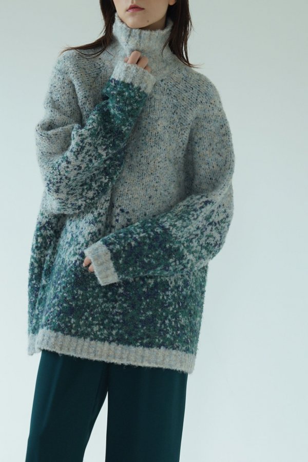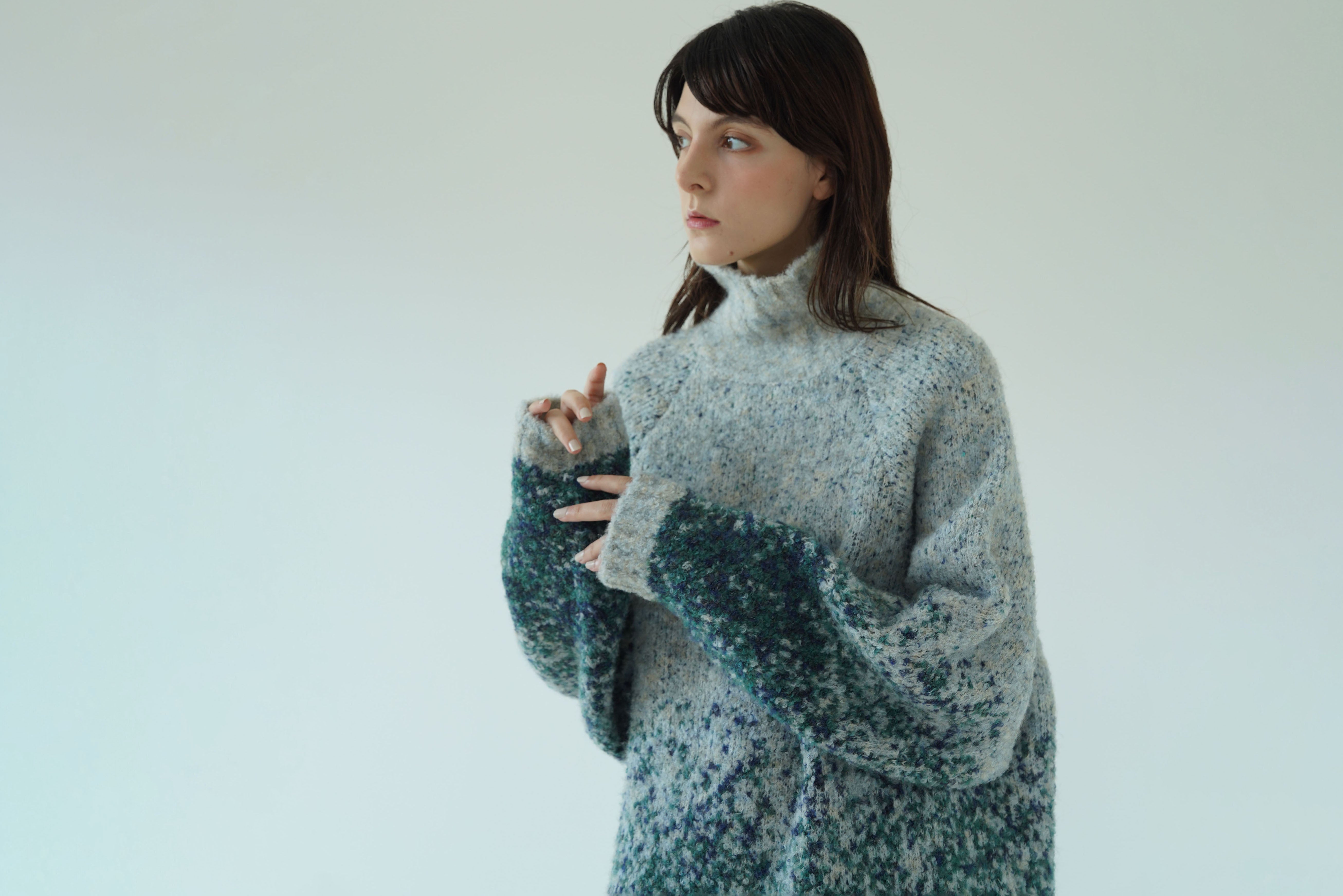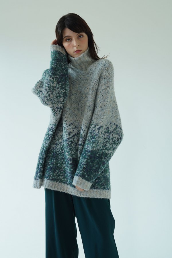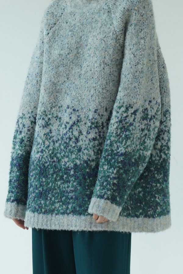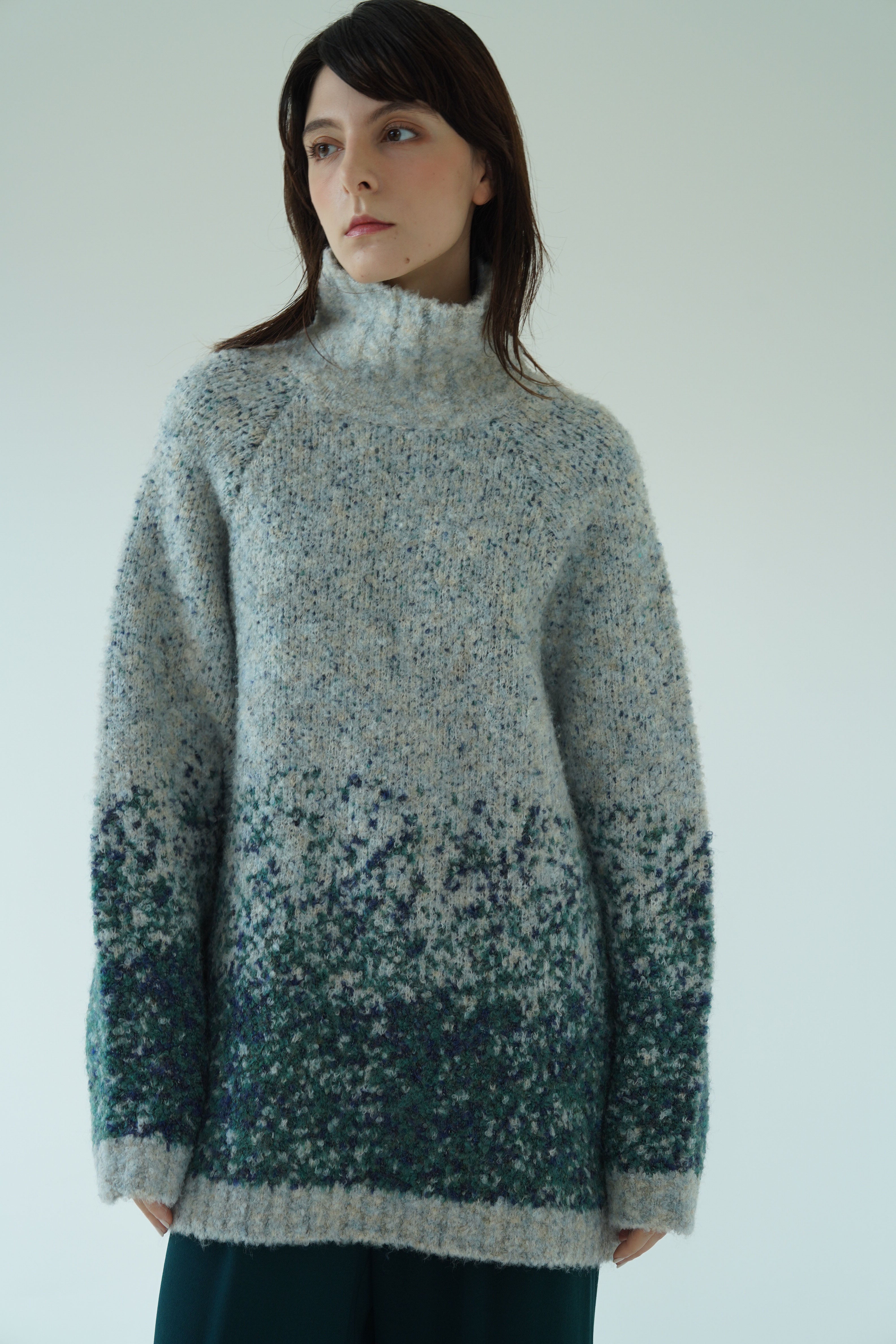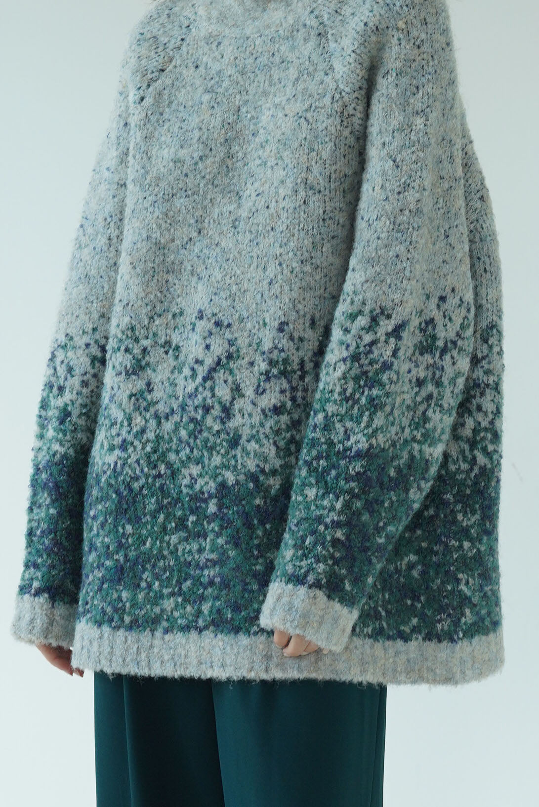 点描画のようなカラーグラデーションをジャカード編みの繊細なタッチで表現された配色カラーニット。
