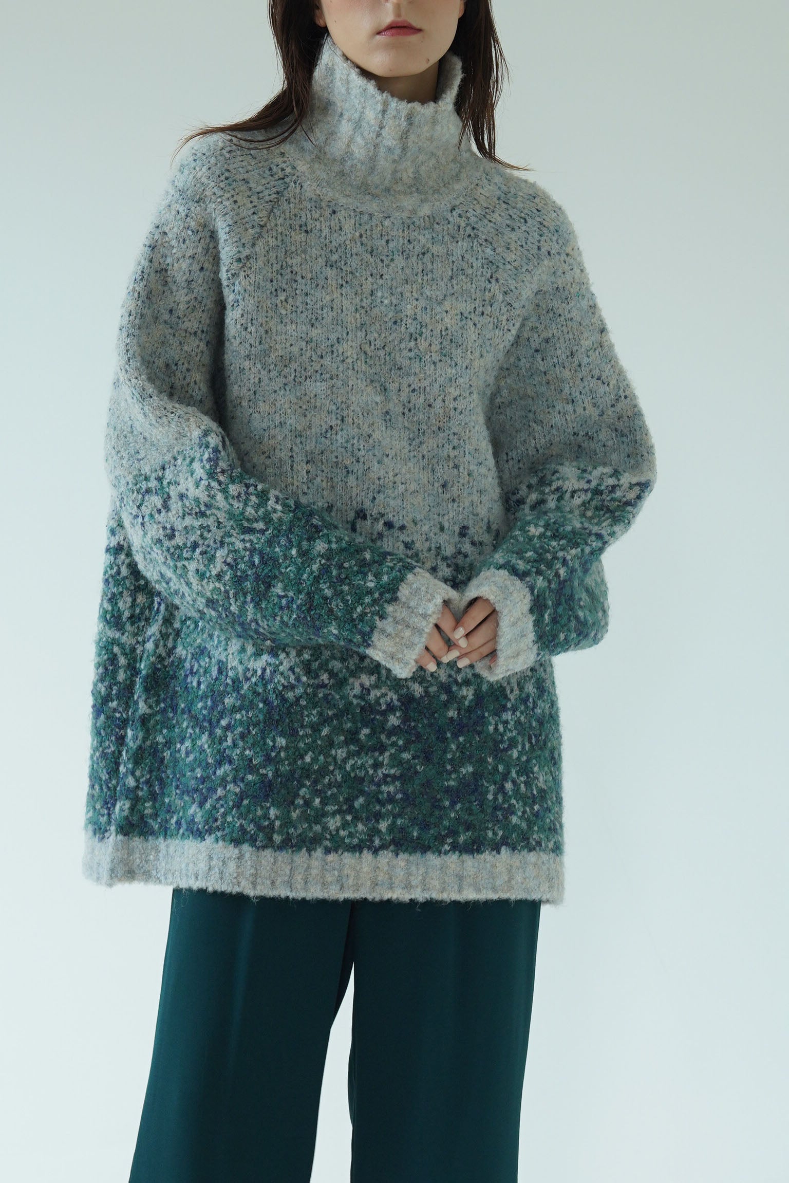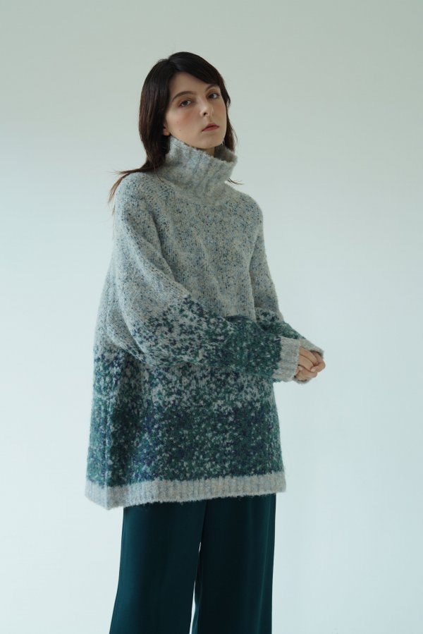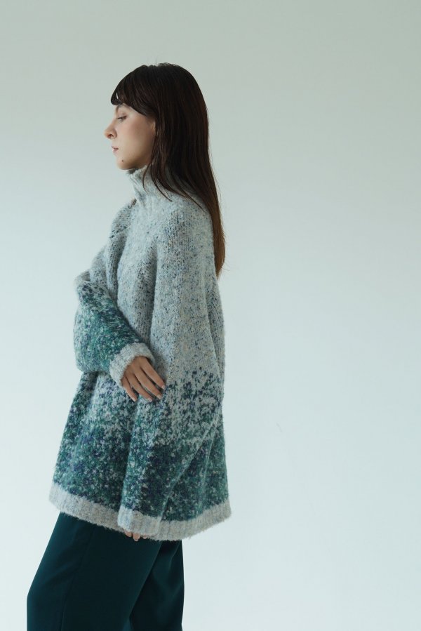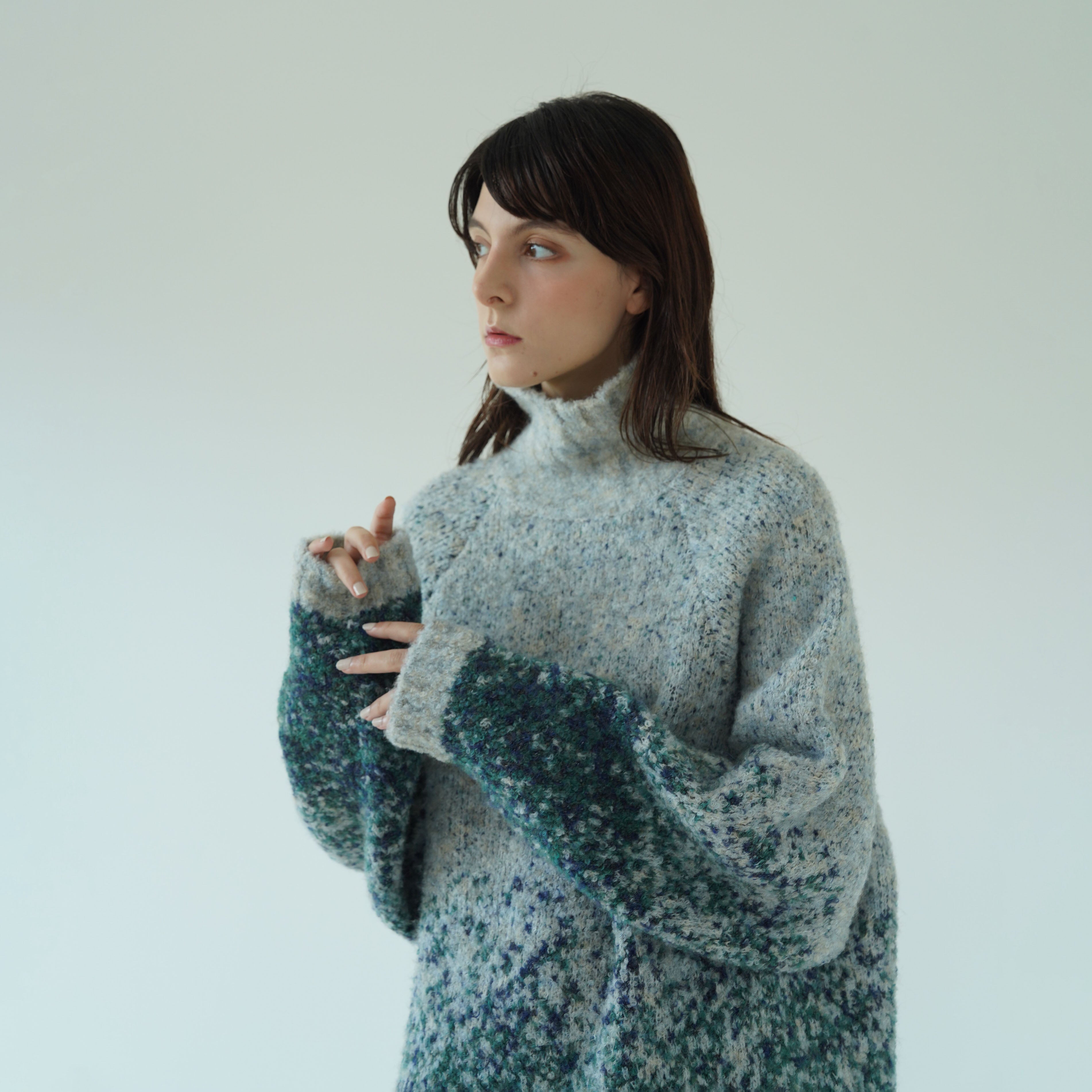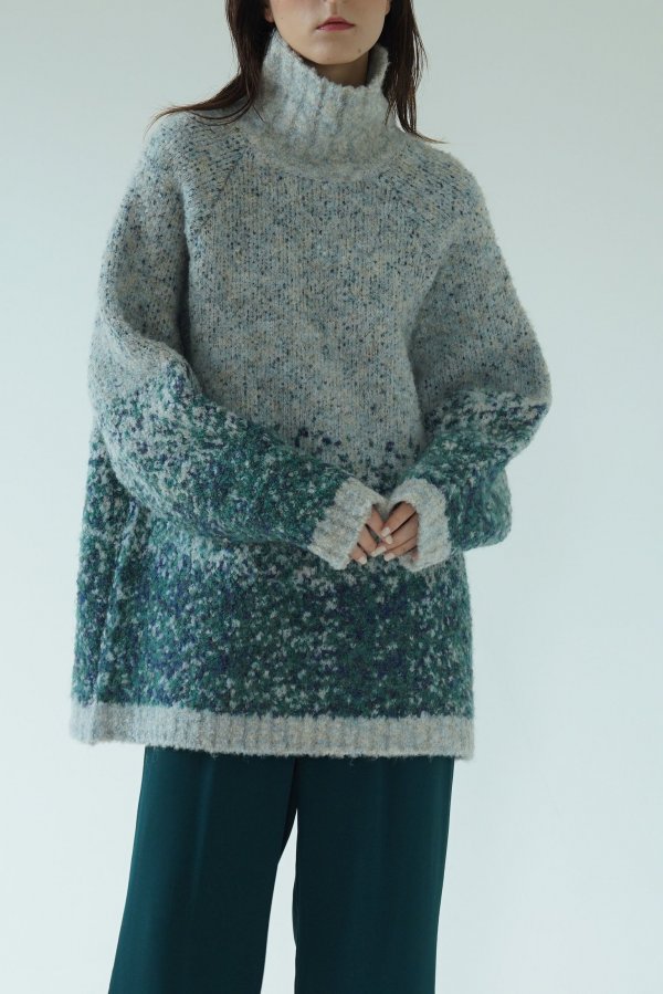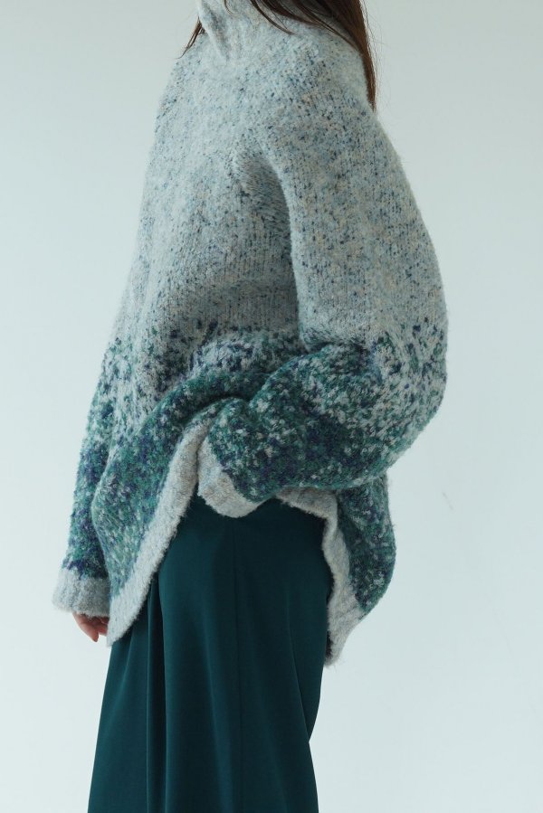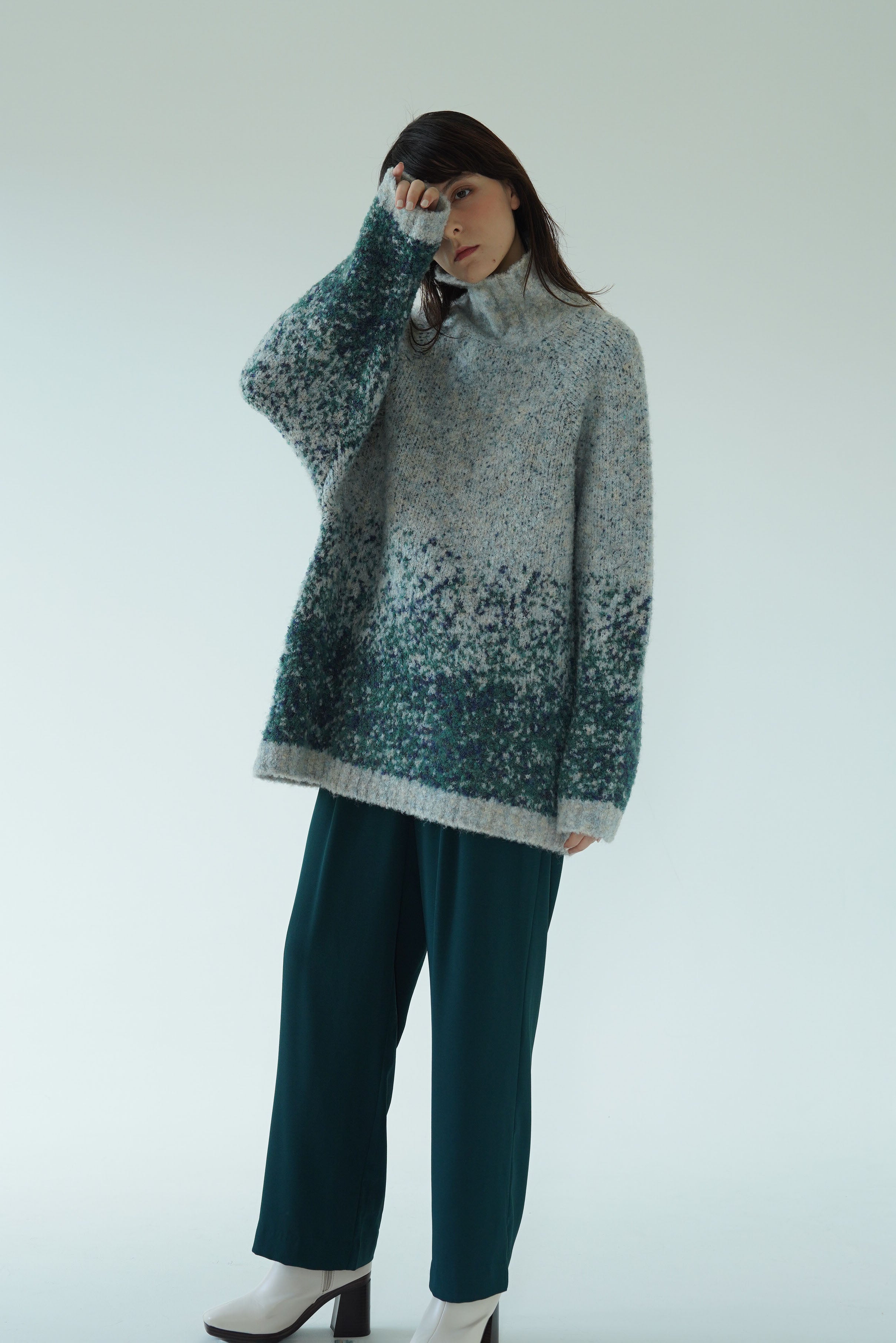 点描画のようなカラーグラデーションをジャカード編みの繊細なタッチで表現された配色カラーニット。