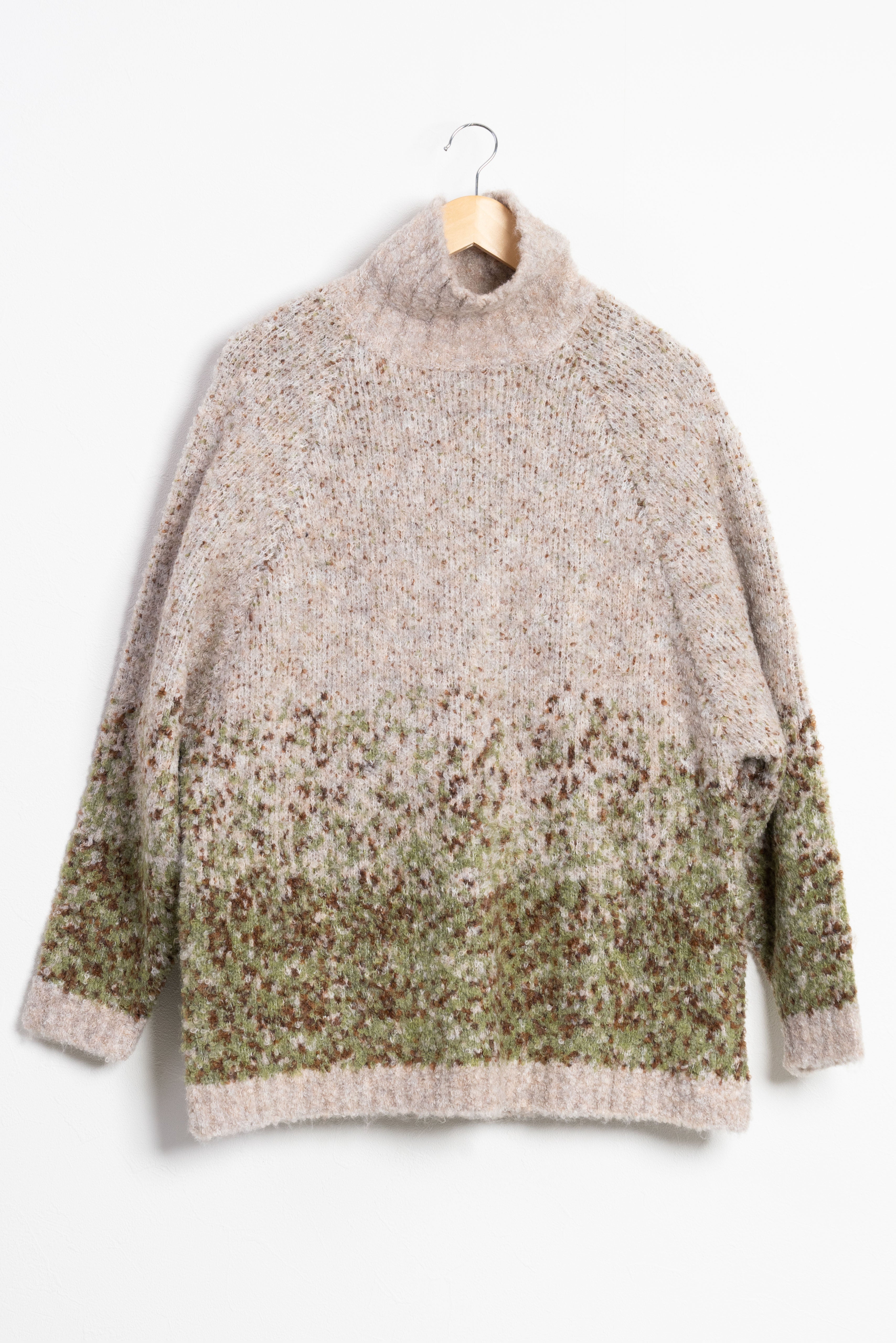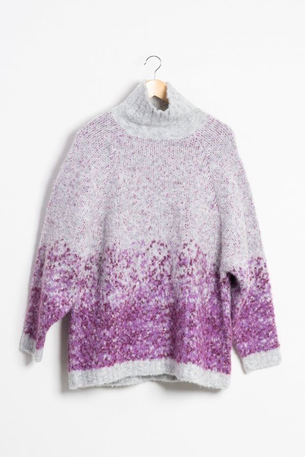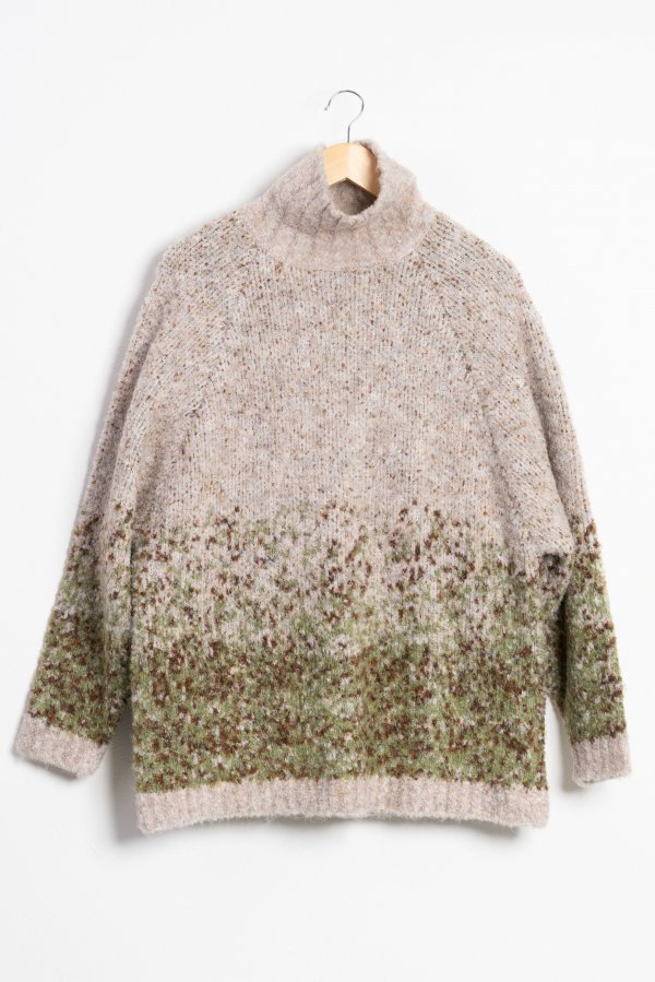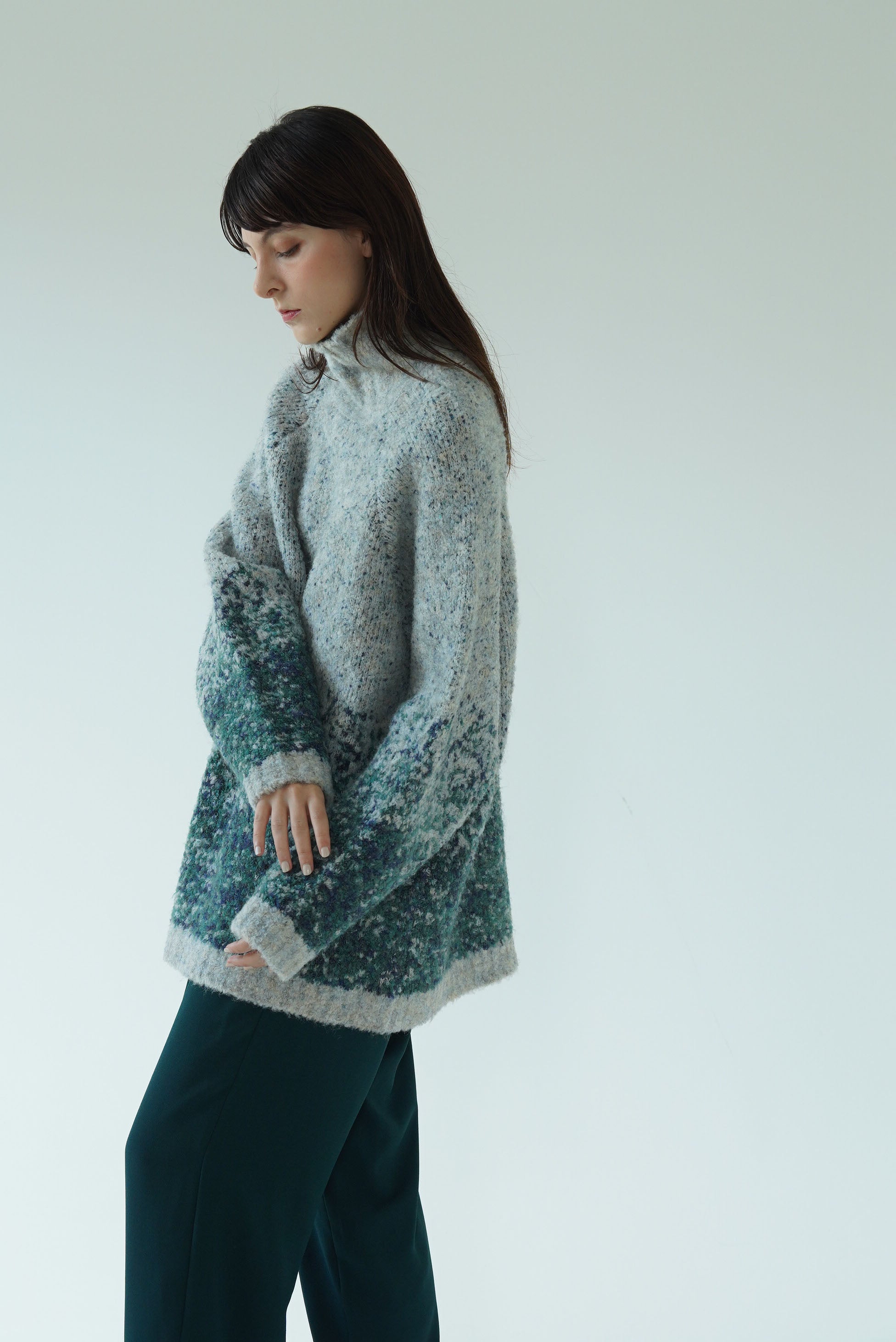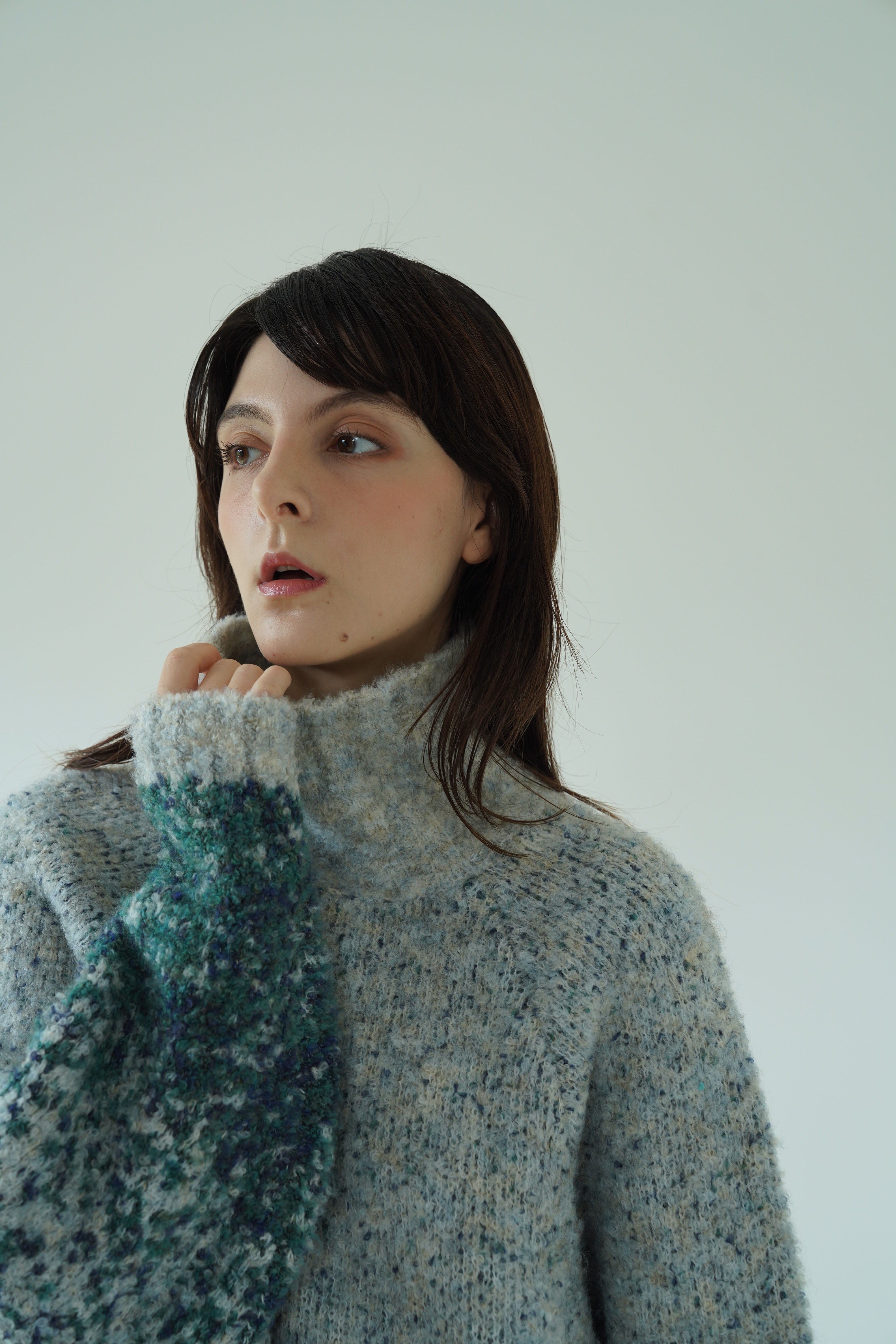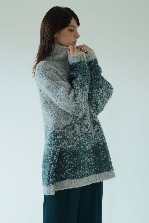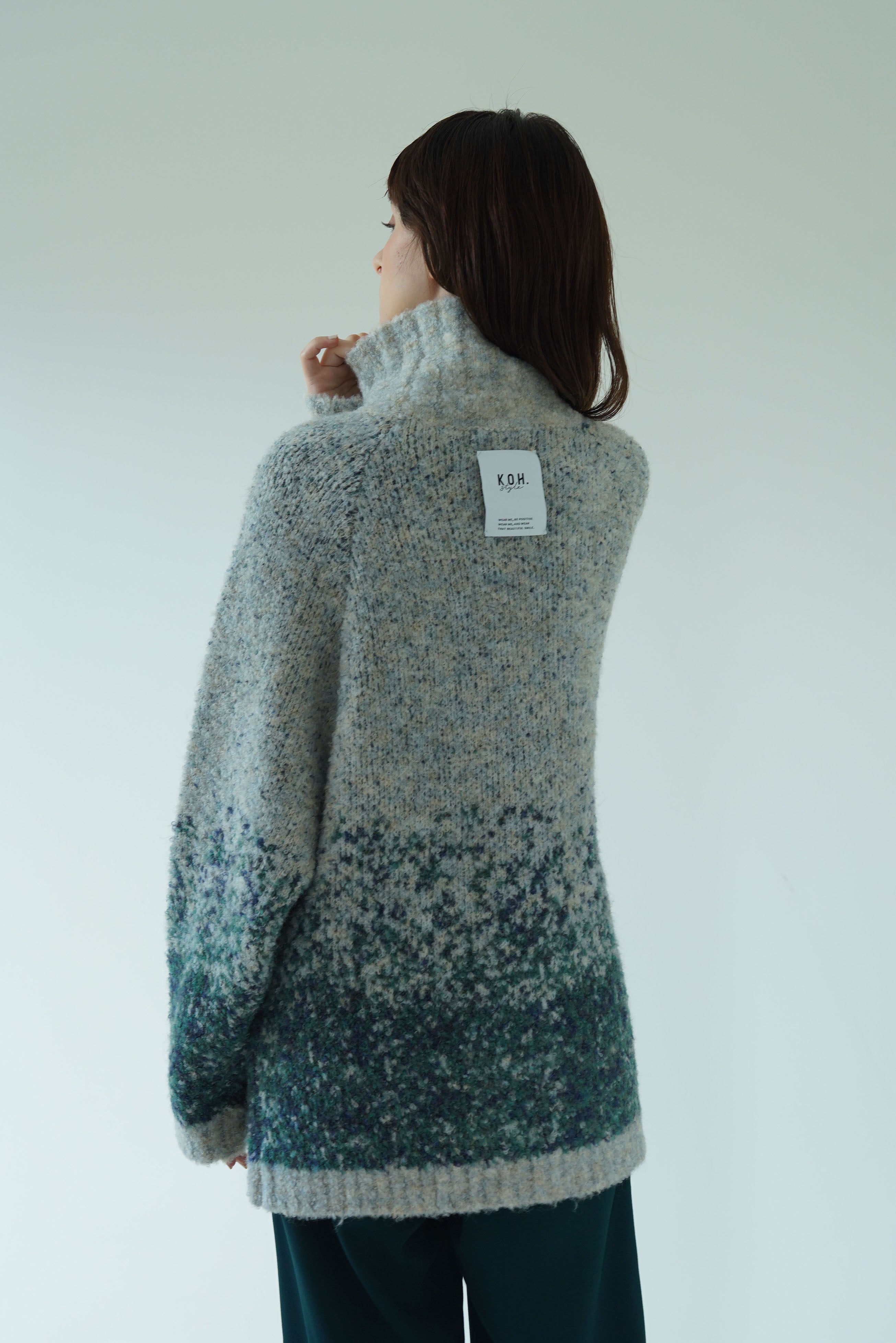 点描画のようなカラーグラデーションをジャカード編みの繊細なタッチで表現された配色カラーニット。