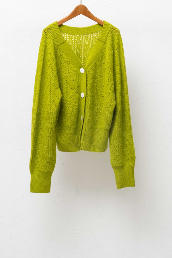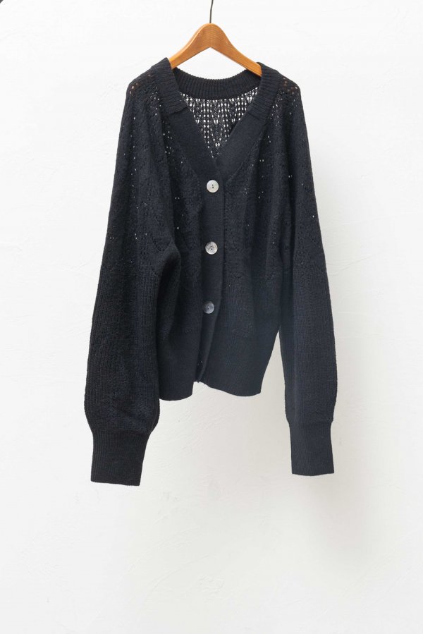 求心編みでレースのような透け感のある編み地の2WAYカーディガン。