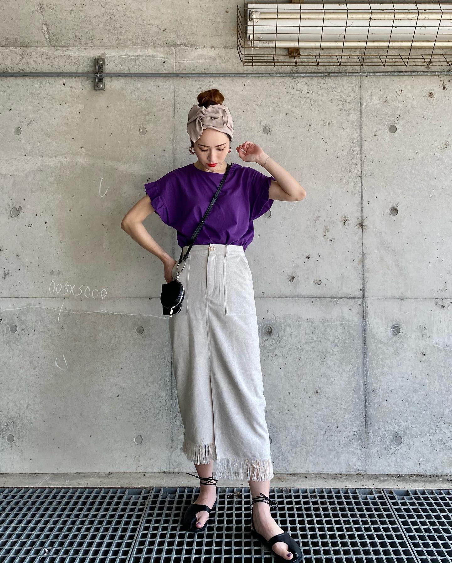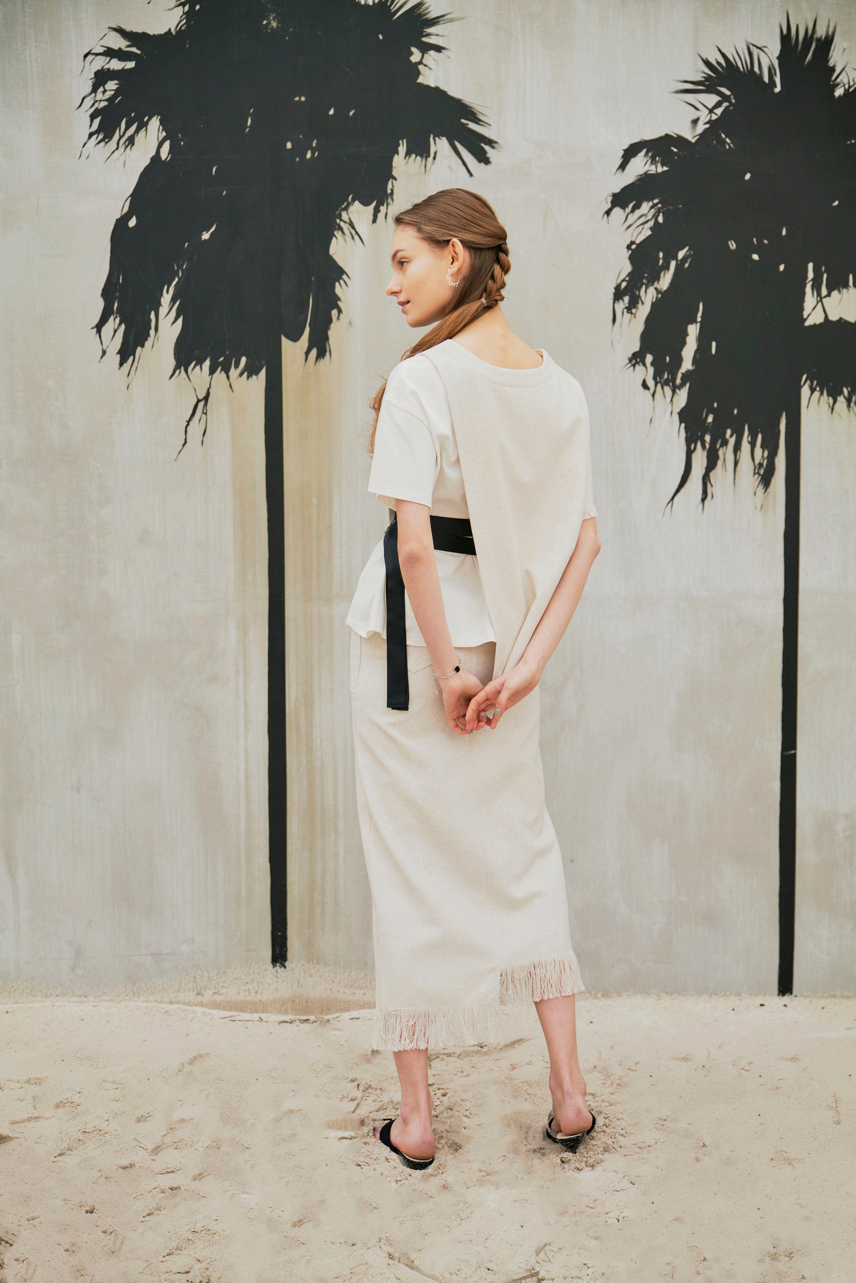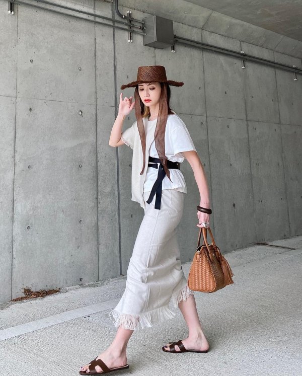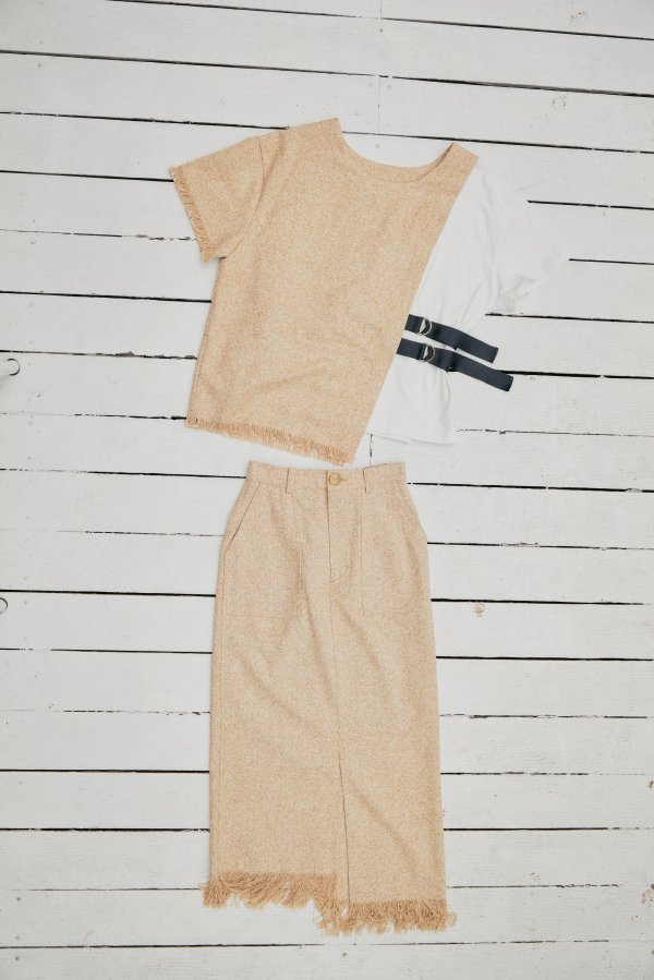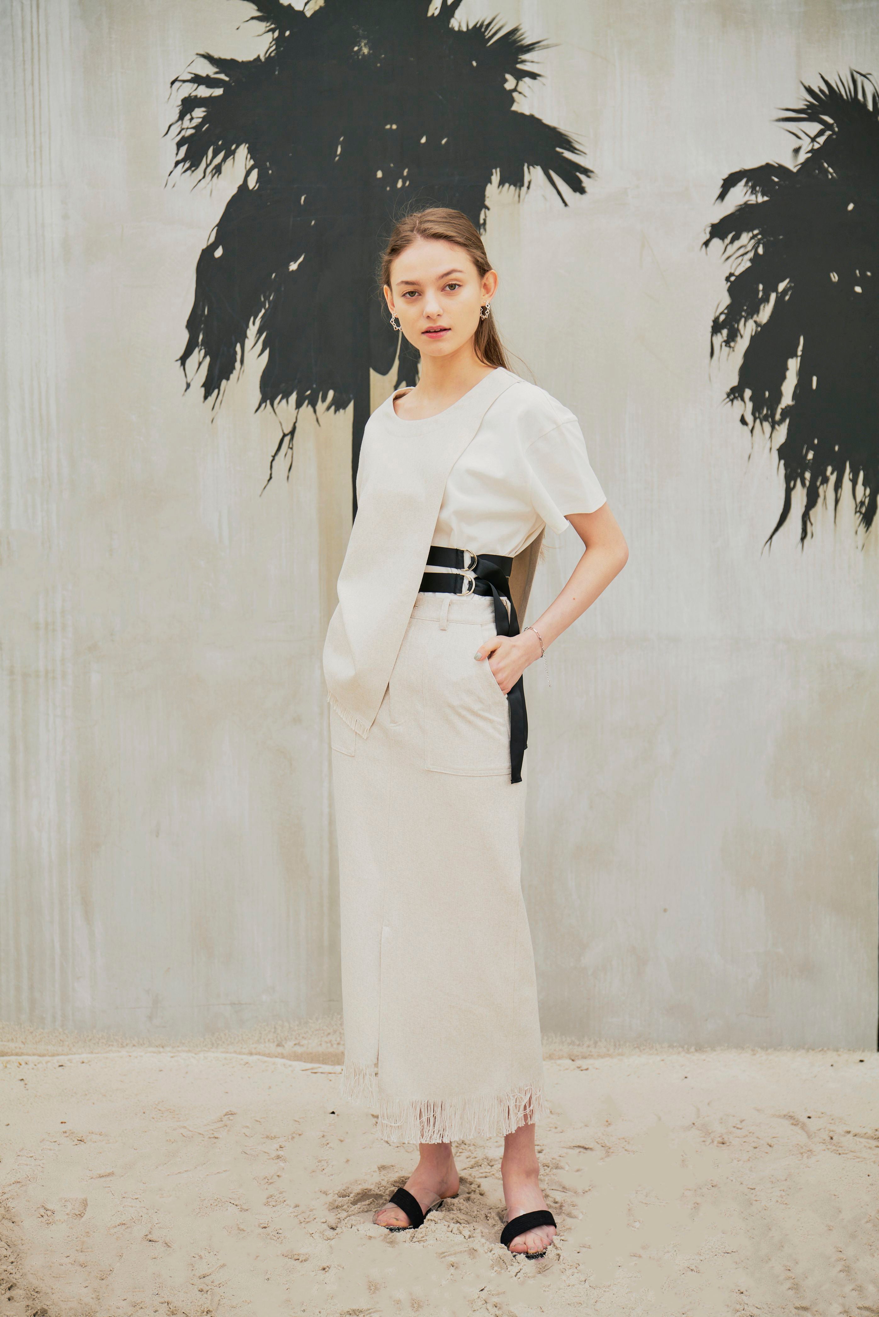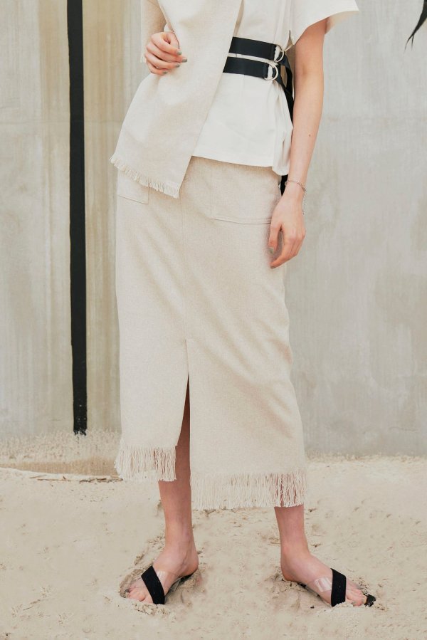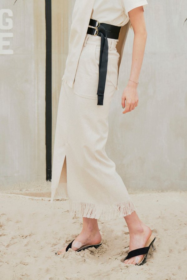 夏らしい涼し気なリネンライクのタイトスカート。