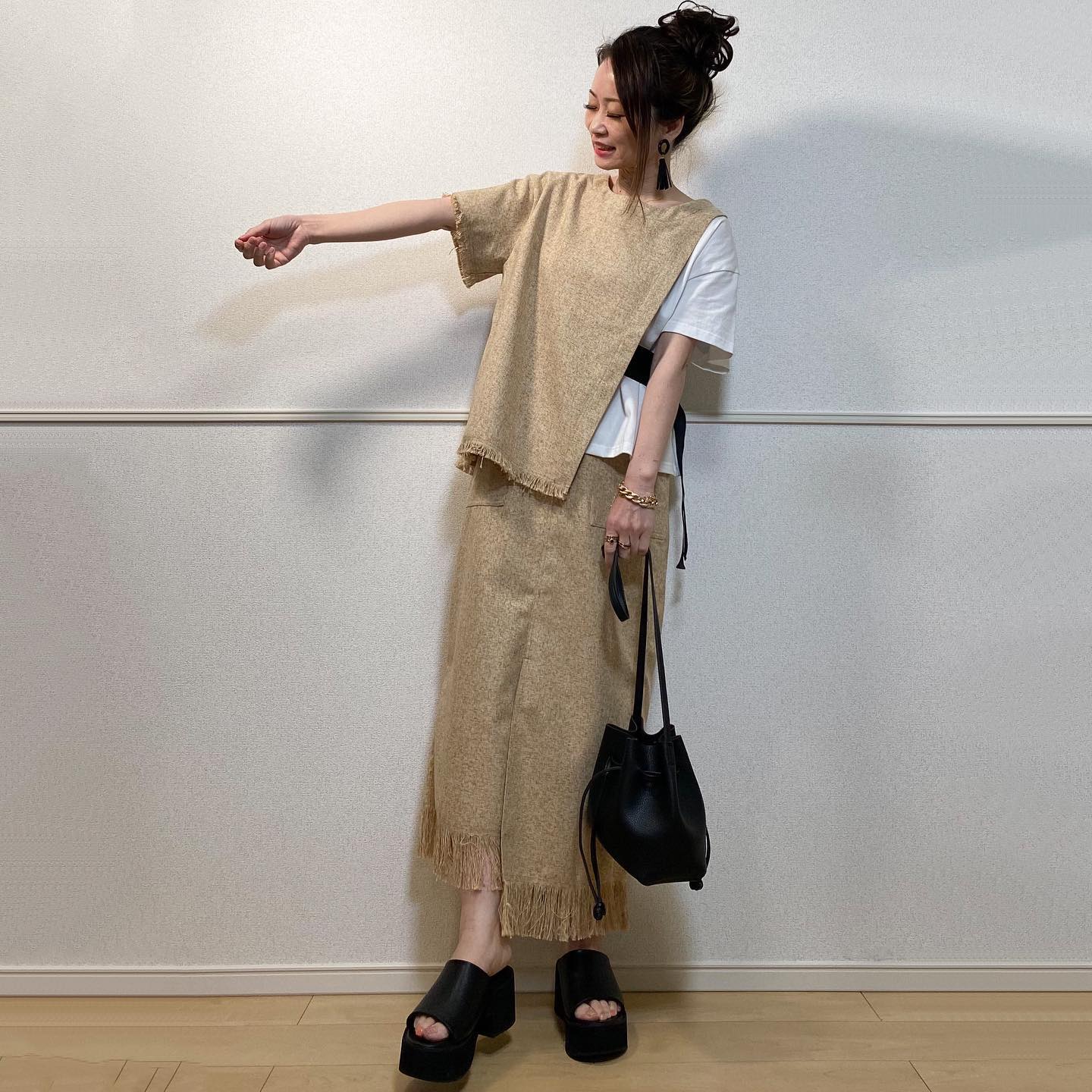 LINEN LIKE DOCKING TOPSとセットアップで着ていただけると