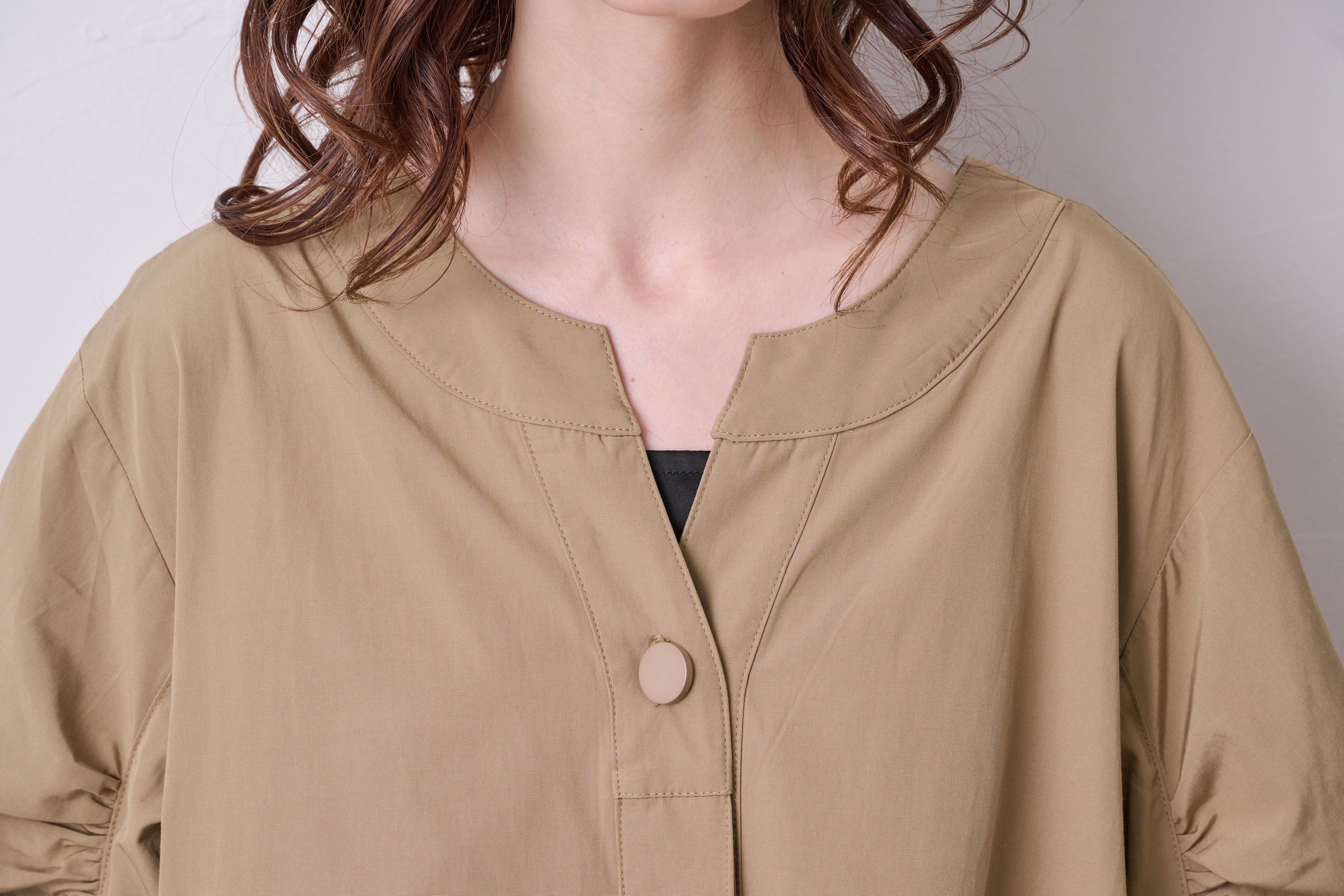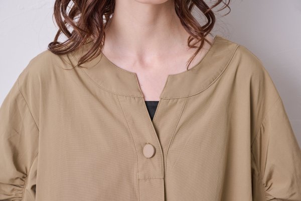 前立てはボタンが隠れる比翼仕様なので、カジュアル感のある素材ながらも洗練されたフォーマルな印象。