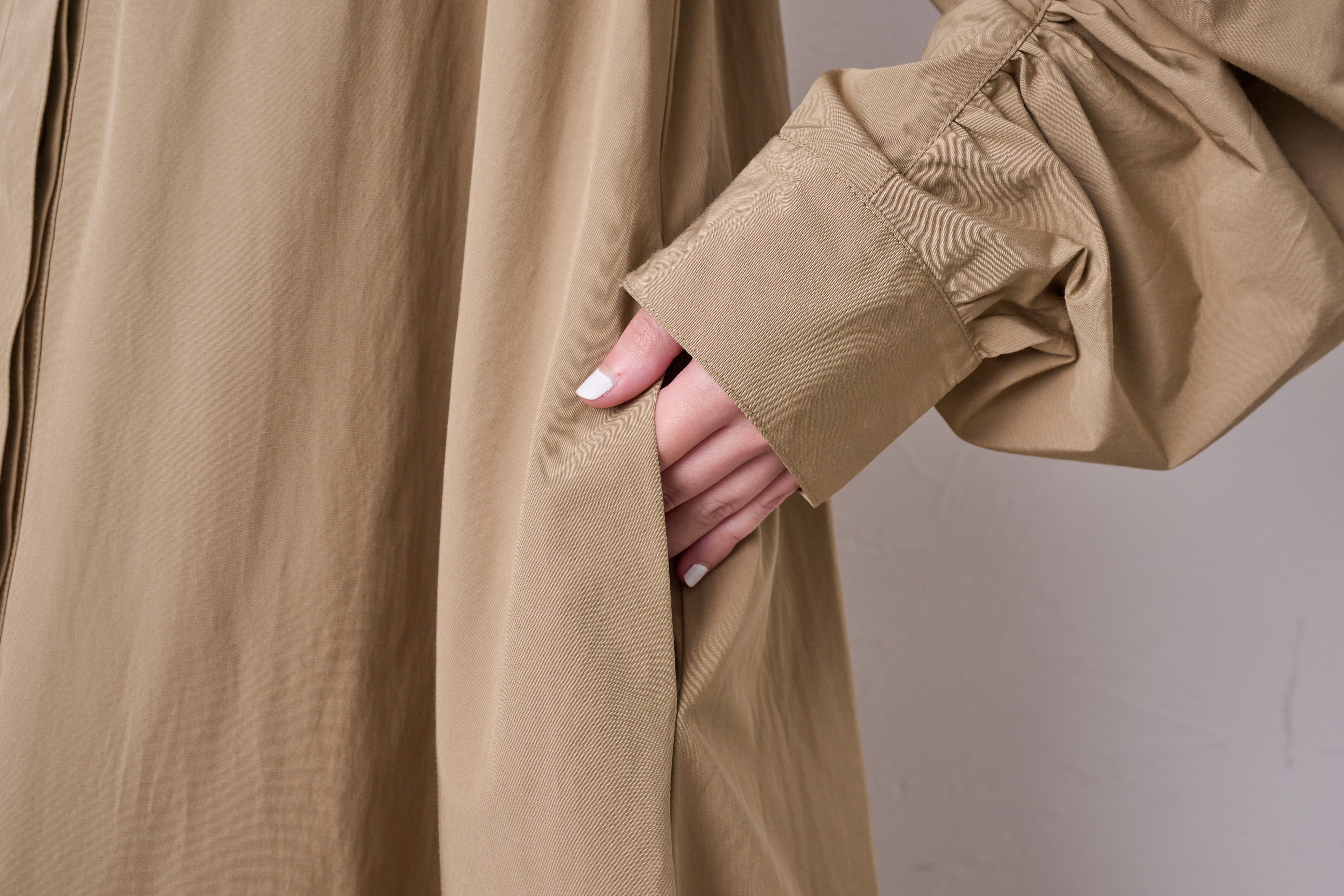 ヨーク切り替えとセンターバックにボックスプリーツが入っているので歩くたび分量感を楽しめる、