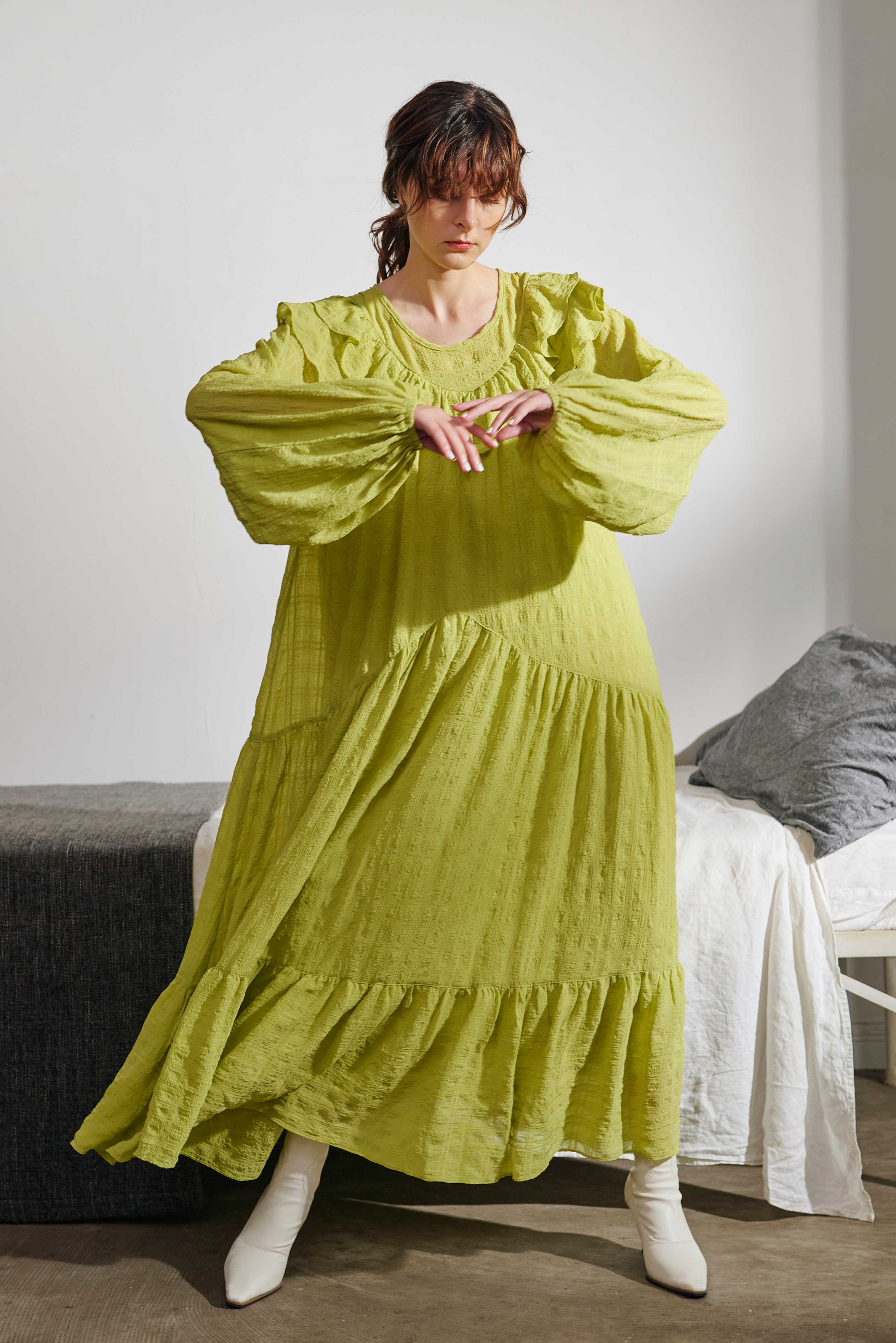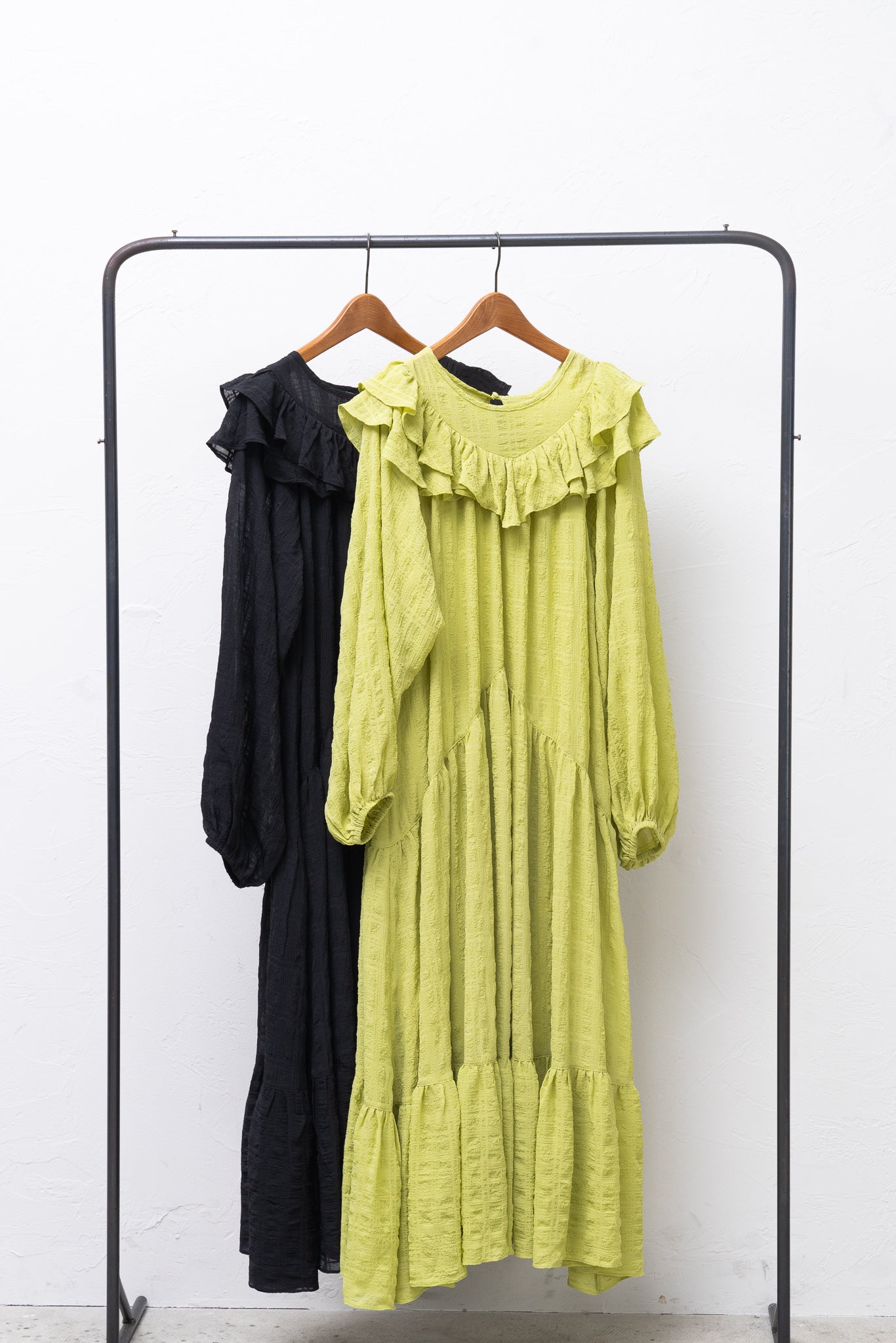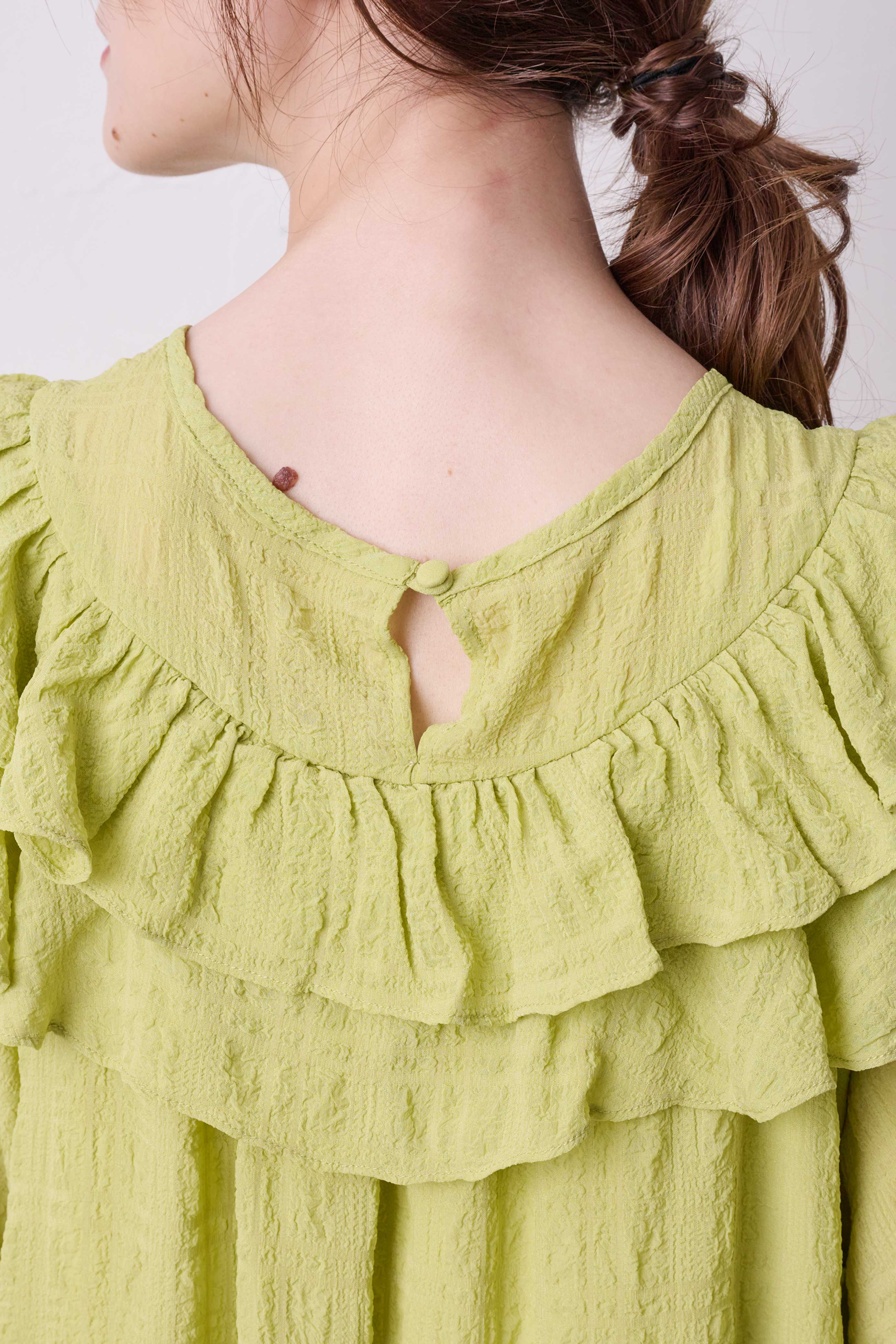 表面変化のある生地を使用したシフォンティアードワンピース。