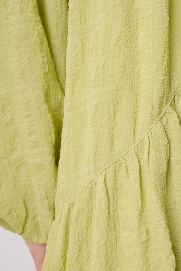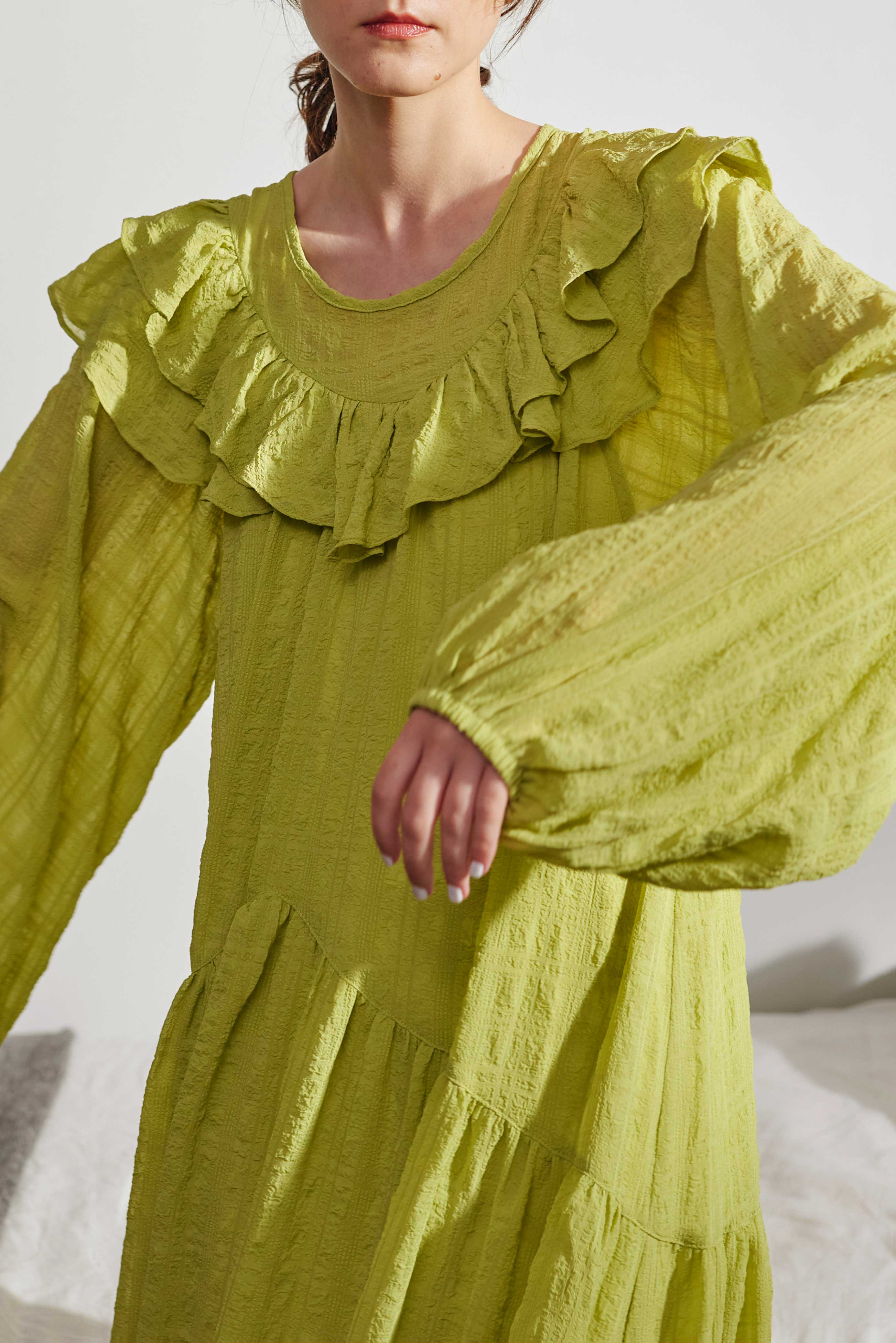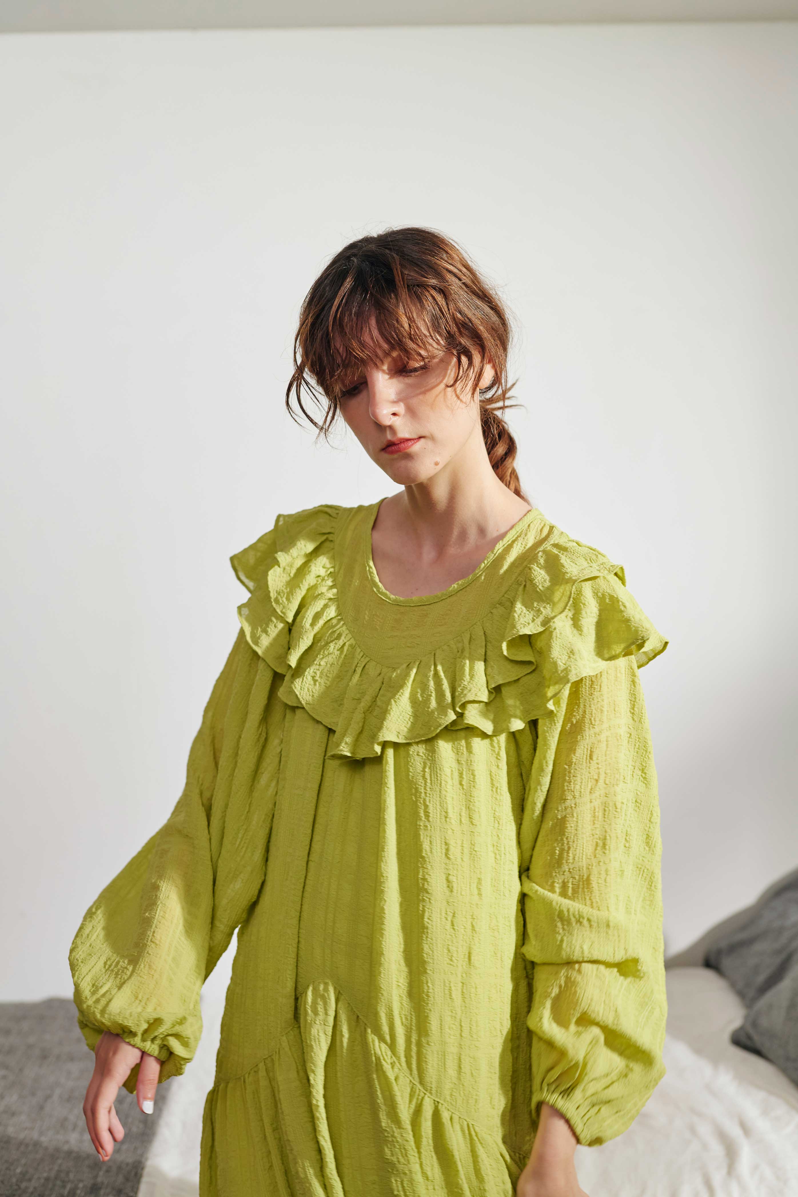 表面変化のある生地を使用したシフォンティアードワンピース。