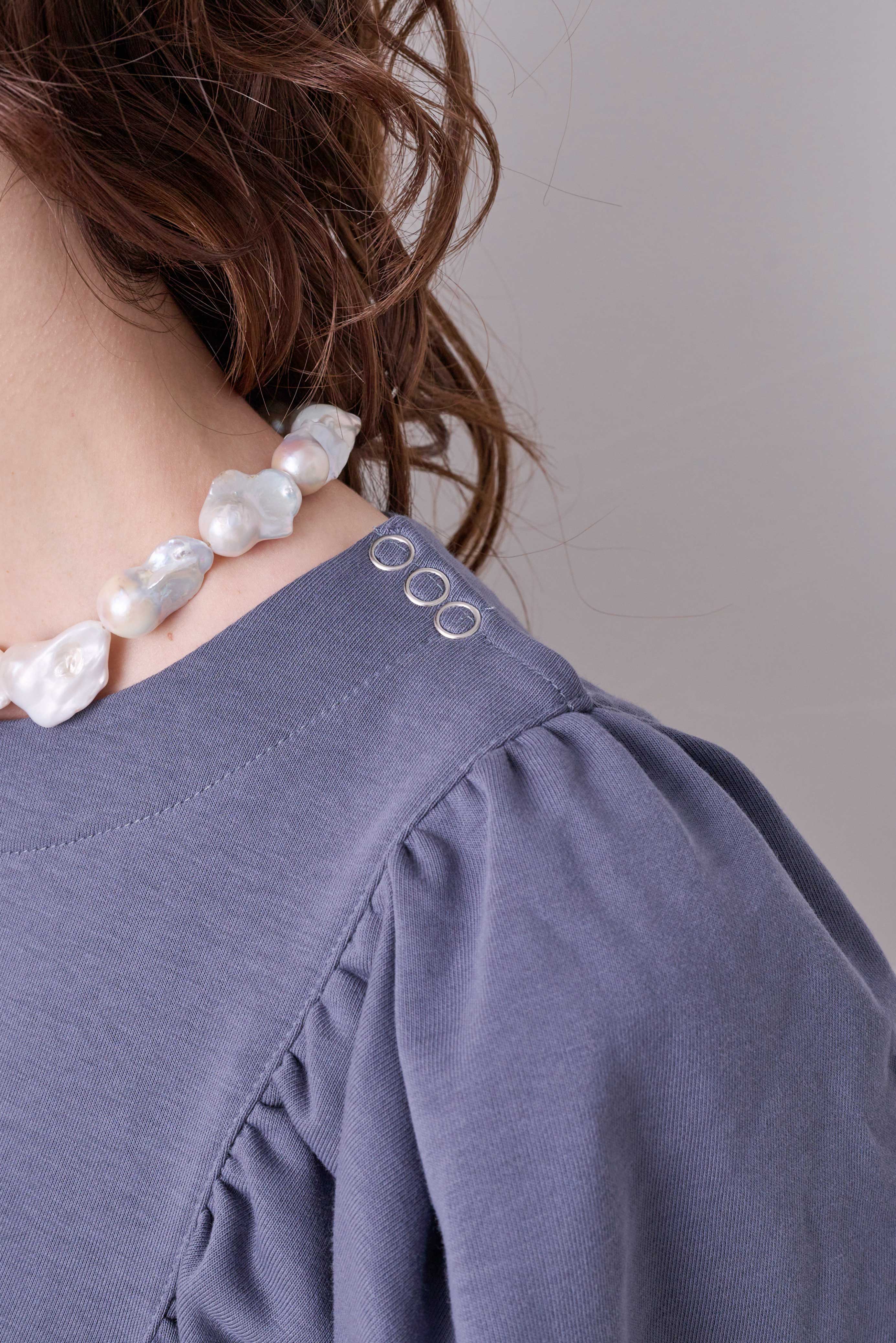 ネックラインは首が細く長く綺麗に見えるよくばりなラインにこだわり、つまりすぎず、大人らしい印象になるよう作りました。