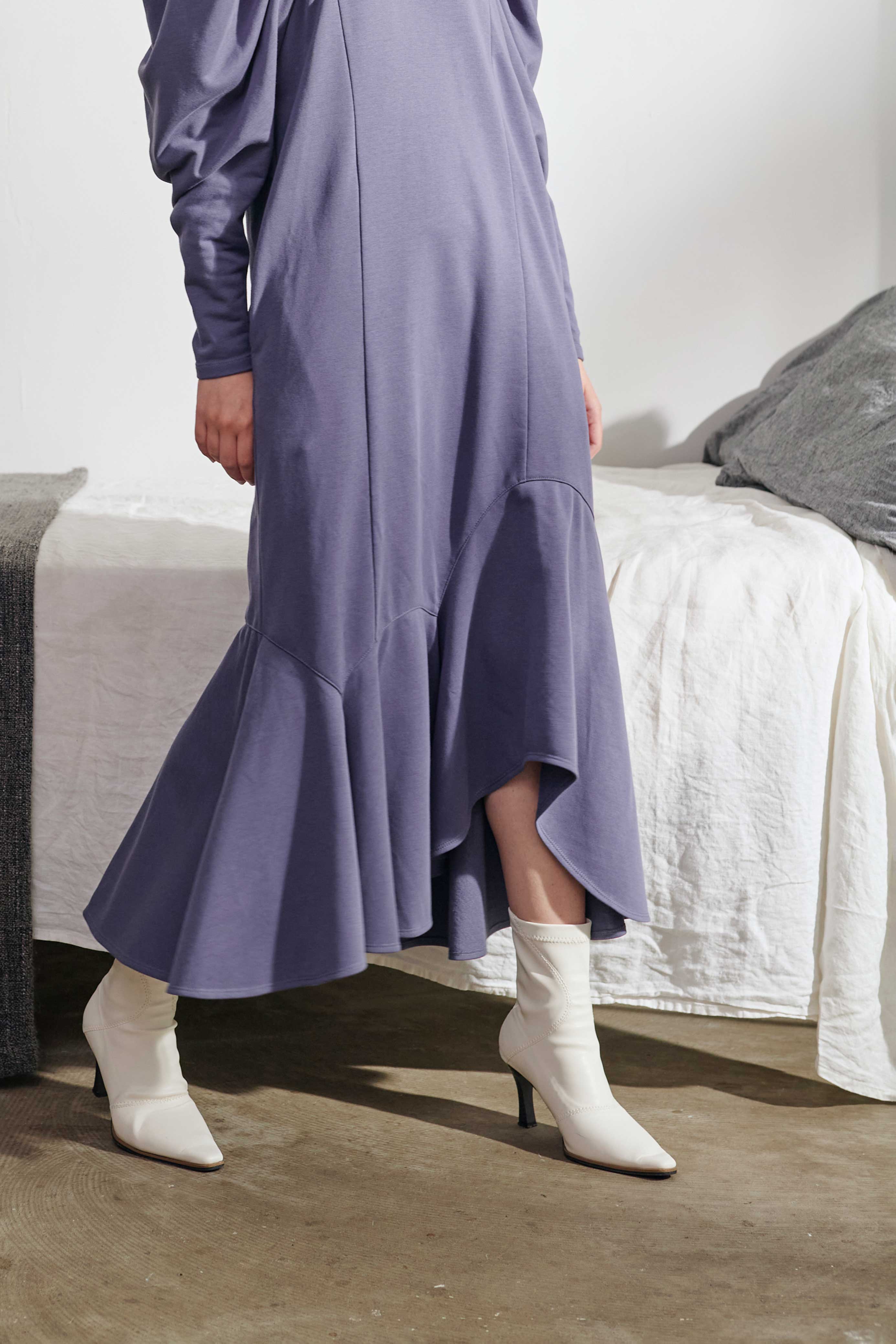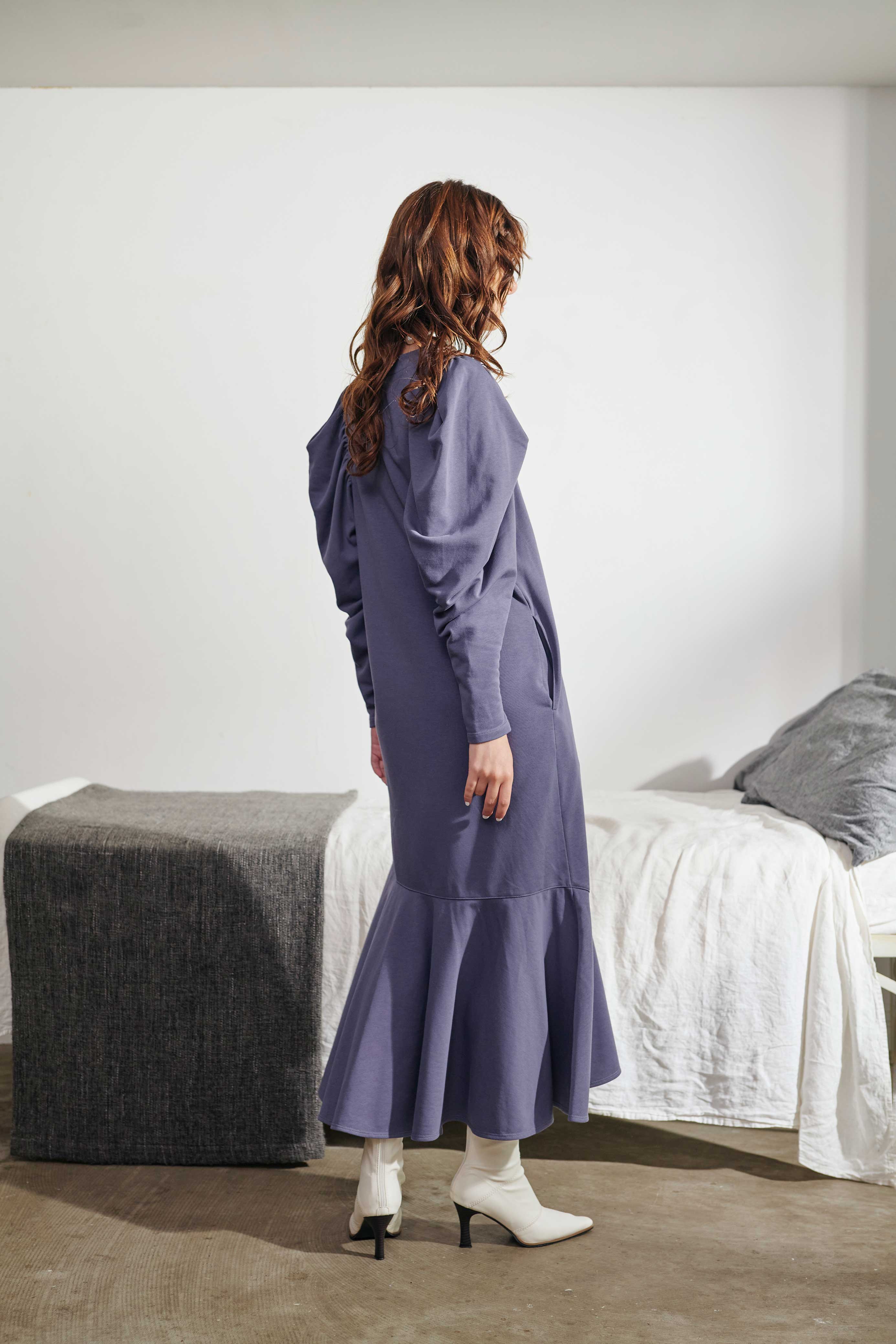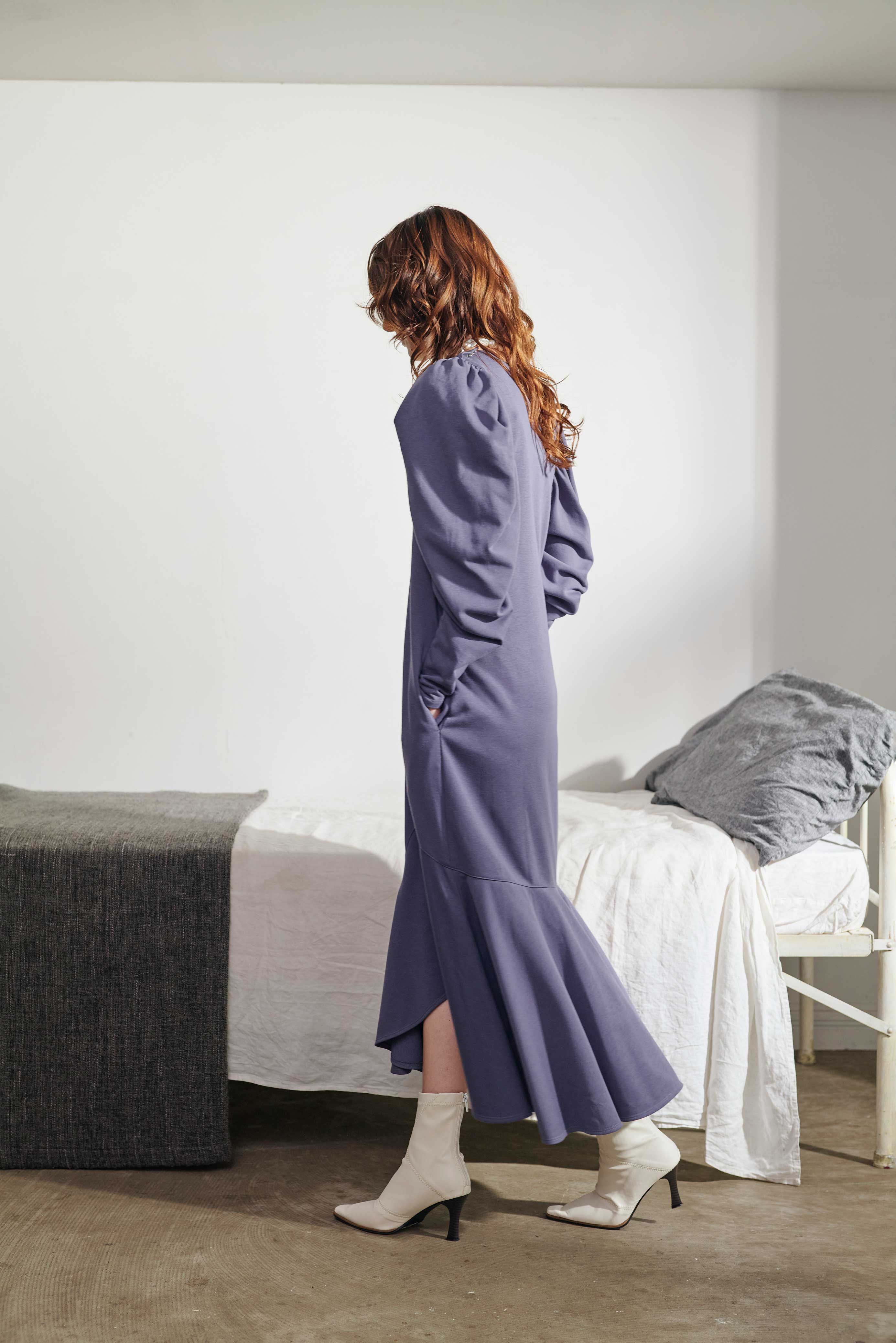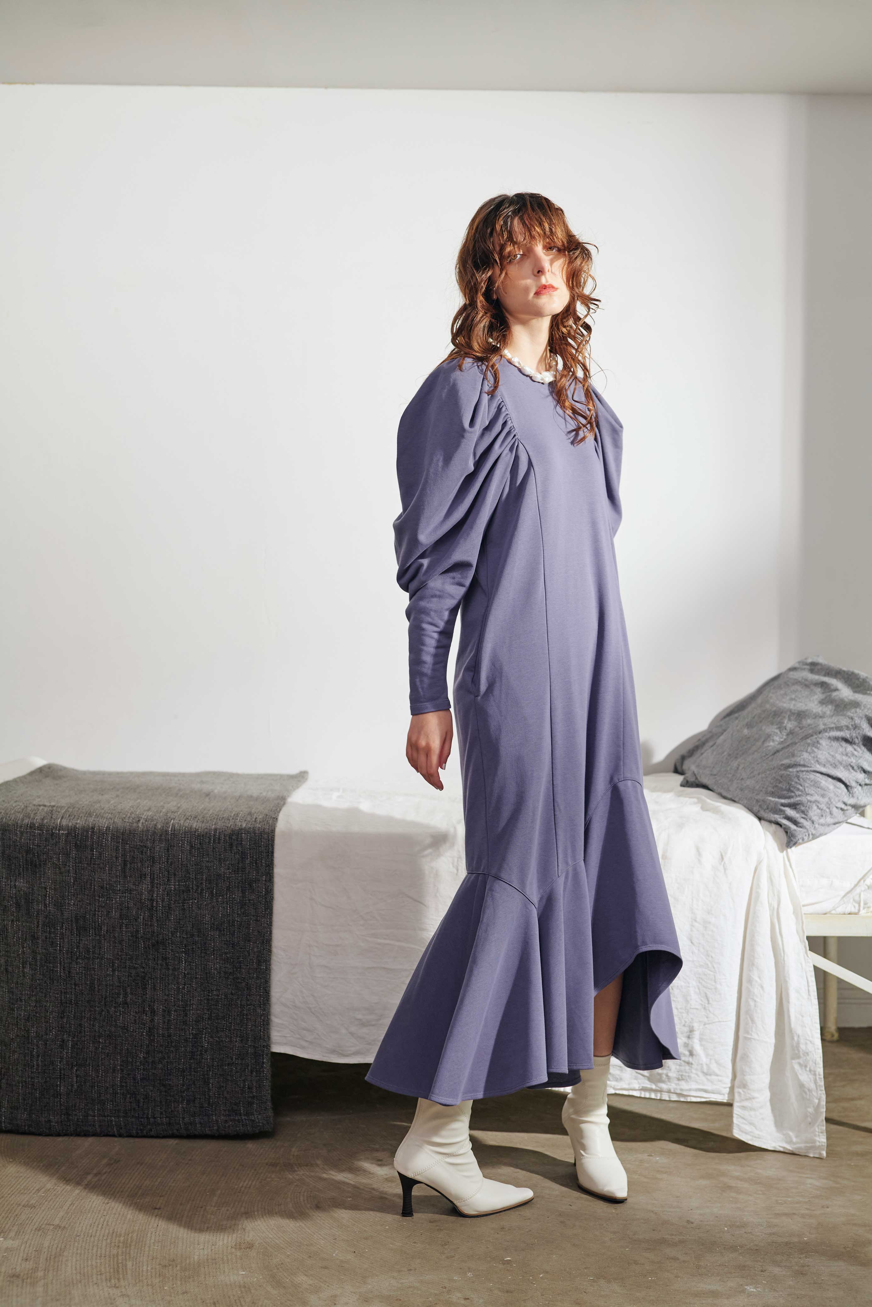 今季、KOH.styleが多く取り入れている袖コンシャス&変形マーメイドシルエットのトレンド感満載なワンピース。