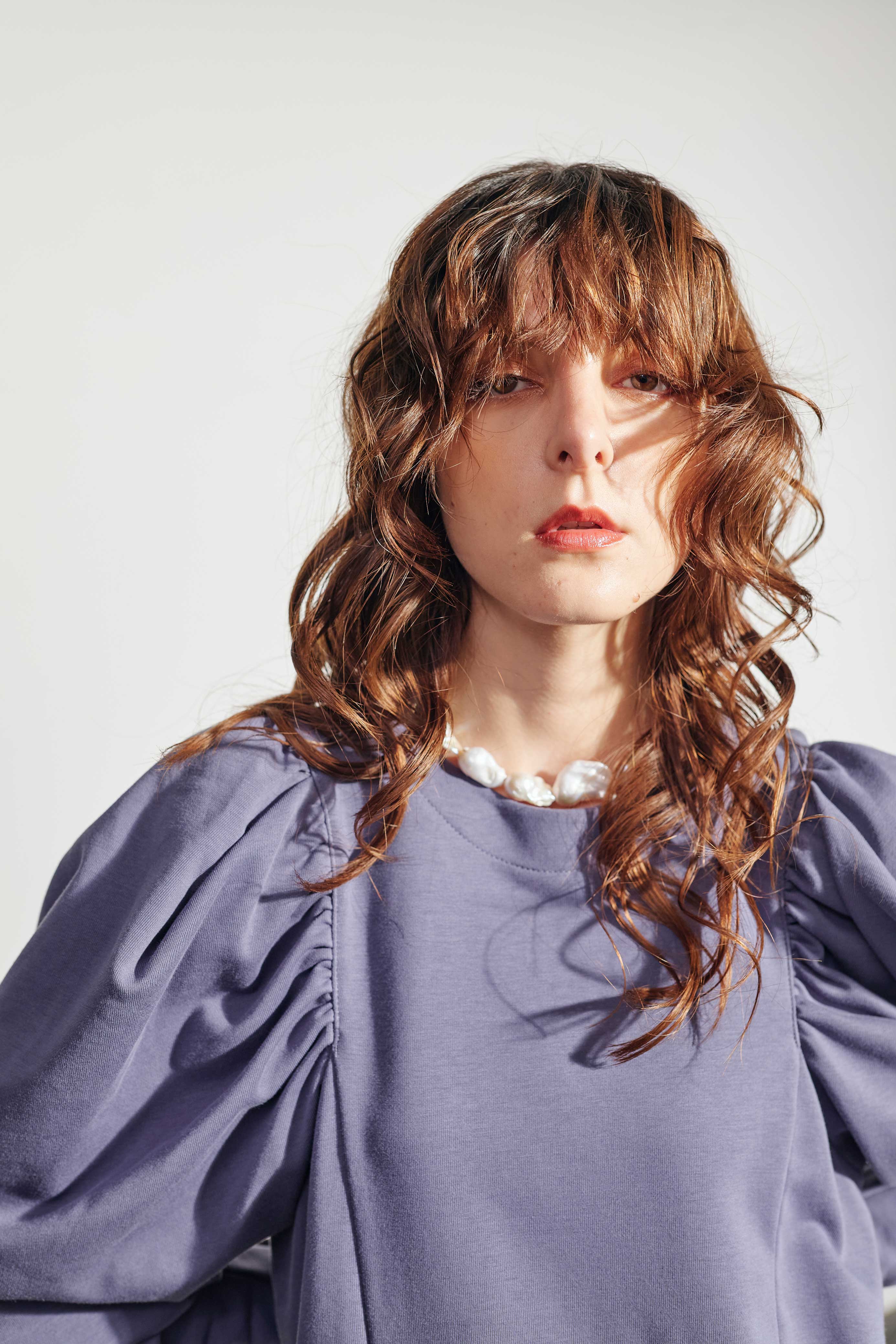 袖はマトンスリーブで身幅が狭く見えるようなパターンにしているのでどんな方でも華奢に見えちゃう嬉しいアイテム。