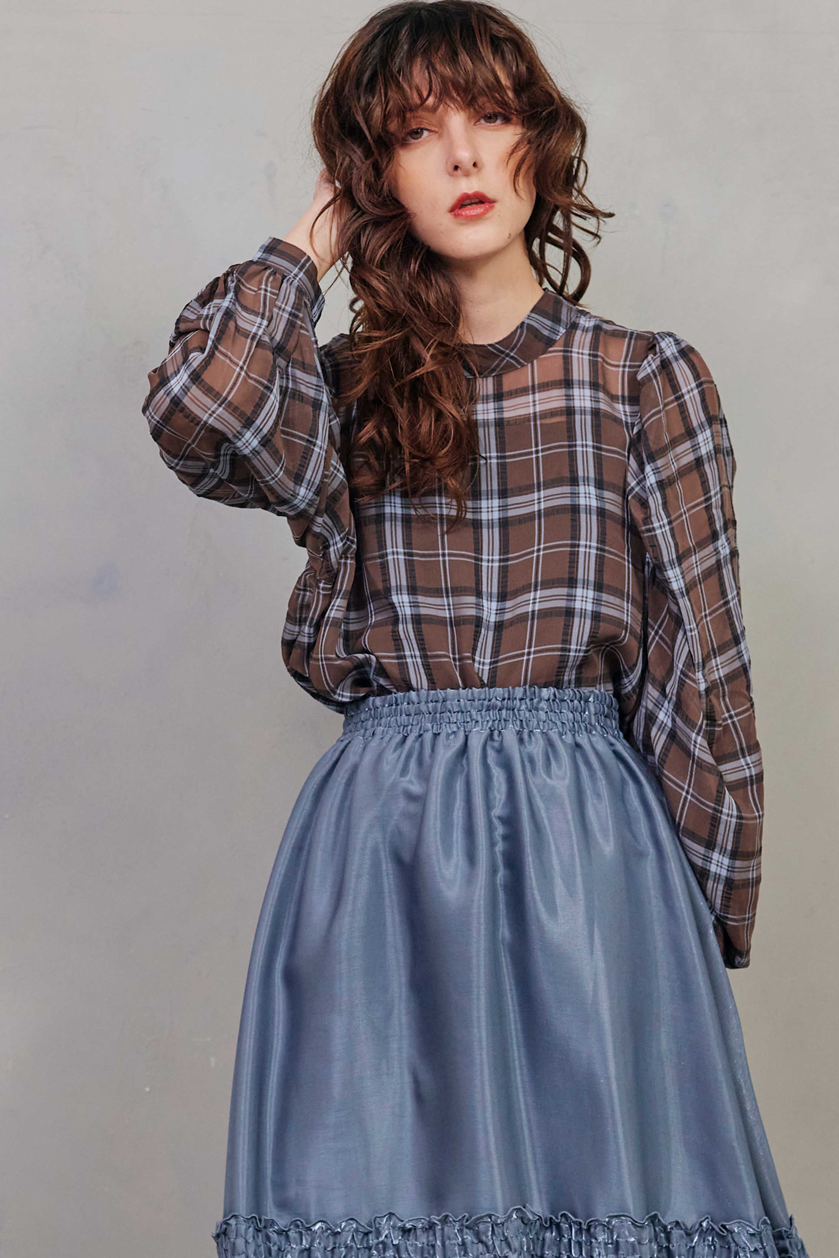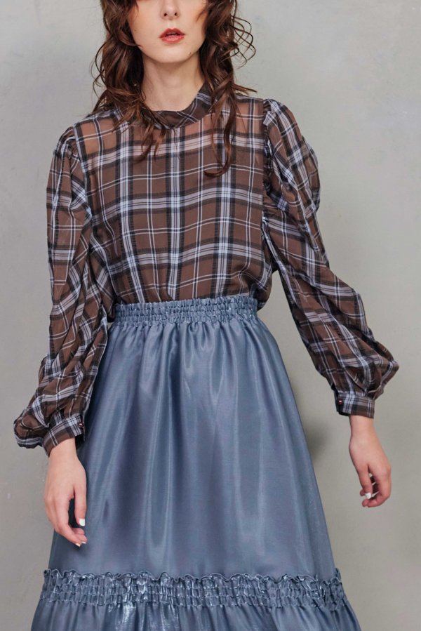 • VOLUME SLEEVES CHECKED TOPS/ボリューム袖チェックトップス