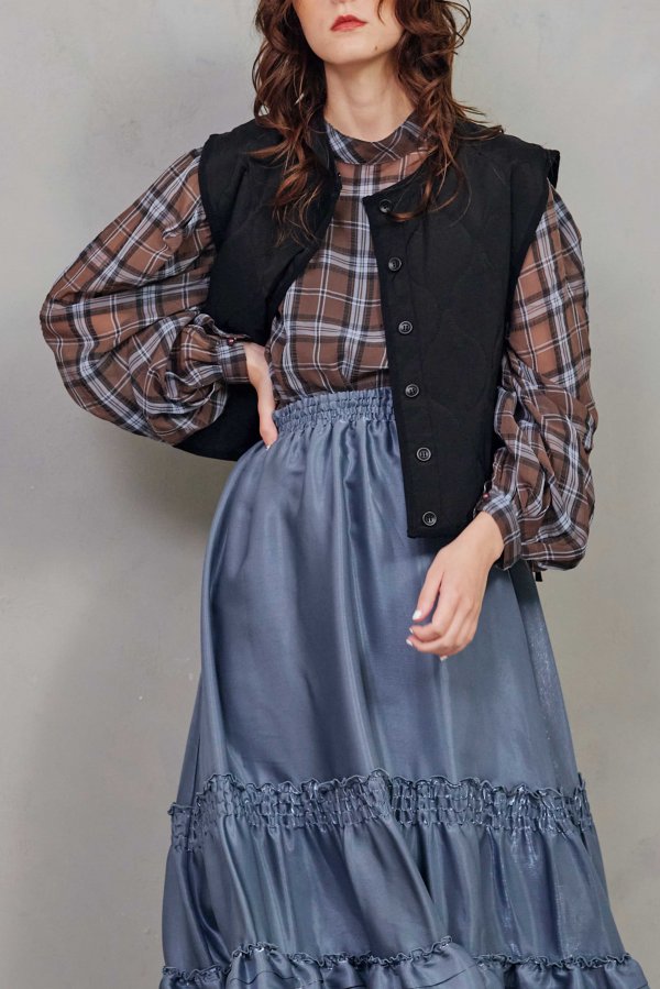 VOLUME SLEEVES CHECKED TOPS/ボリューム袖チェックトップス
