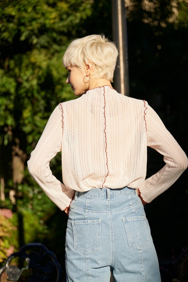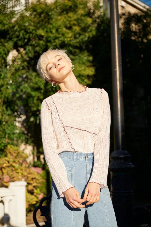 KOH.styleは他にはないようなレース見えカットソーで表現しました。